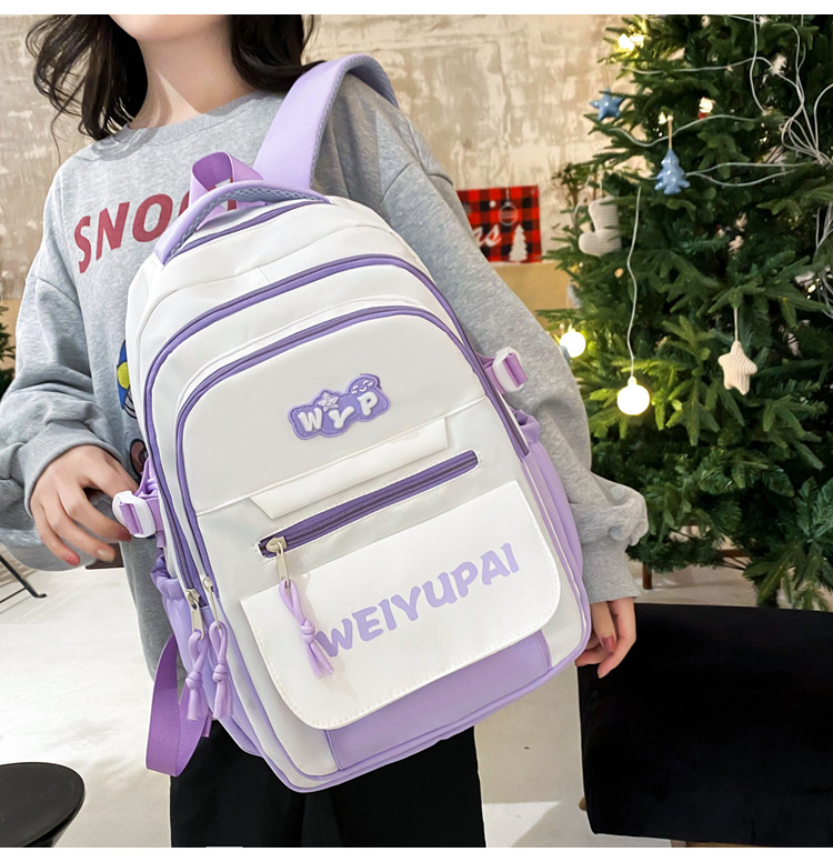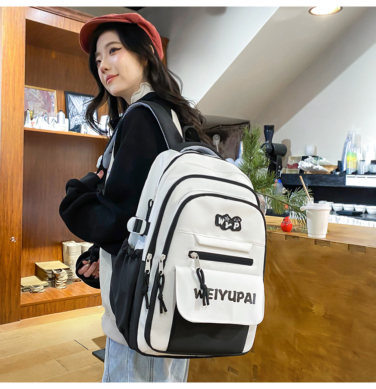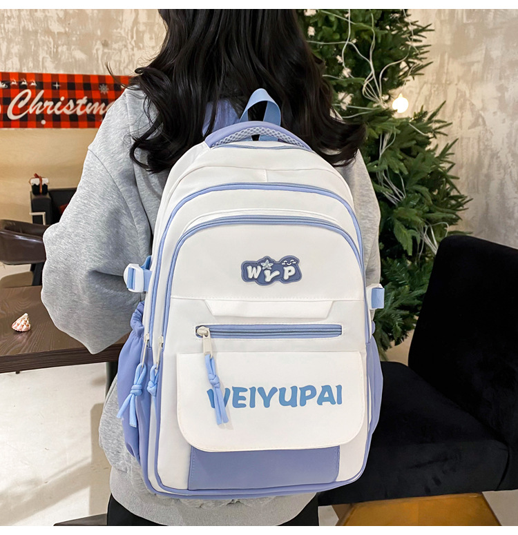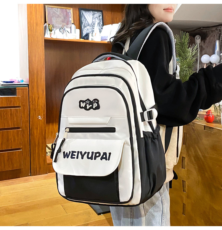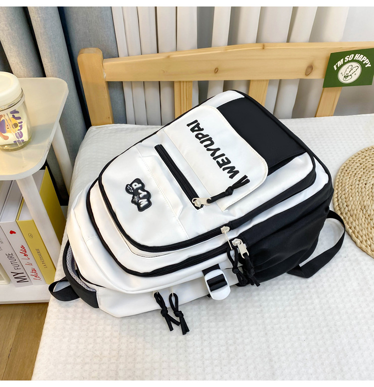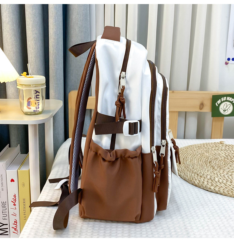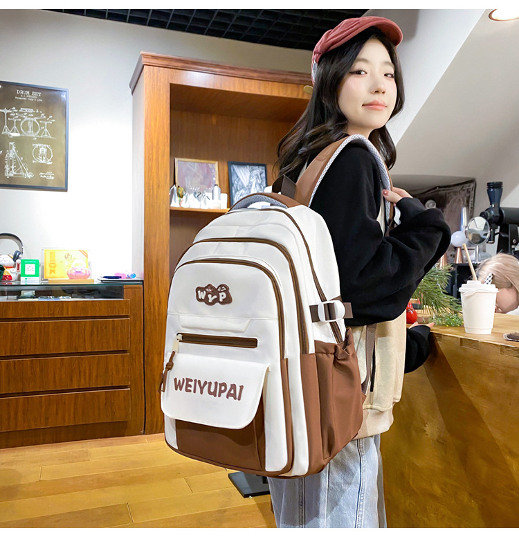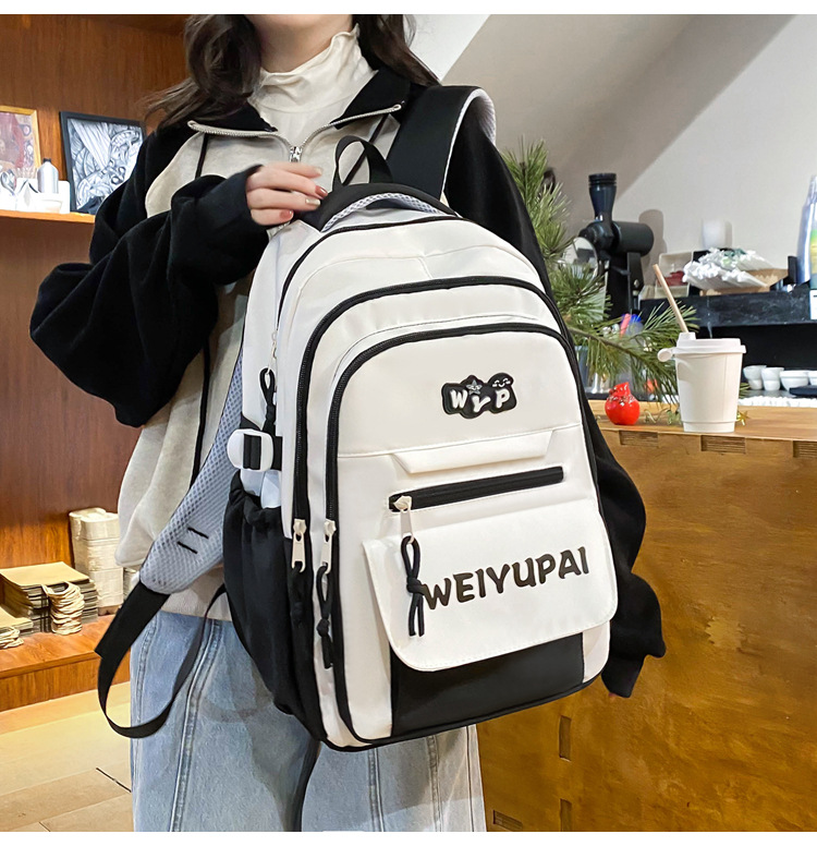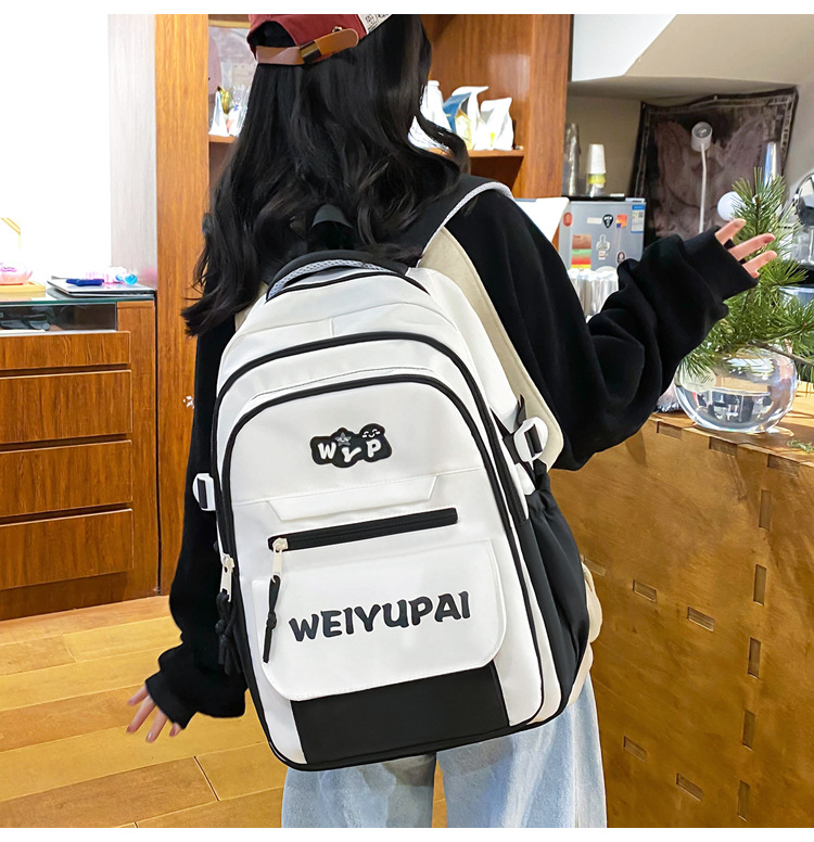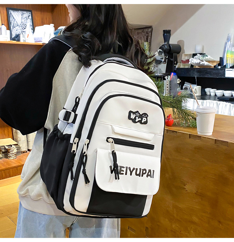 高颜值撞色书包女初中高中大容量旅行背包多层收纳学生双肩包批发