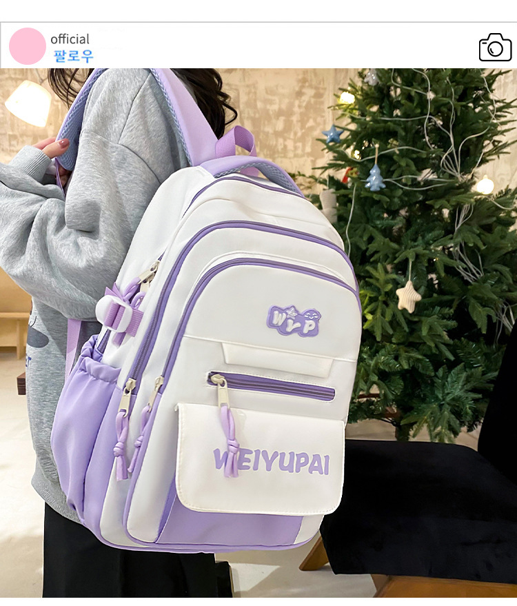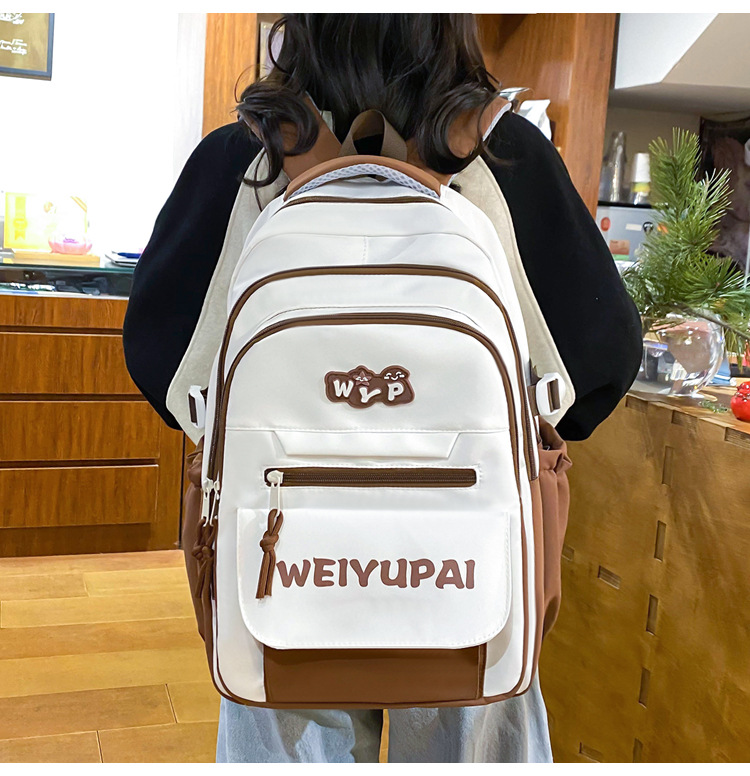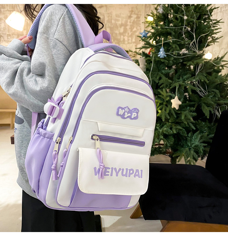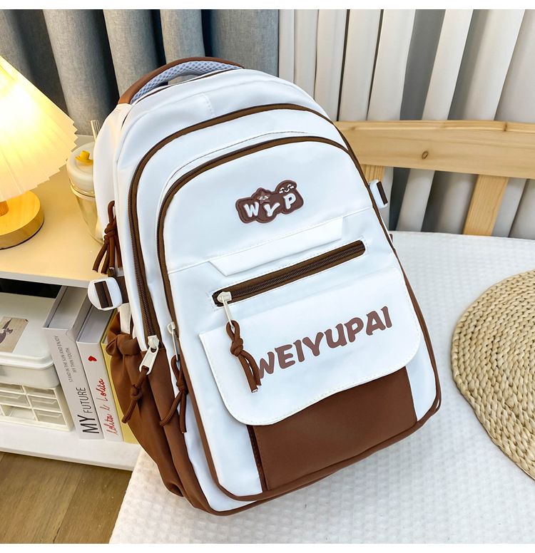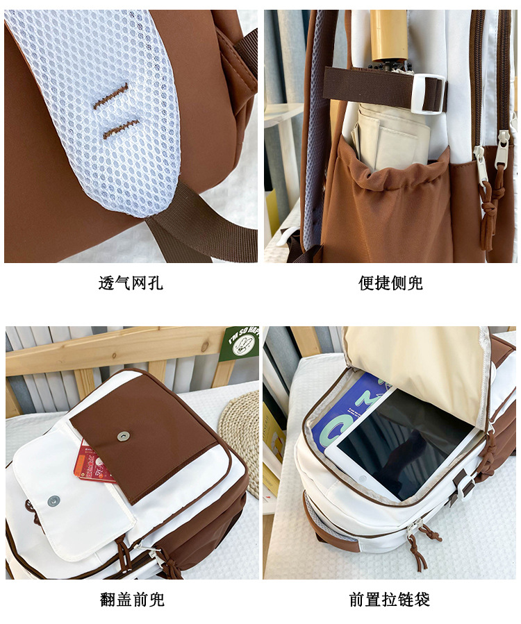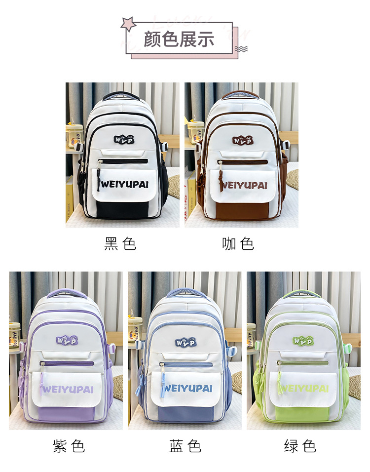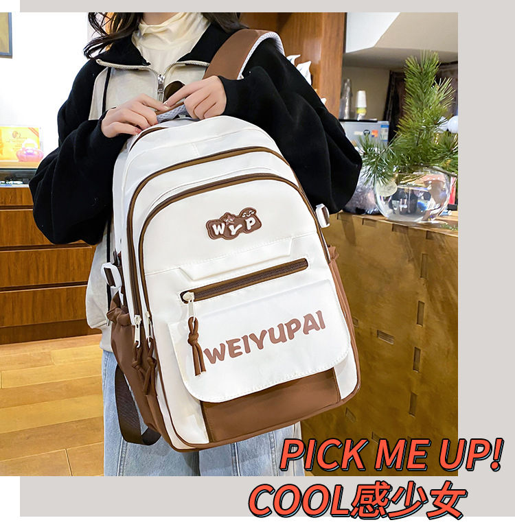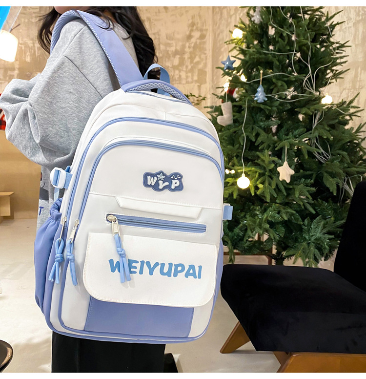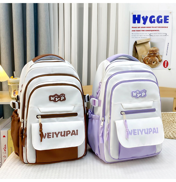 高颜值撞色书包女初中高中大容量旅行背包多层收纳学生双肩包批发