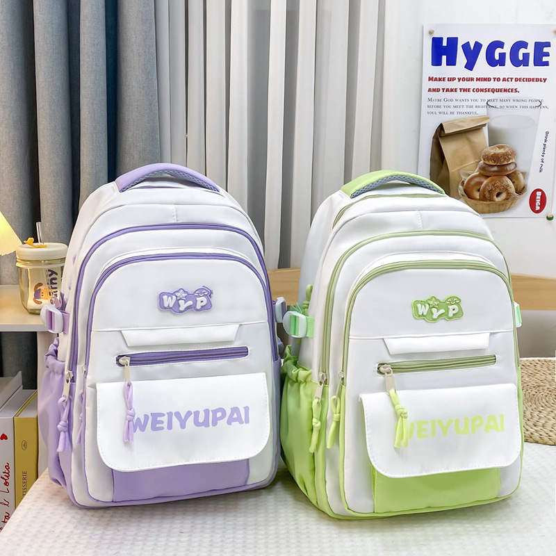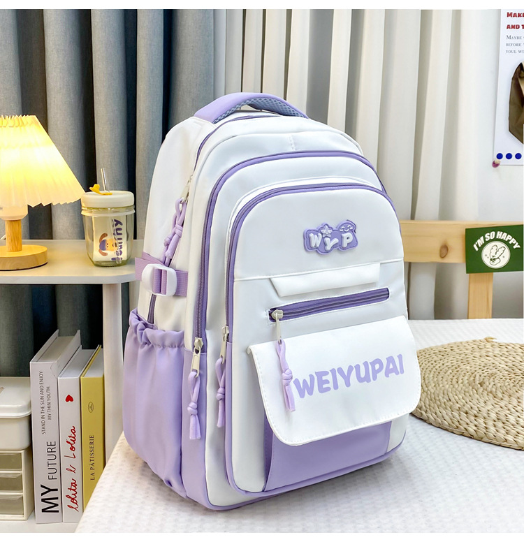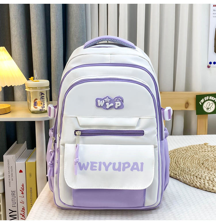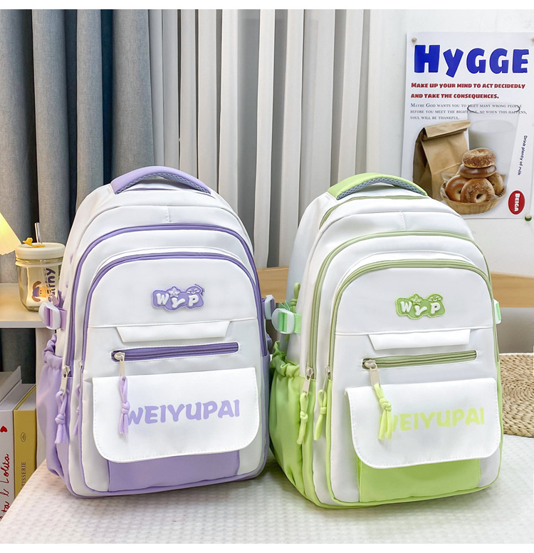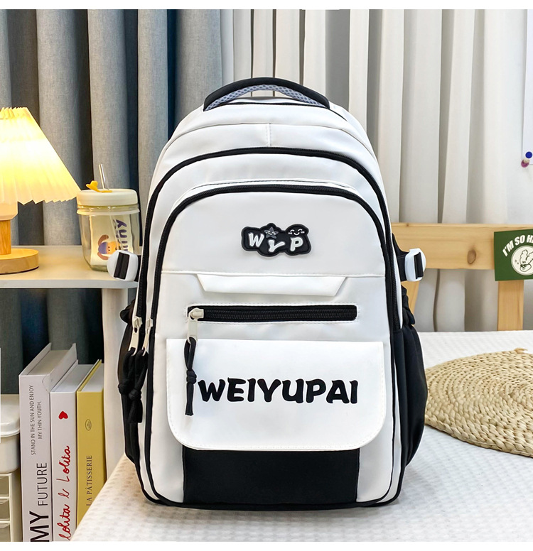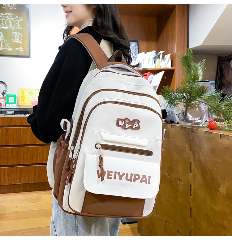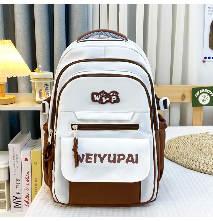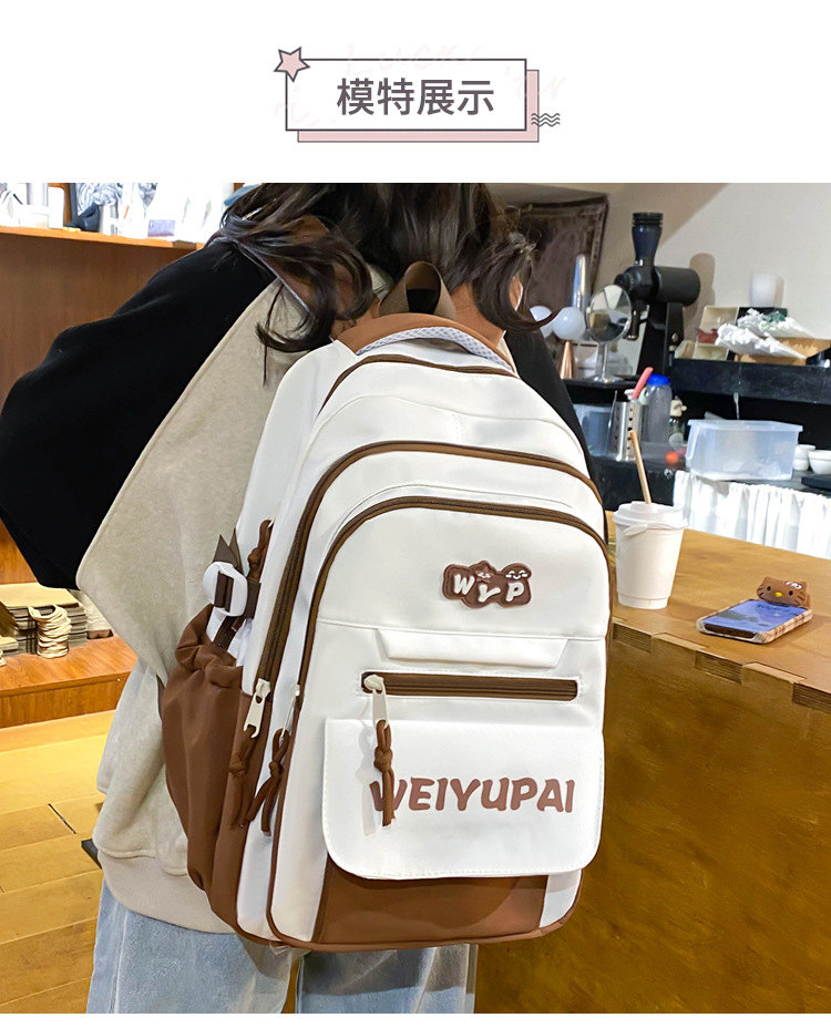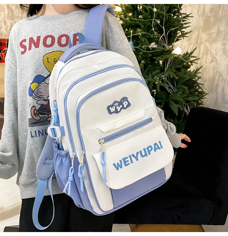 高颜值撞色书包女初中高中大容量旅行背包多层收纳学生双肩包批发