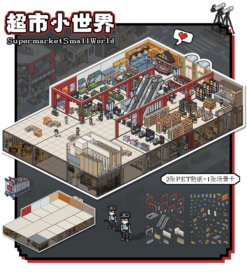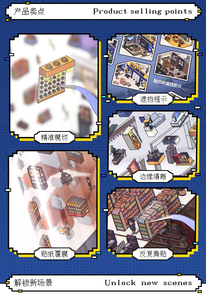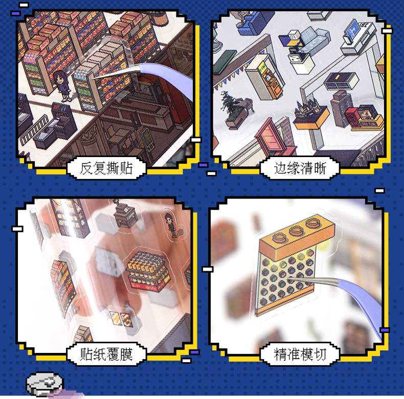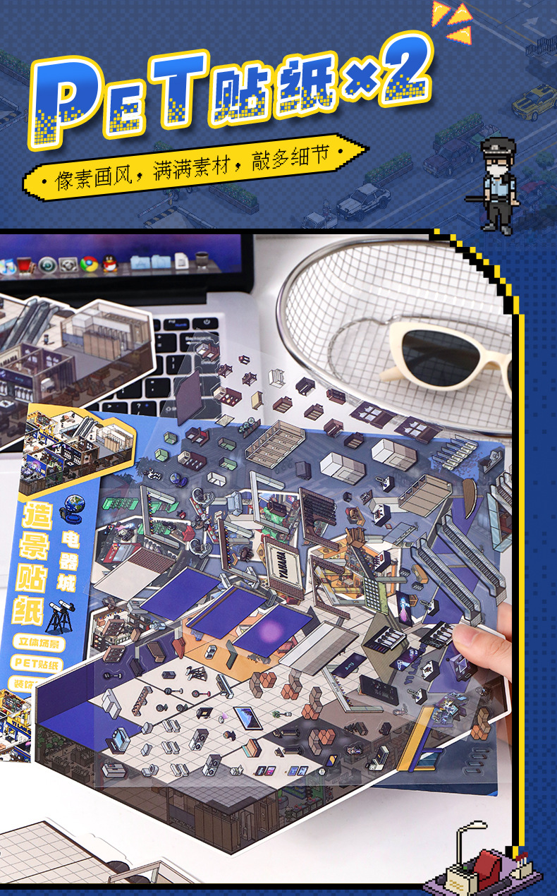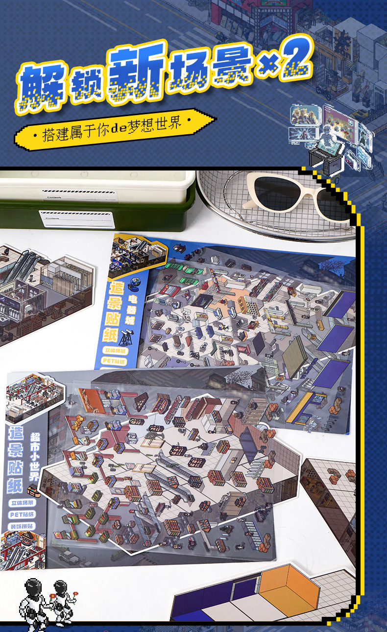 47.0艺蓝像素风造景贴纸大号3d立体贴纸微缩场景拼贴diy手账贴纸