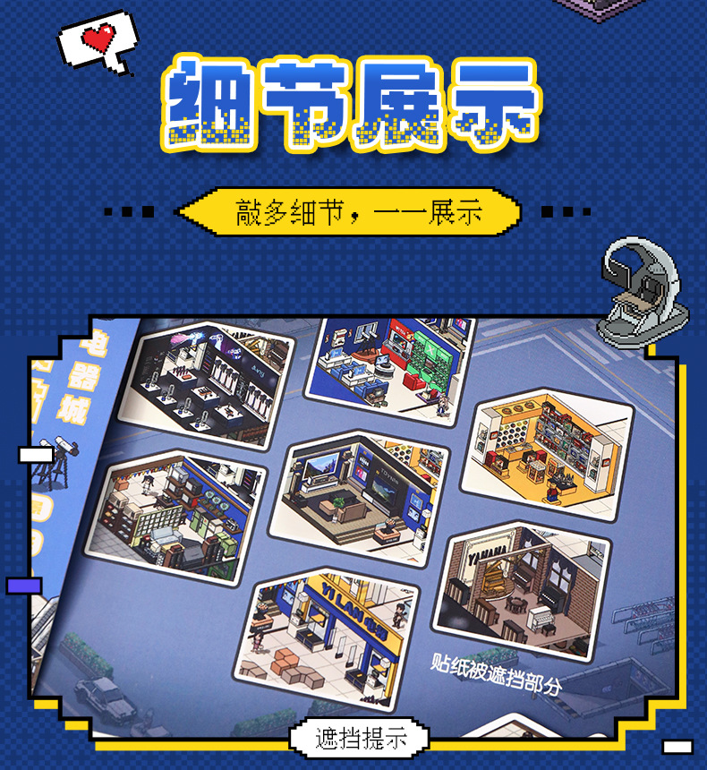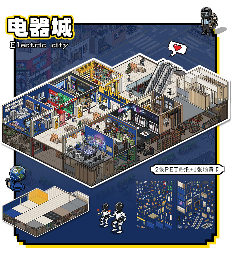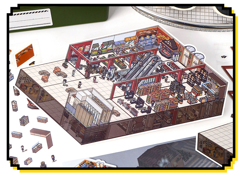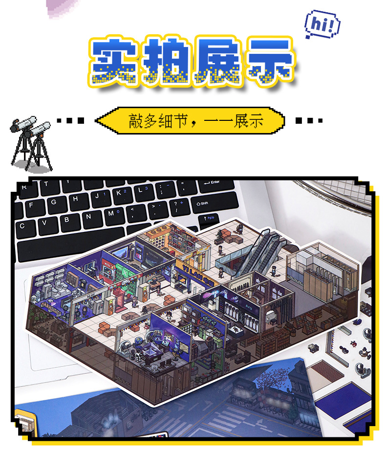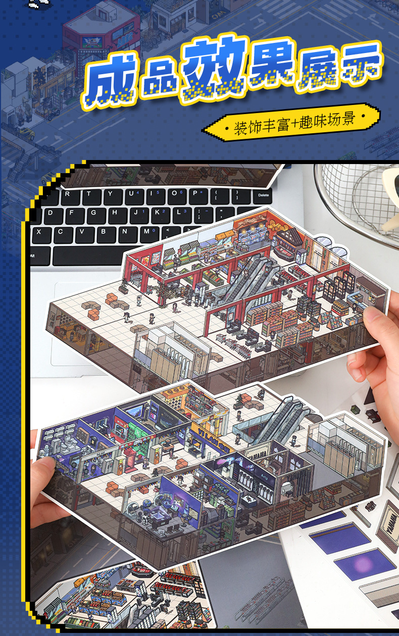 47.0艺蓝像素风造景贴纸大号3d立体贴纸微缩场景拼贴diy手账贴纸