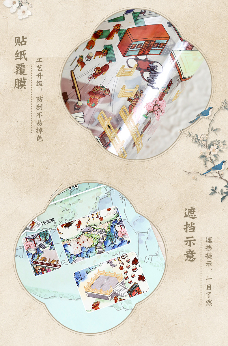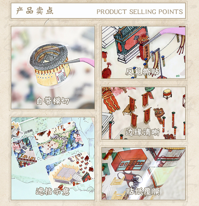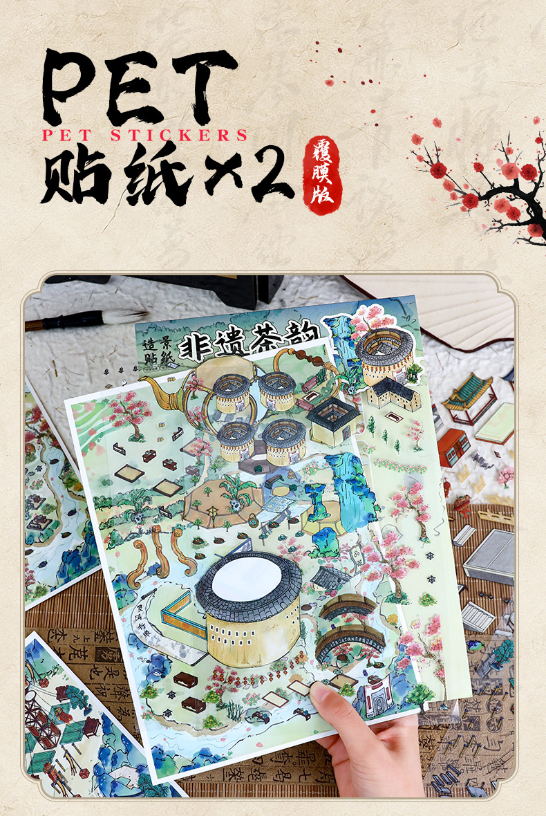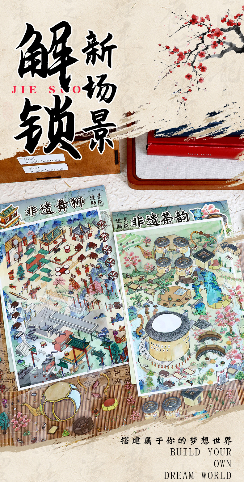 57.0艺蓝造景贴纸大号非遗系列场景拼贴3D立体场贴纸diy手帐贴画