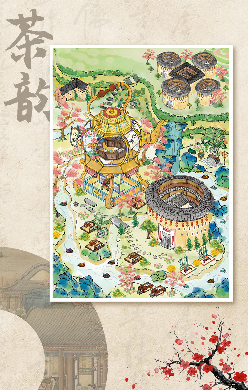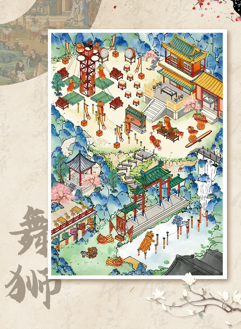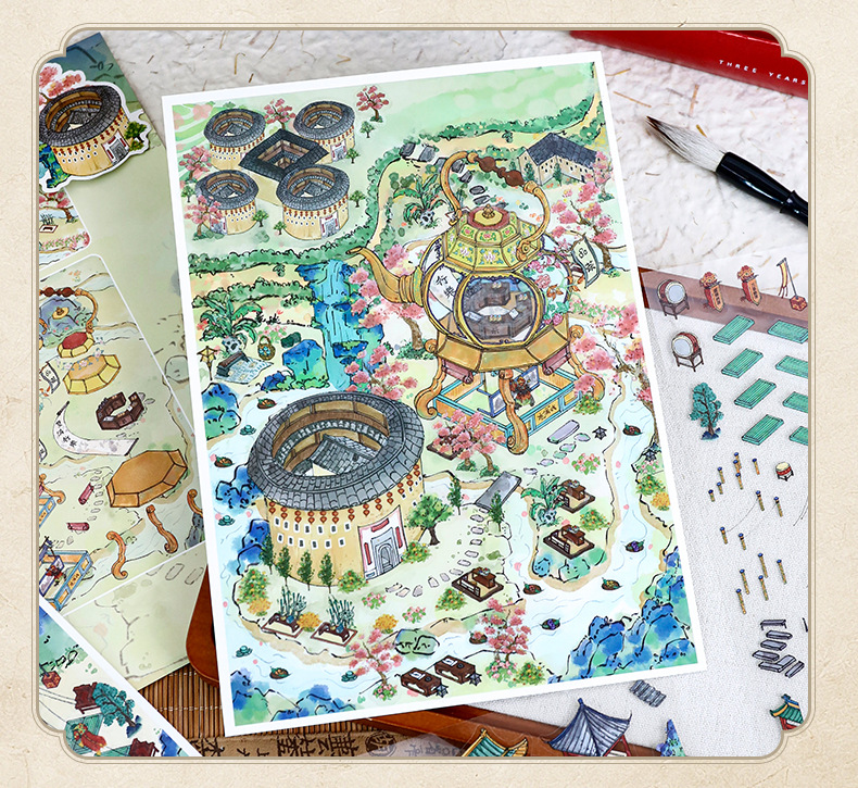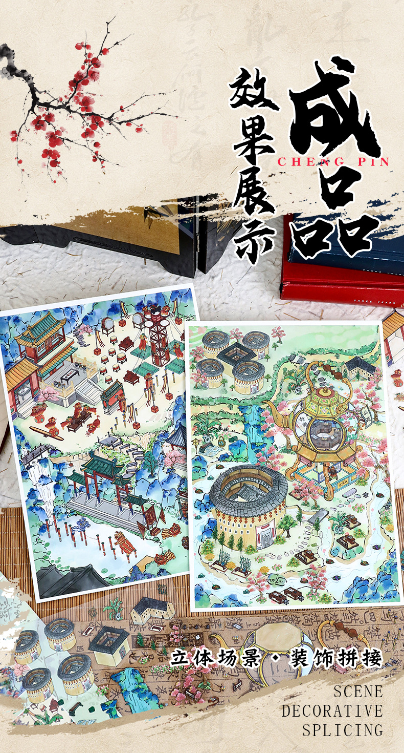 57.0艺蓝造景贴纸大号非遗系列场景拼贴3D立体场贴纸diy手帐贴画