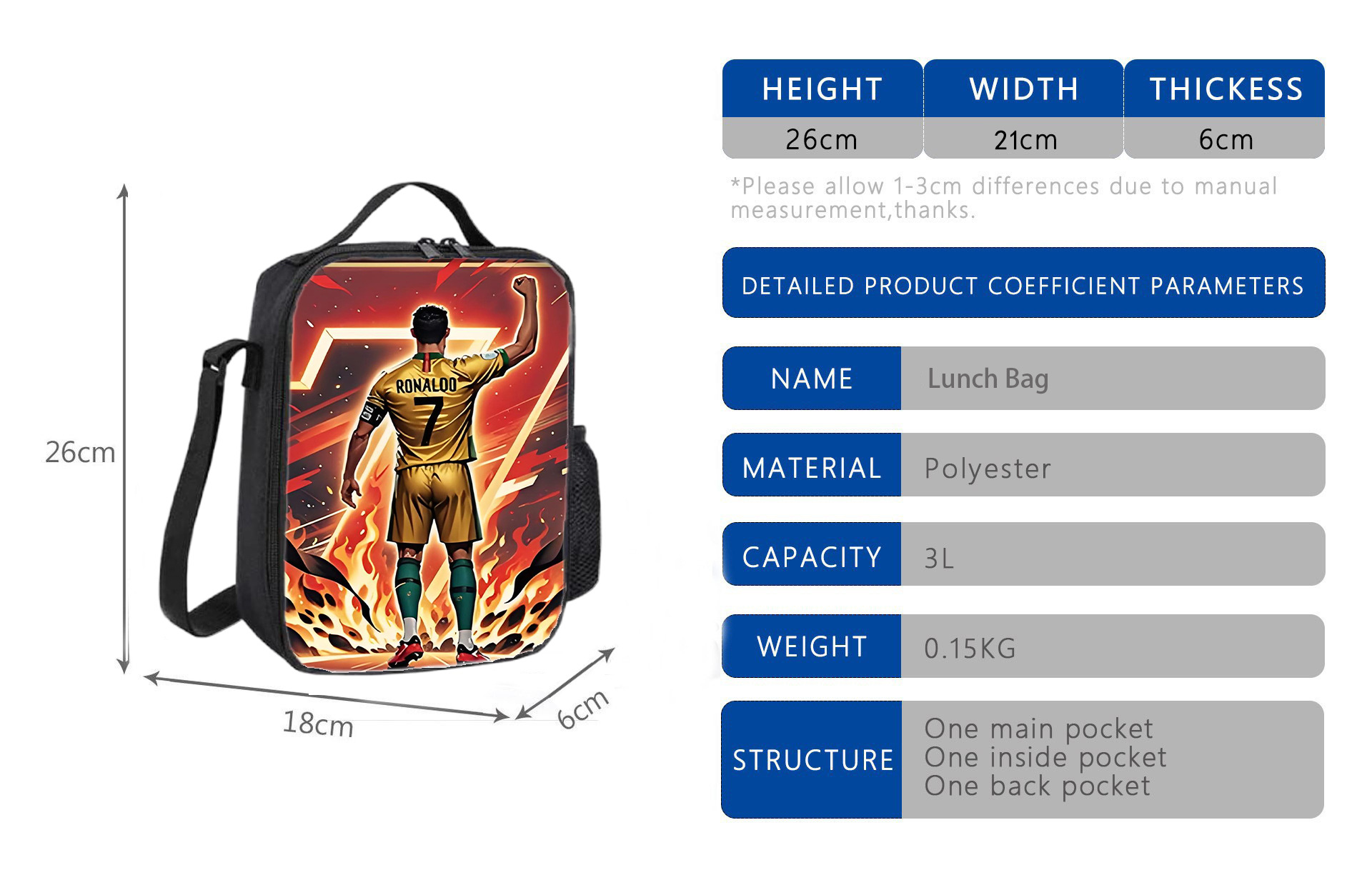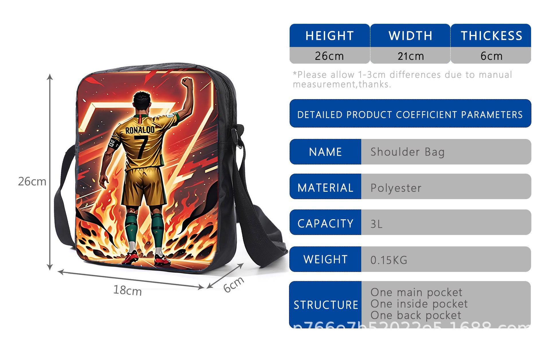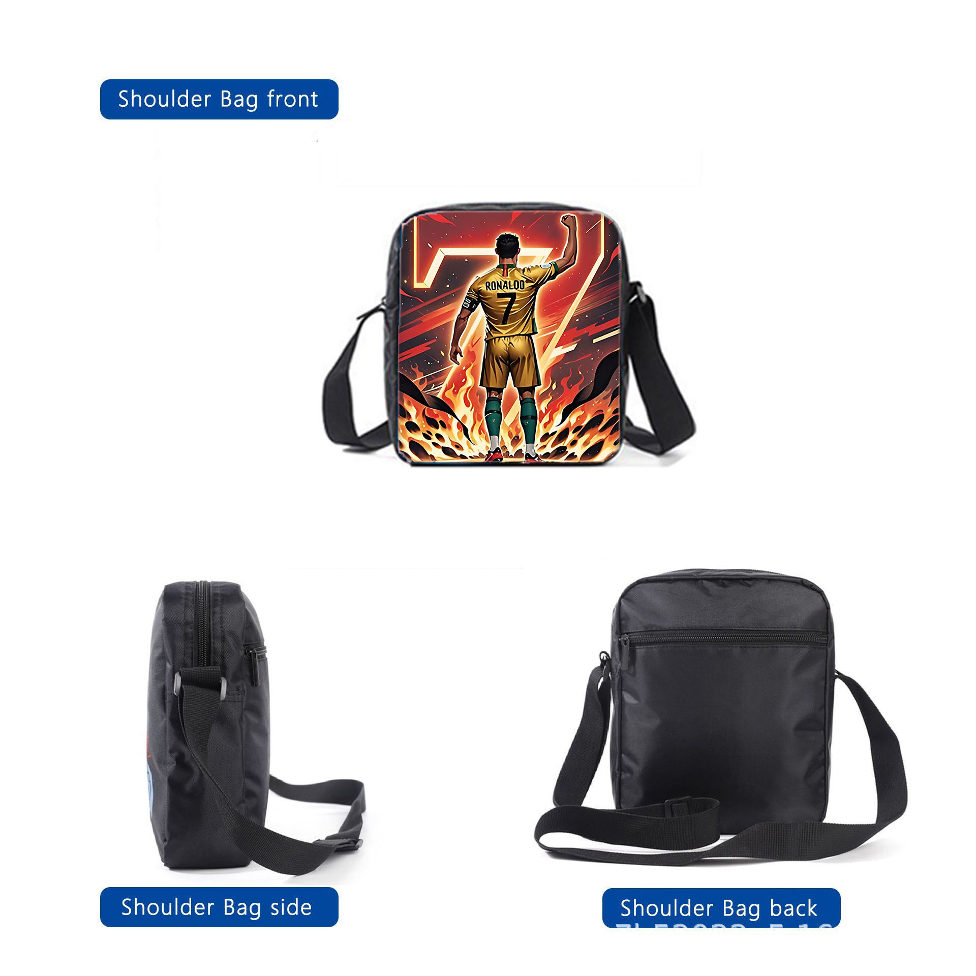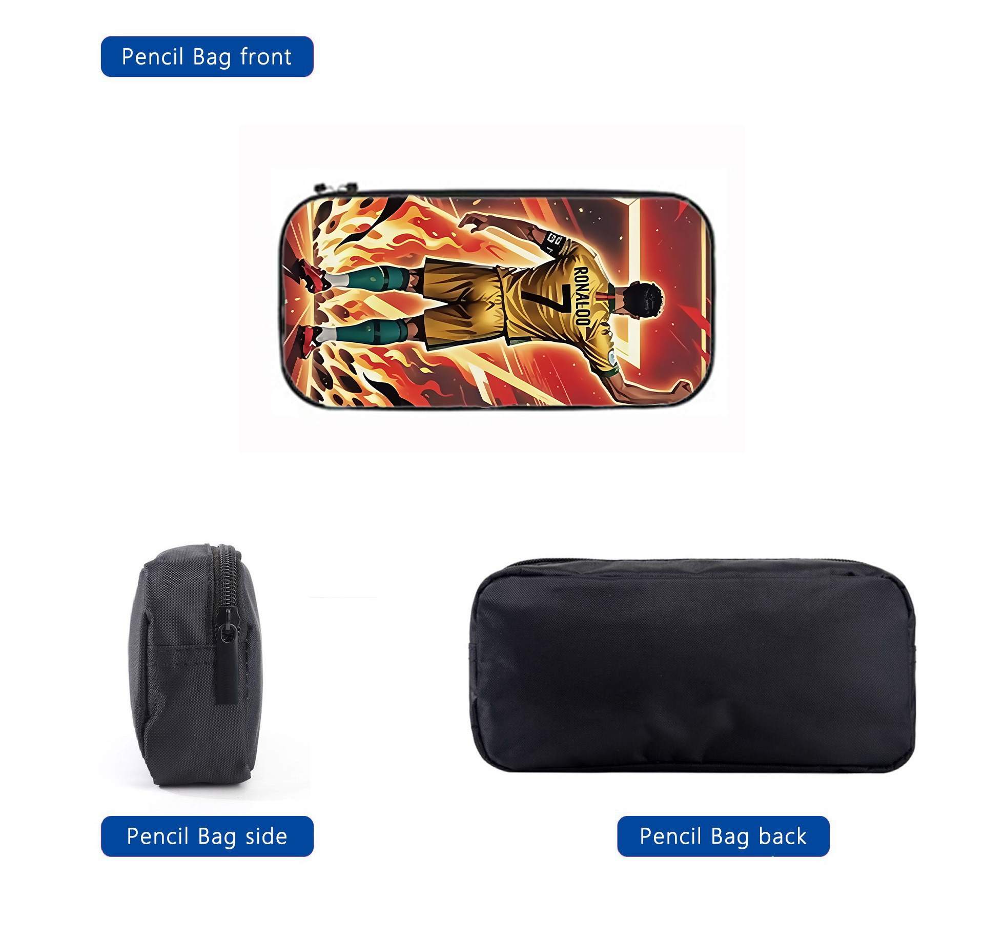 新款跨境足球运动员C罗印花背包三件套配餐包笔袋学生大容量书包