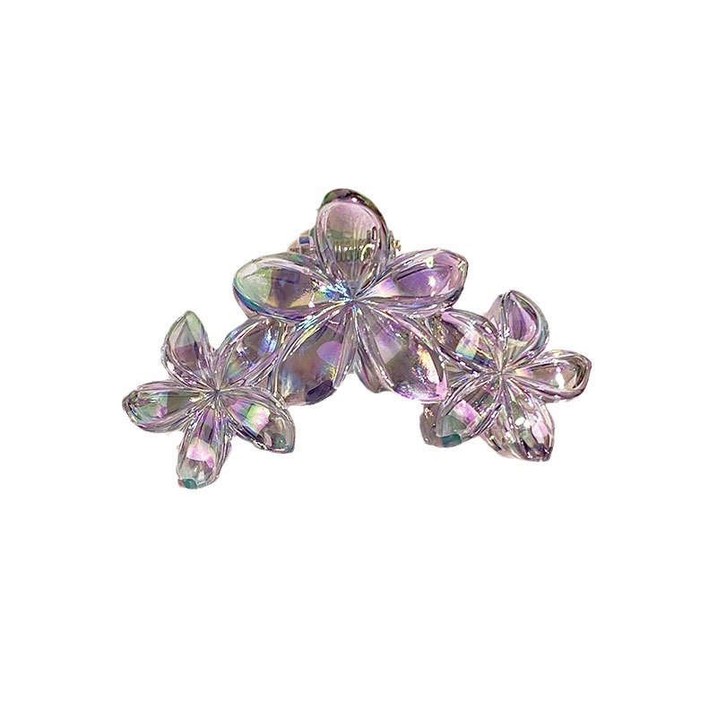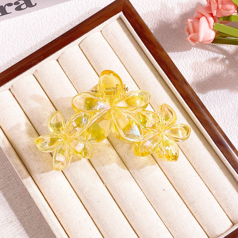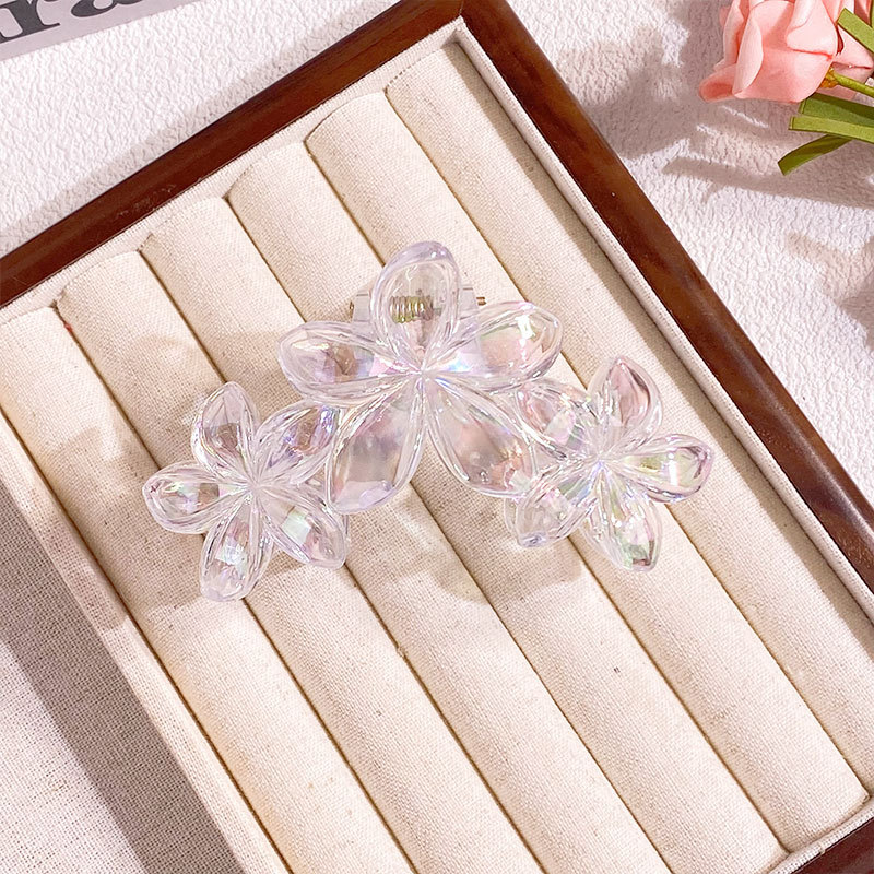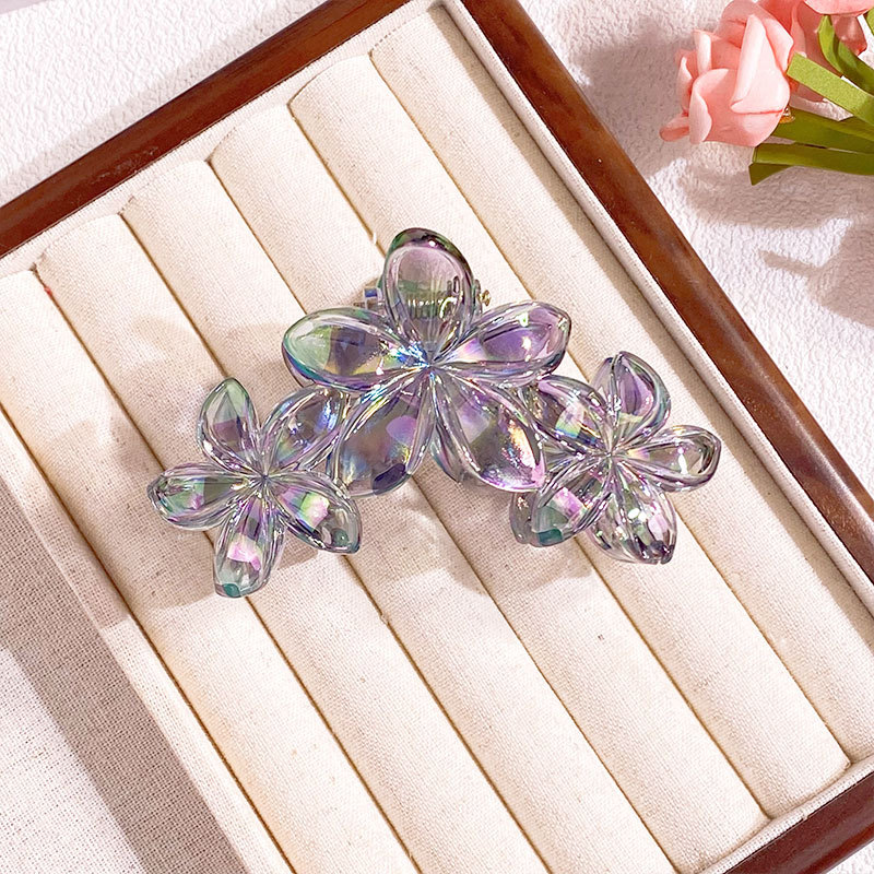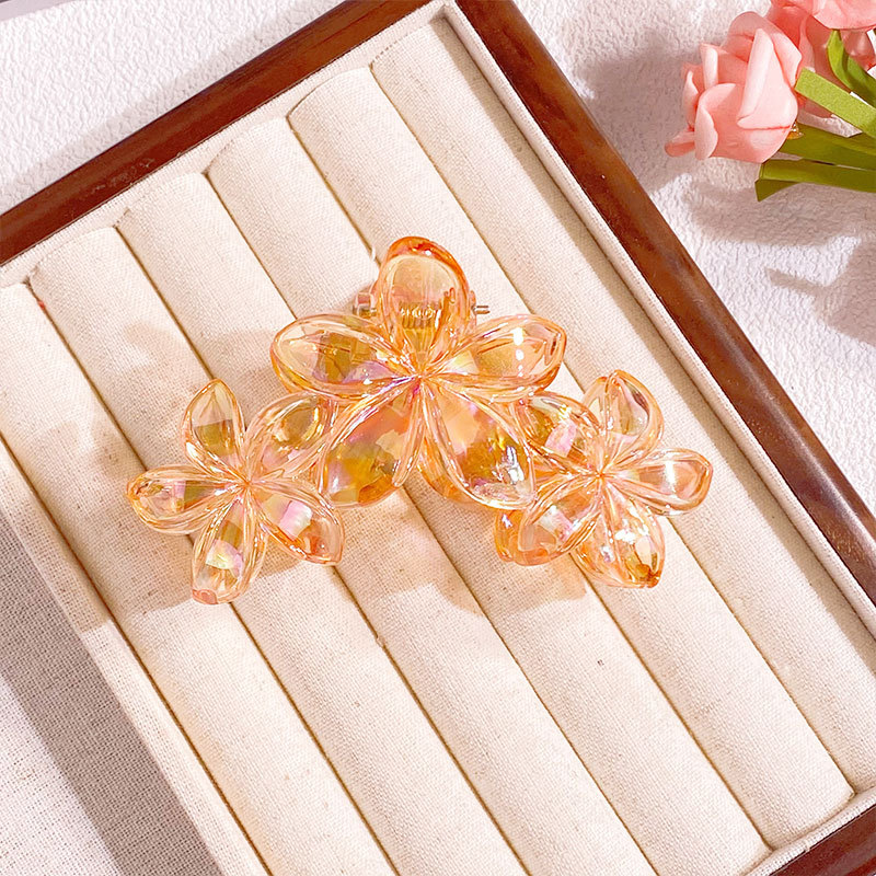 跨境新款炫彩三朵鸡蛋花抓夹电镀AB彩盘发鲨鱼夹欧美发夹女