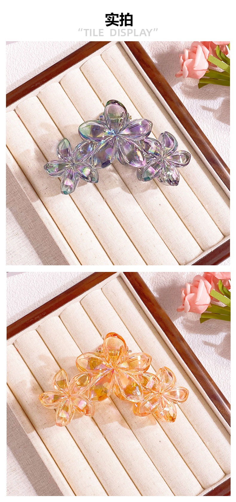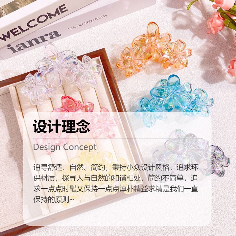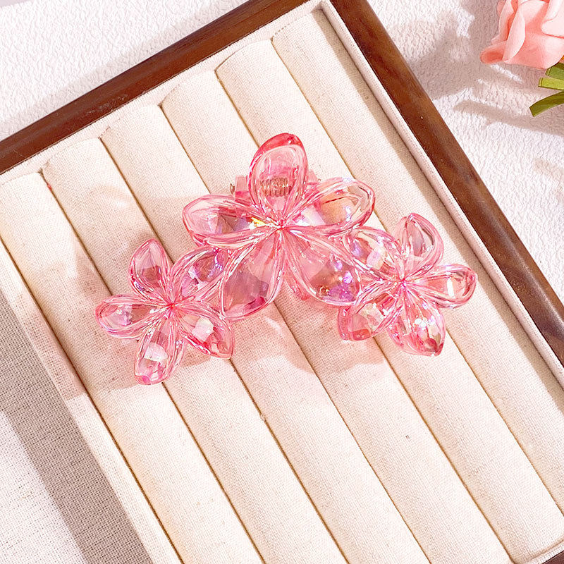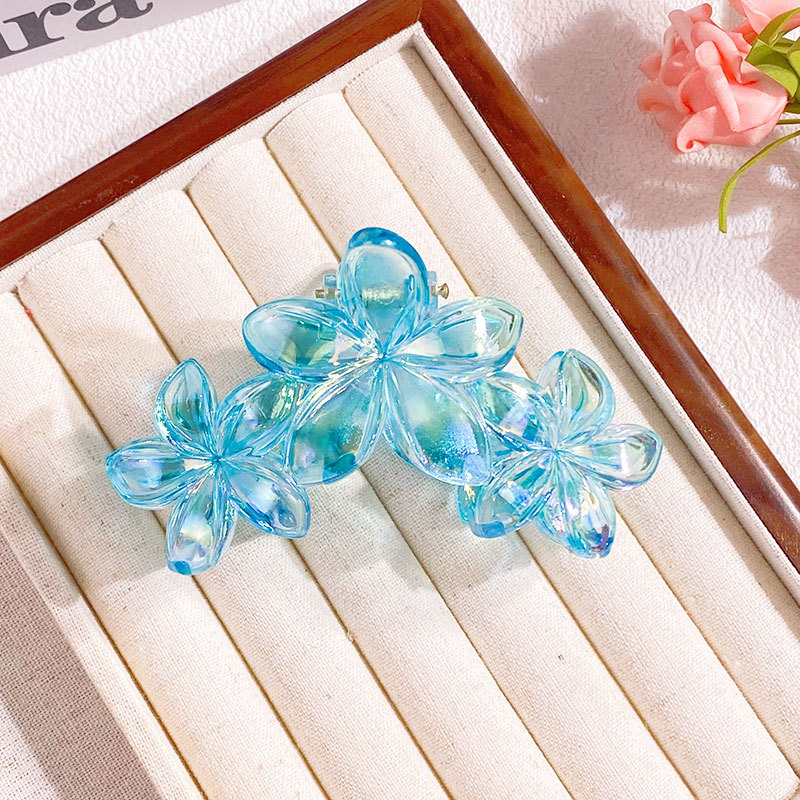 跨境新款炫彩三朵鸡蛋花抓夹电镀AB彩盘发鲨鱼夹欧美发夹女