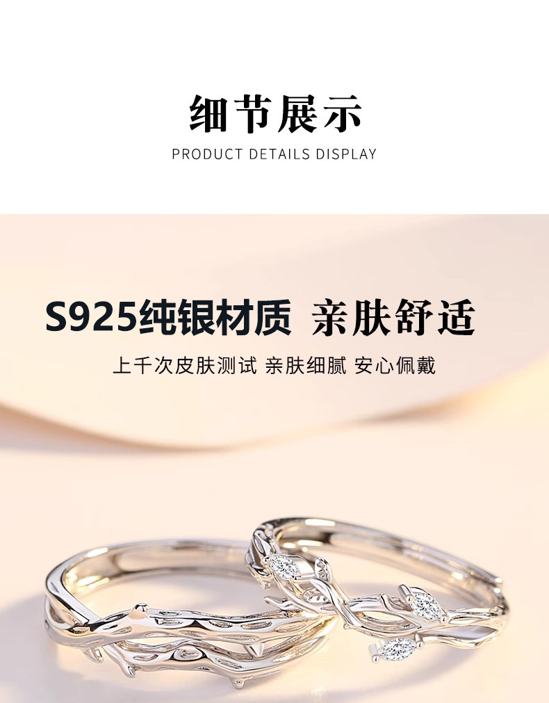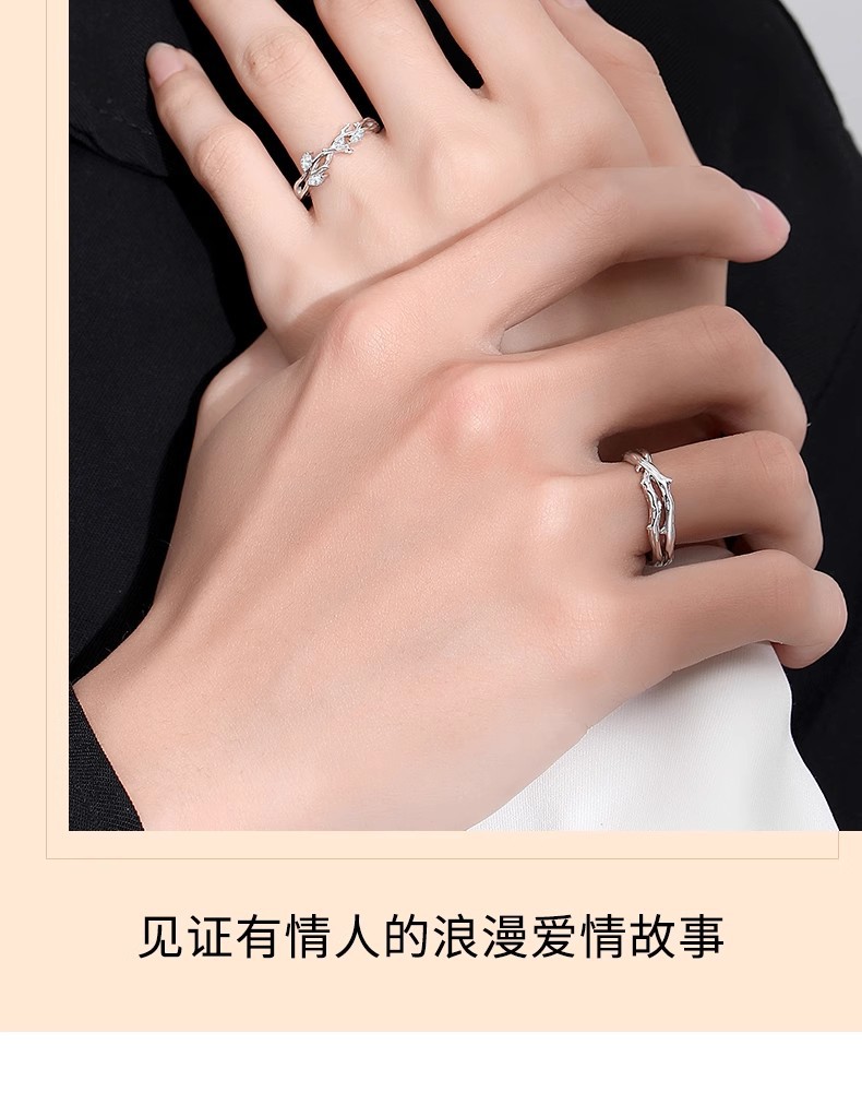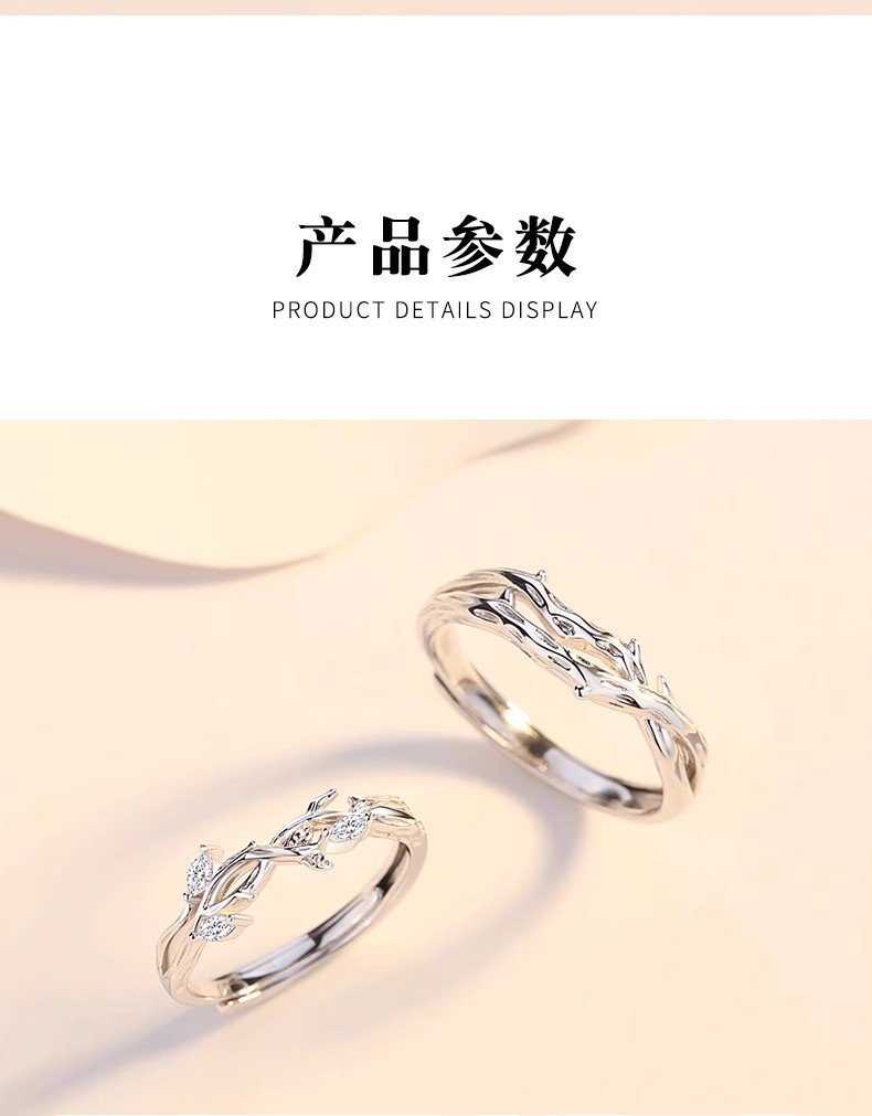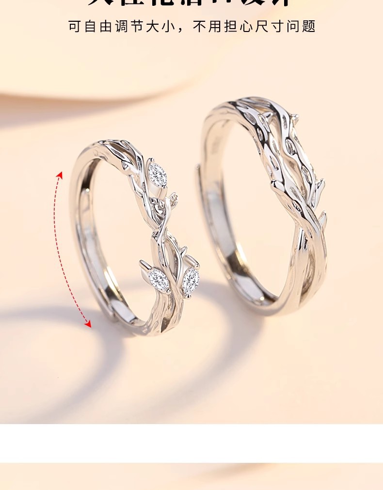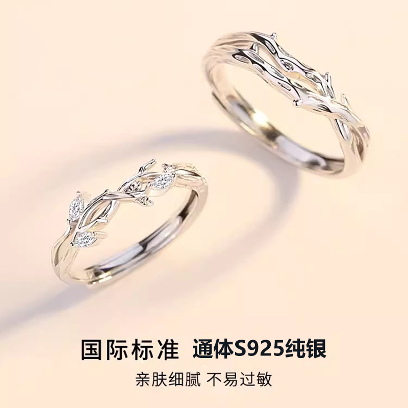 连理枝情侣对戒925纯银戒指一对男女小众设计求婚新款情人节礼物