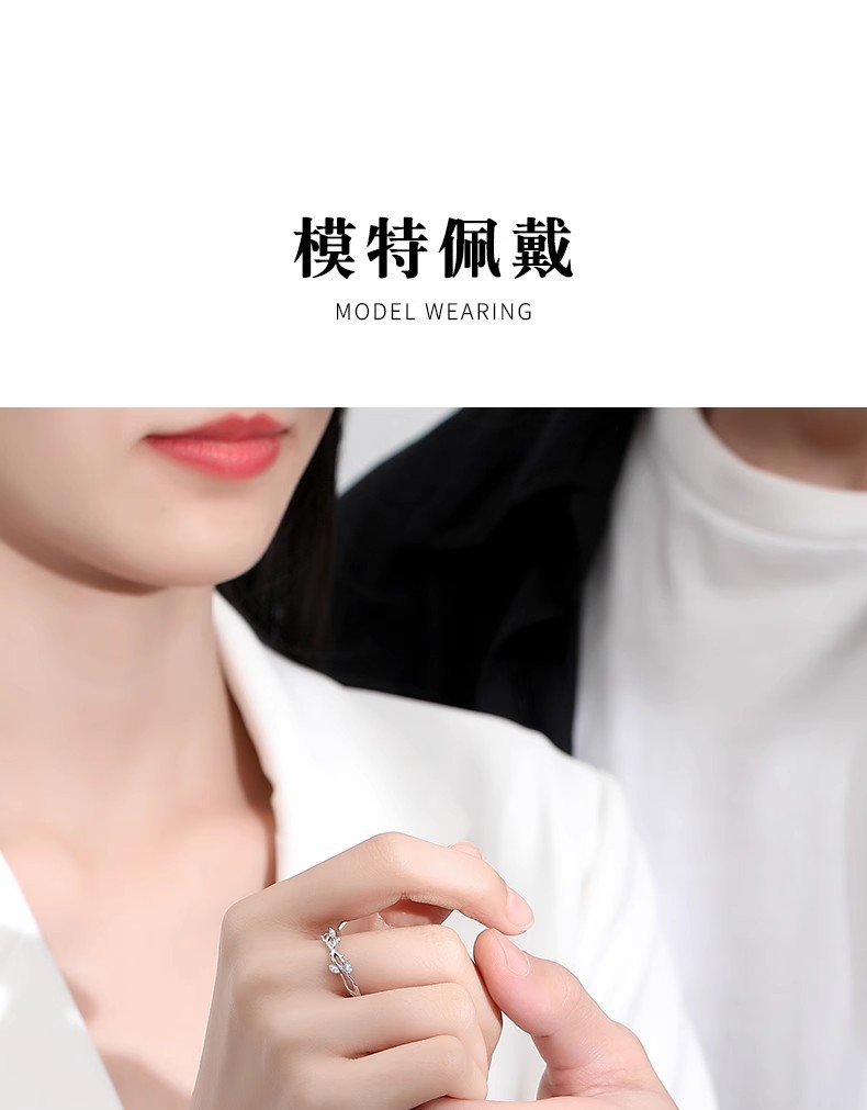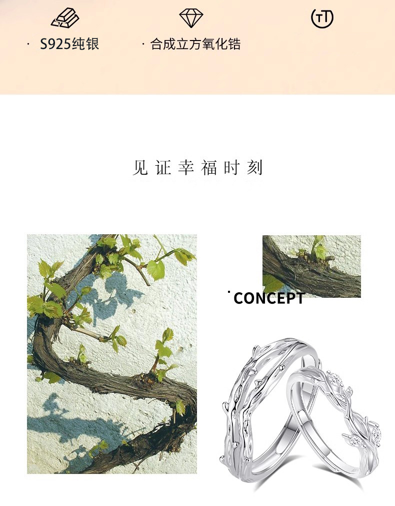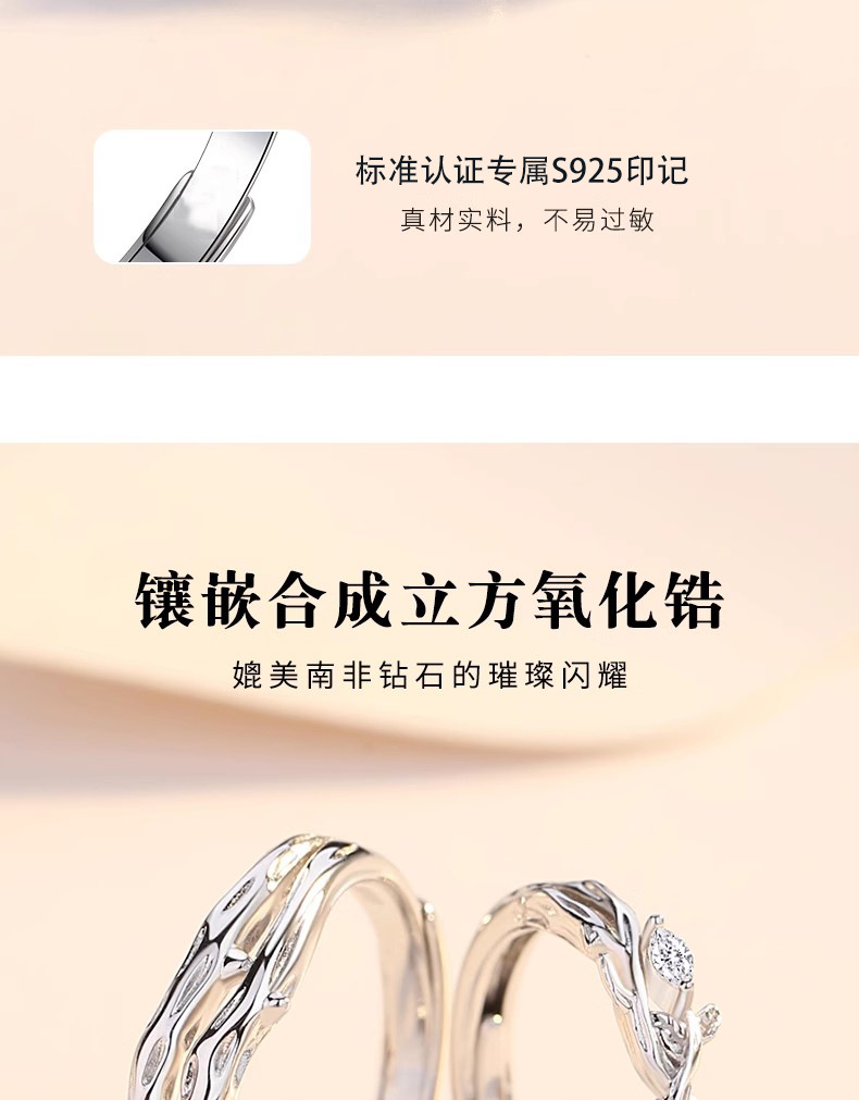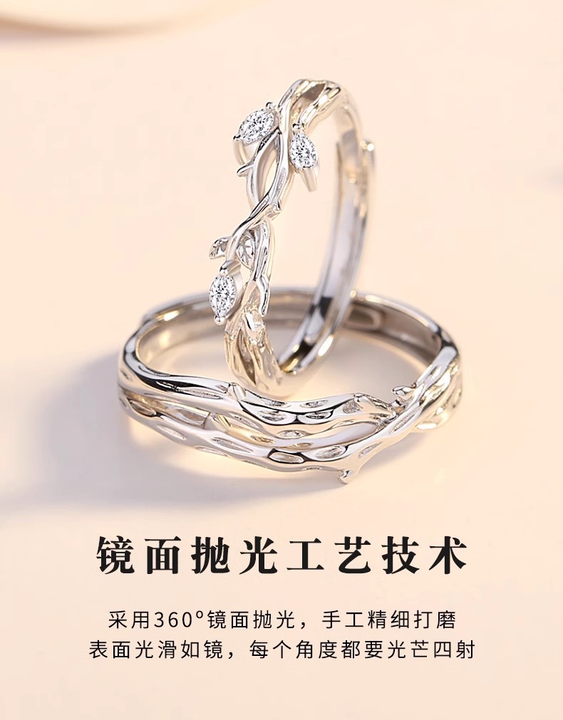 连理枝情侣对戒925纯银戒指一对男女小众设计求婚新款情人节礼物