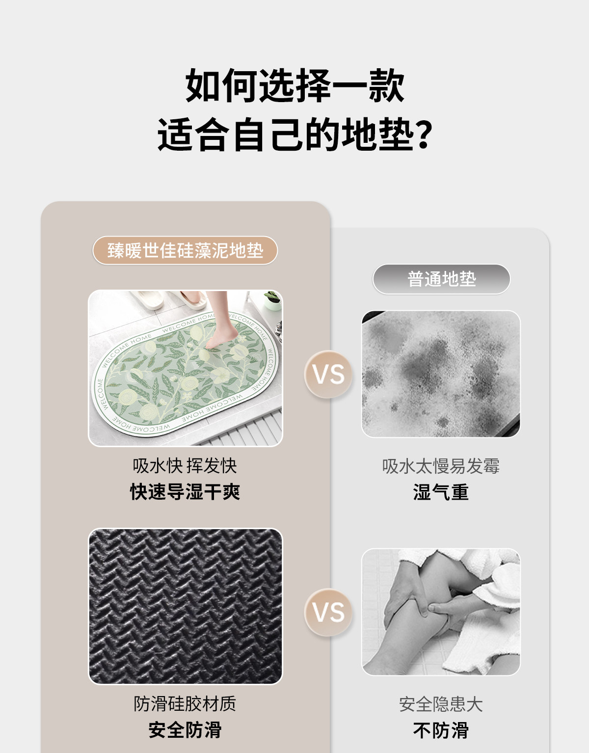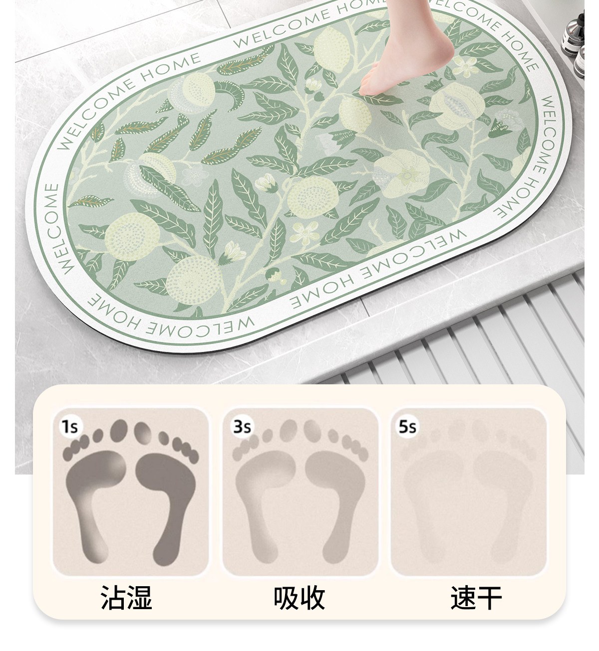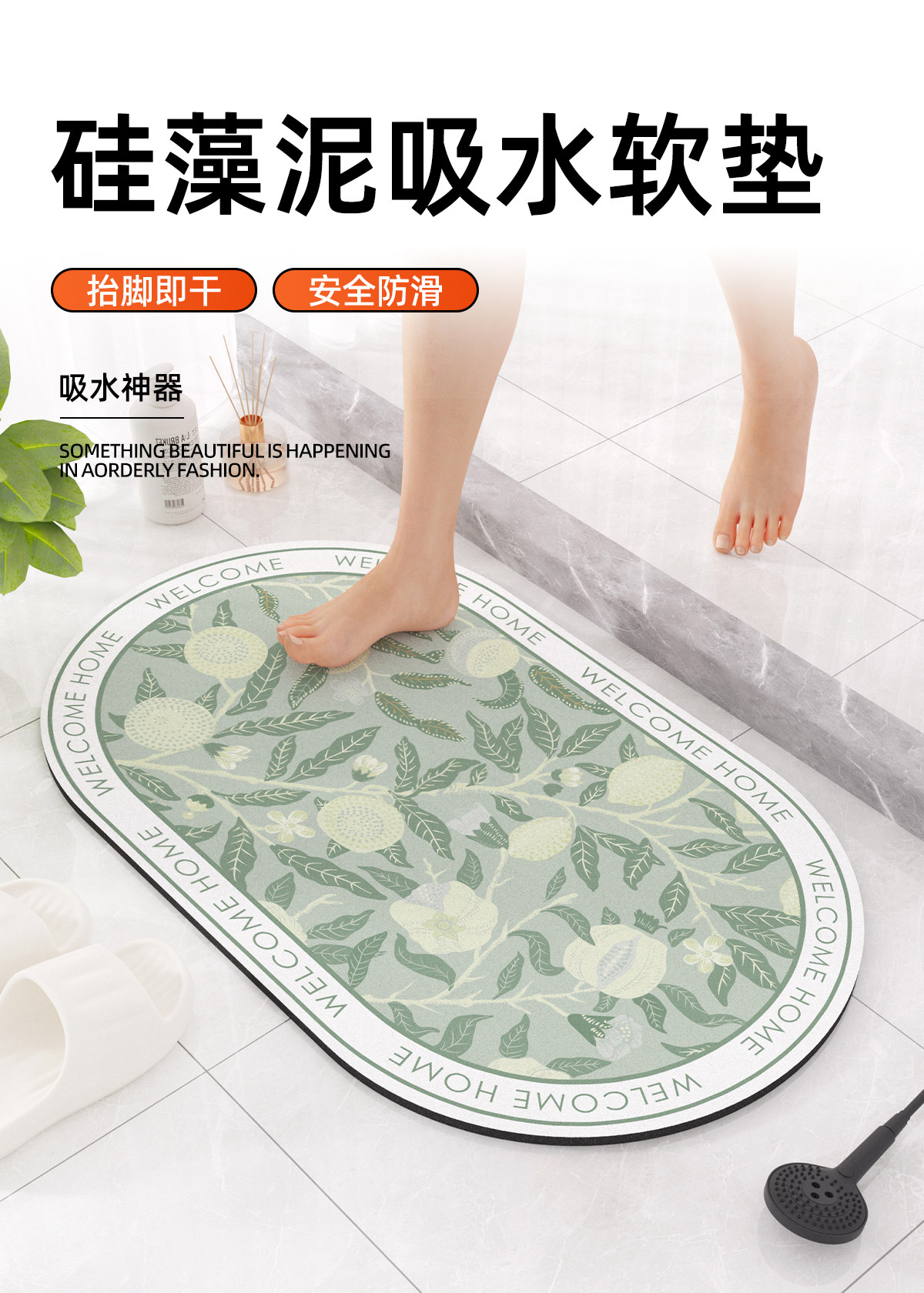 浴室地垫卫生间门口硅藻泥吸水垫厕所门垫家用脚垫防滑垫速干地毯