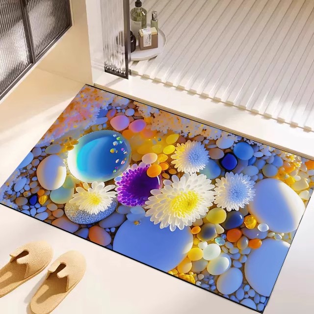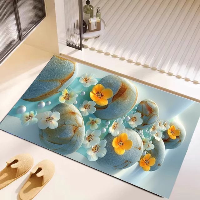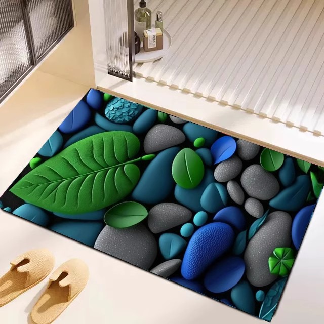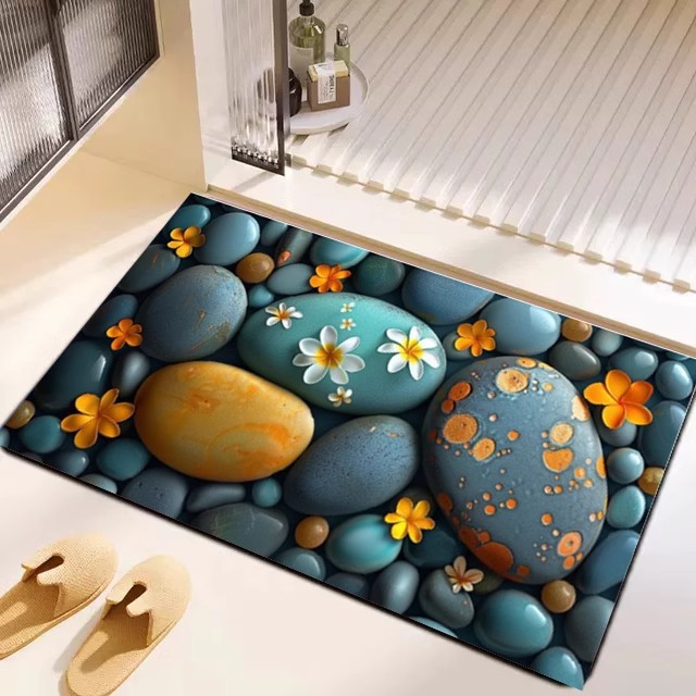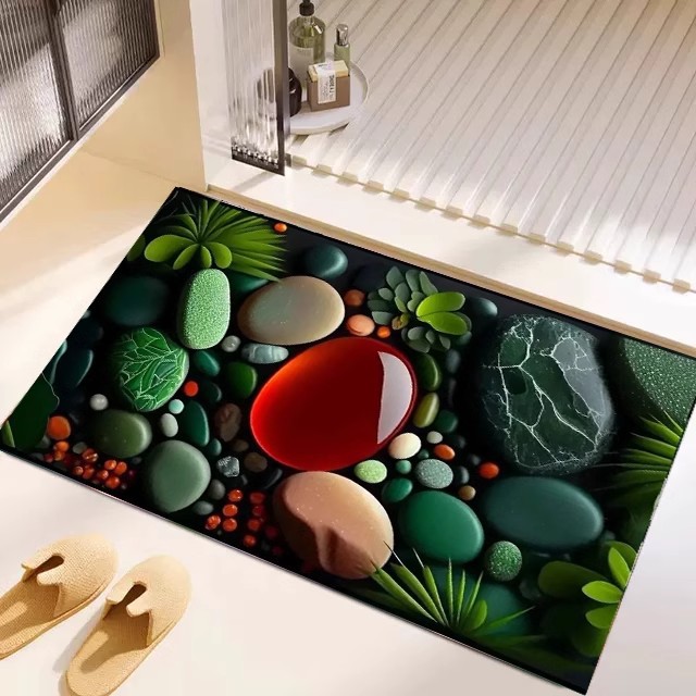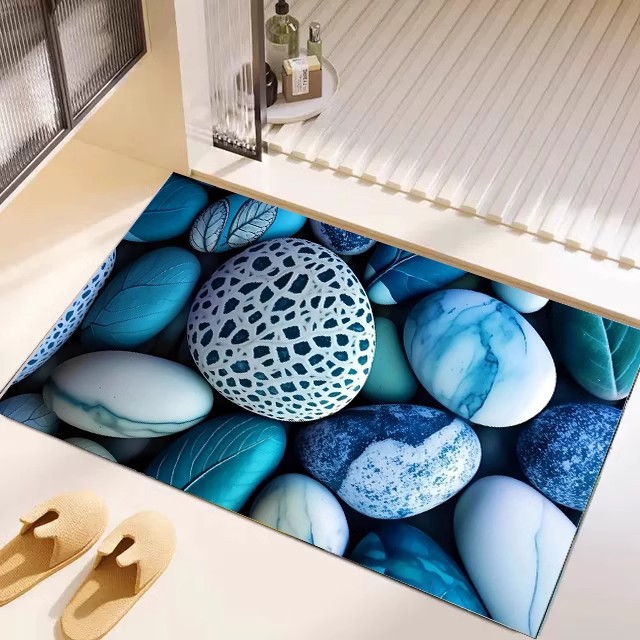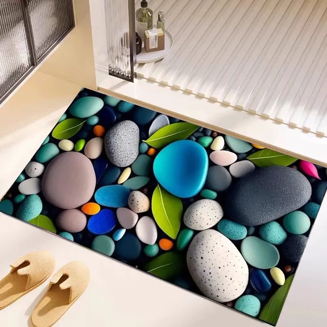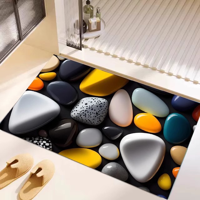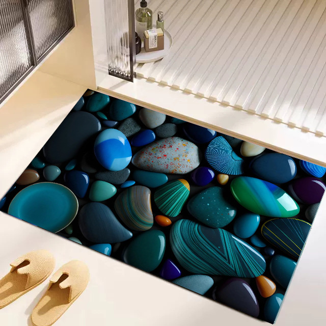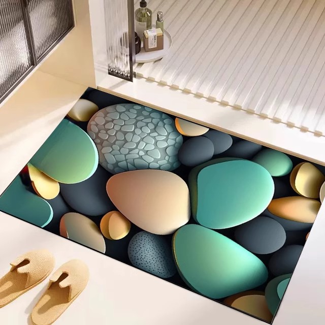 轻奢立体3D鹅卵石硅藻泥入户玄关耐脏地垫浴室卫生间吸水速干脚垫