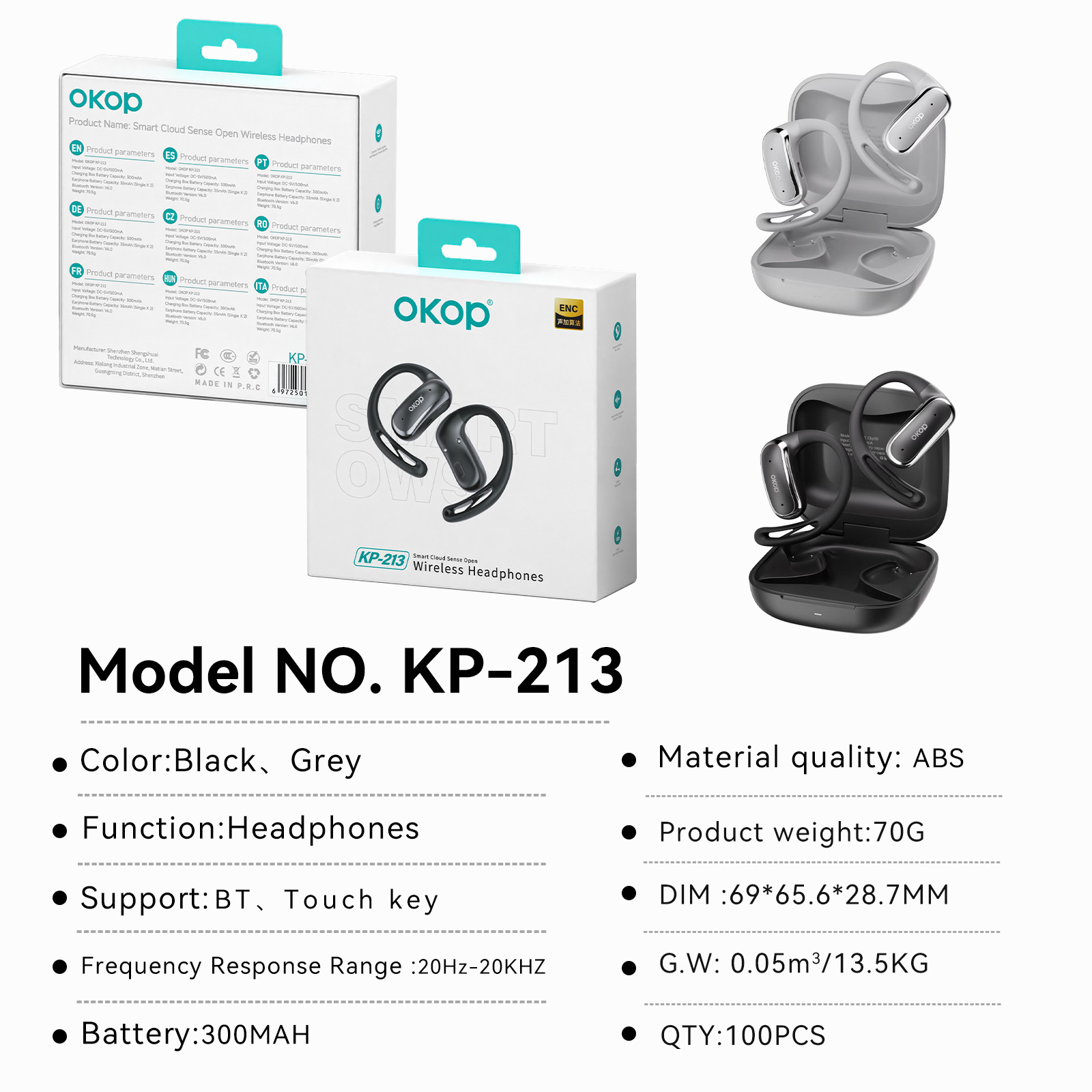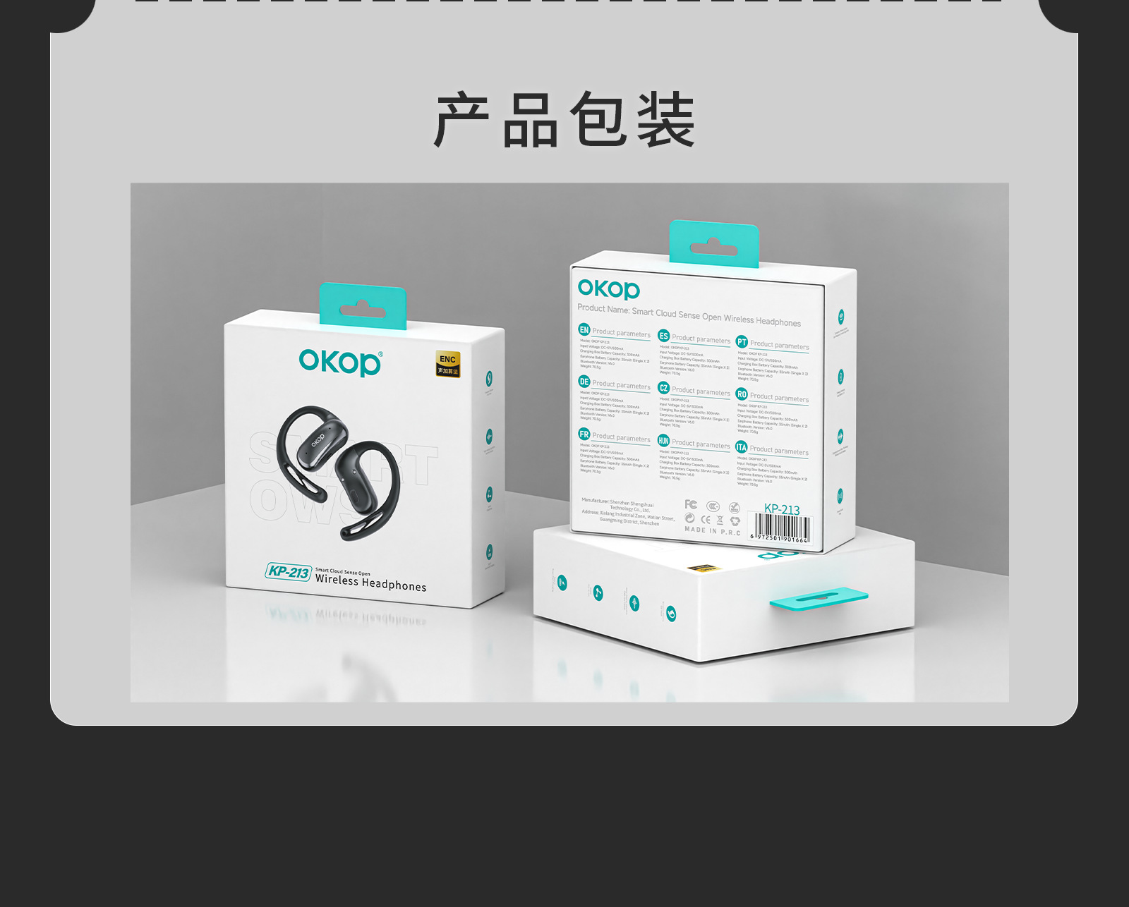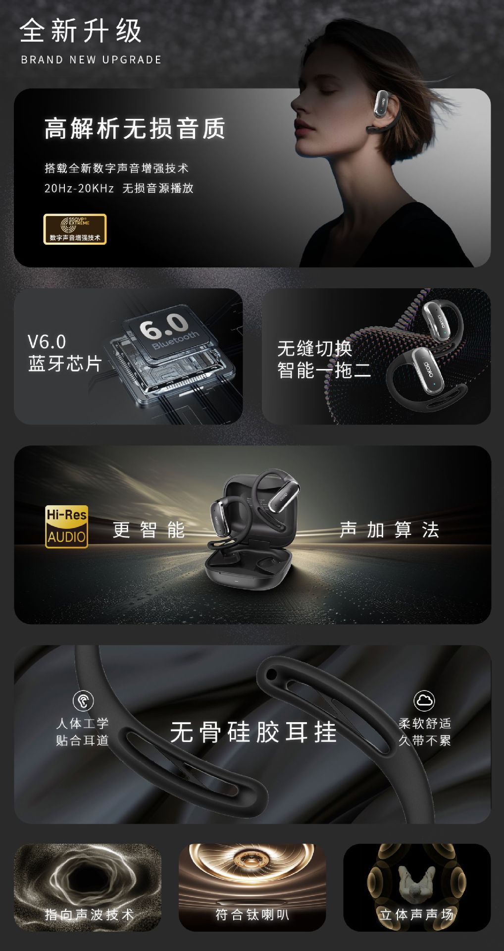 213挂耳蓝牙耳机OWS智能降噪一拖二跨境热销游戏低延迟高音质耳机