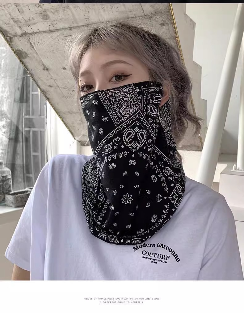 骑行耳防晒面罩户外护颈骑行面巾机车女脖子冰丝脸罩面纱挂耳脖套