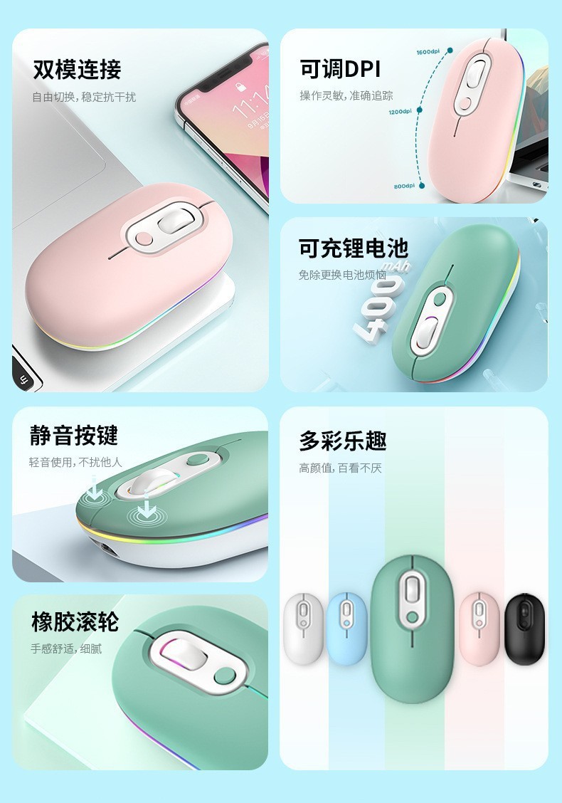 厂家直销充电鼠标静音蓝牙2.4G双模适用苹果华为笔记本无线鼠标