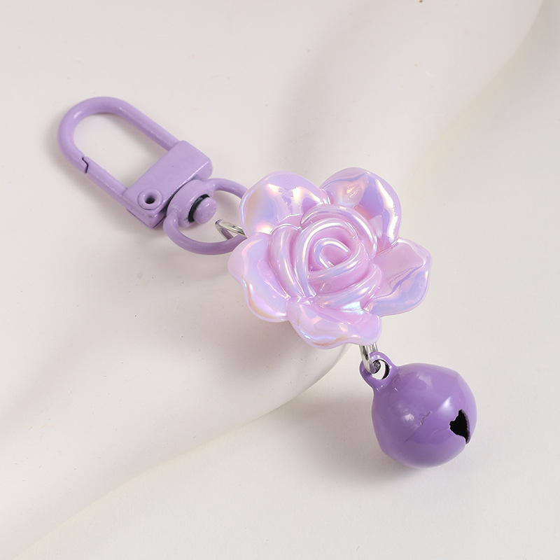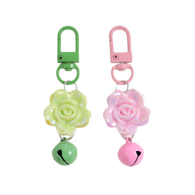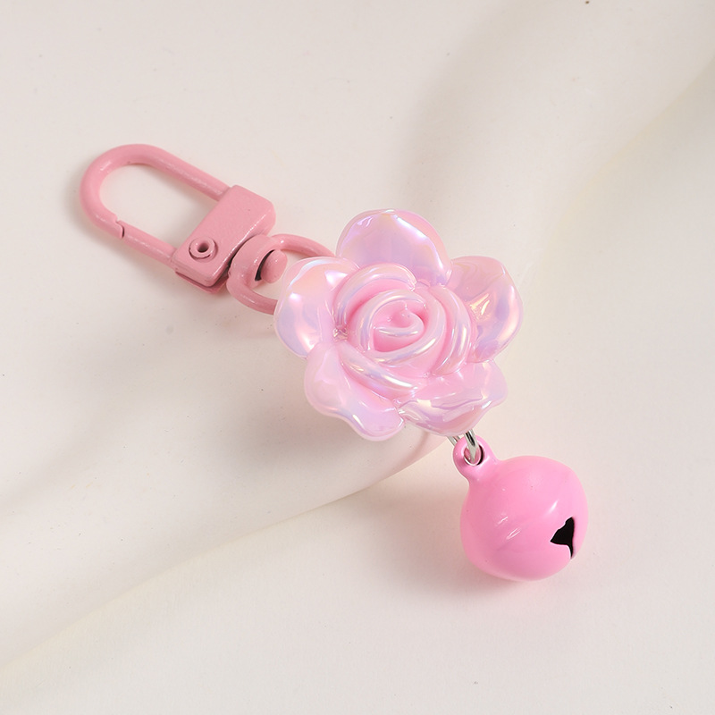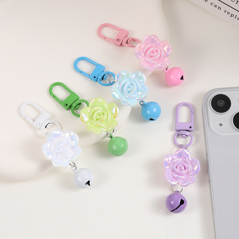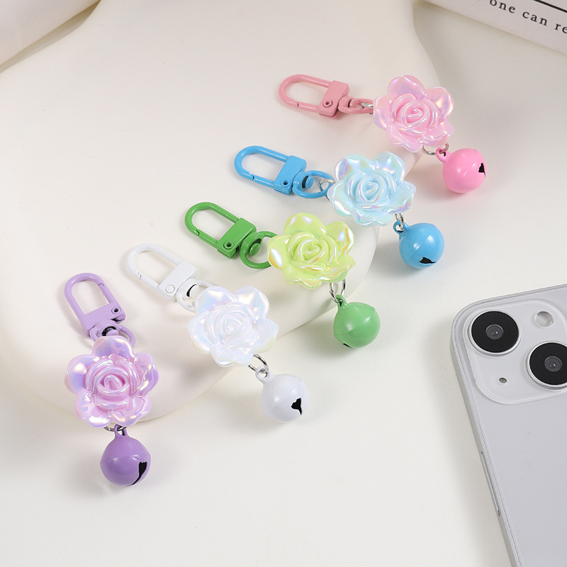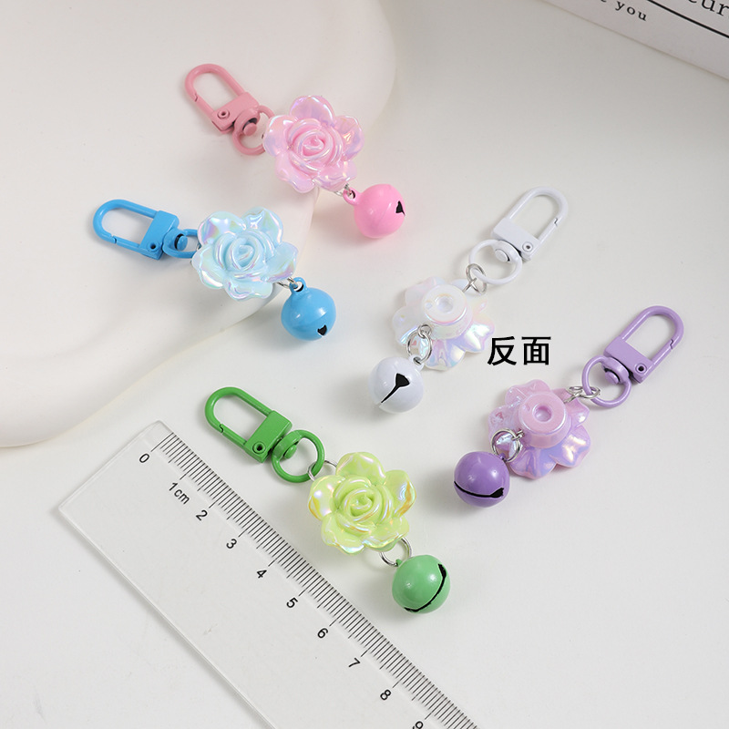 uv镀彩玫瑰花钥匙扣茶花铃铛包包挂件airpods耳机壳保护套小挂饰
