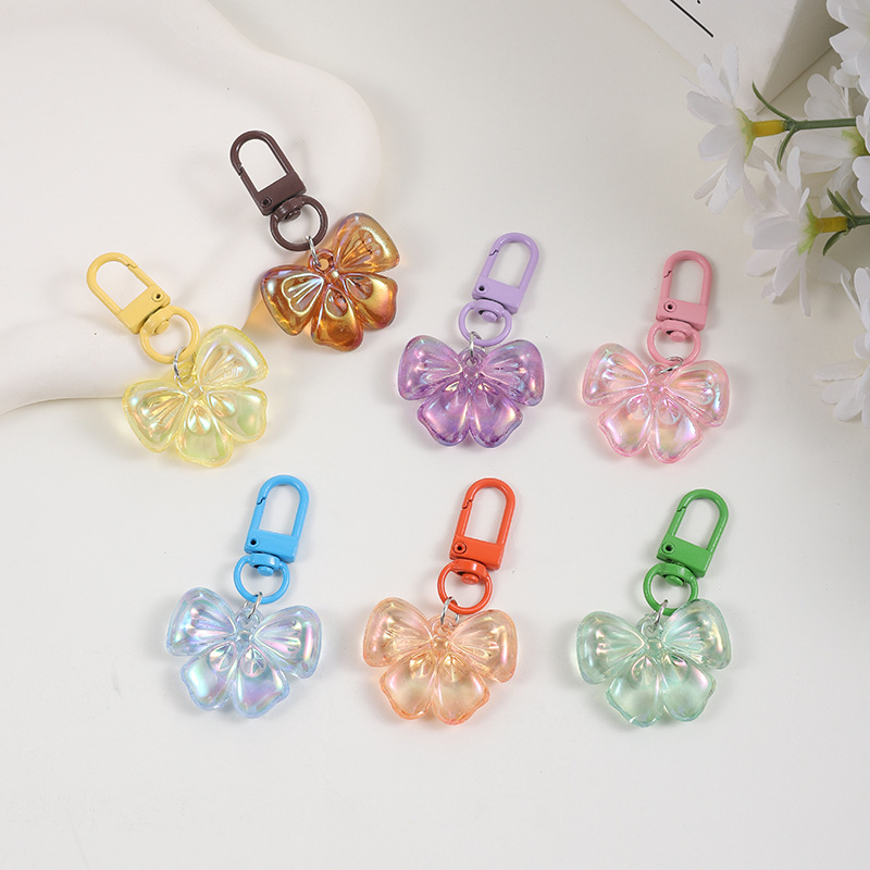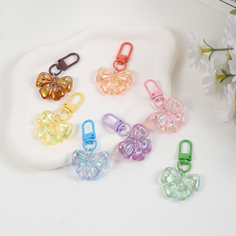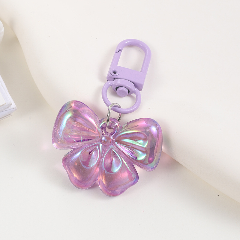 新款双面蝴蝶结挂件亚克力镀彩领结钥匙扣少女包包挂件手机壳挂饰