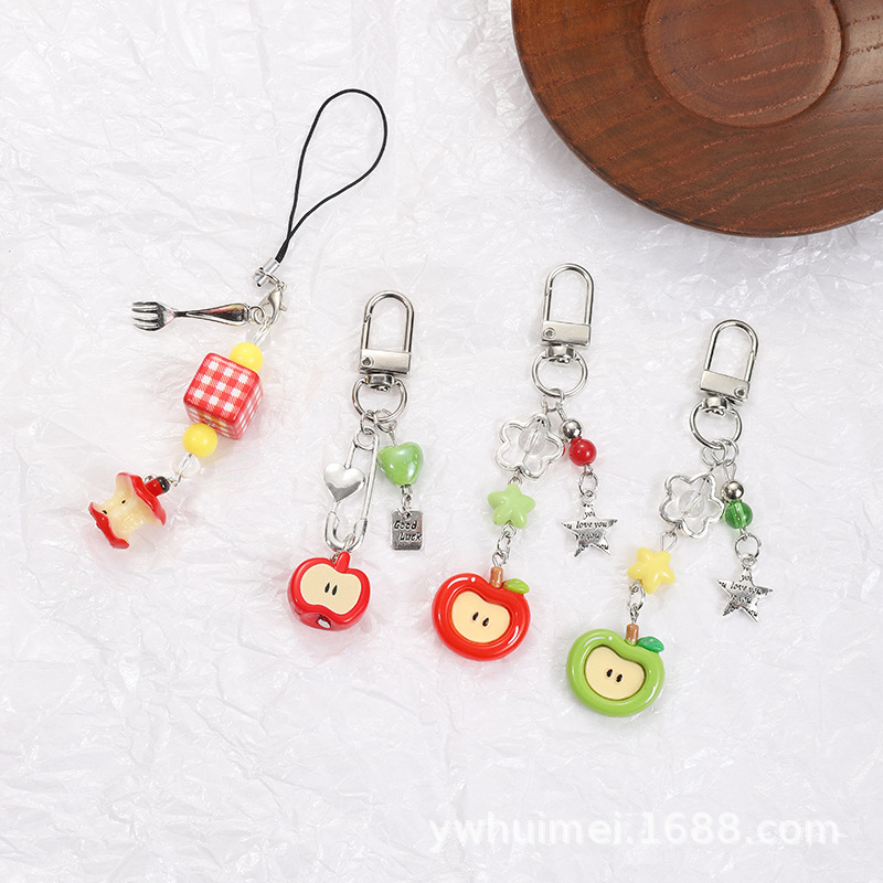 (平安喜乐)红苹果手机链Airpods耳机壳挂饰个性包包挂坠钥匙扣