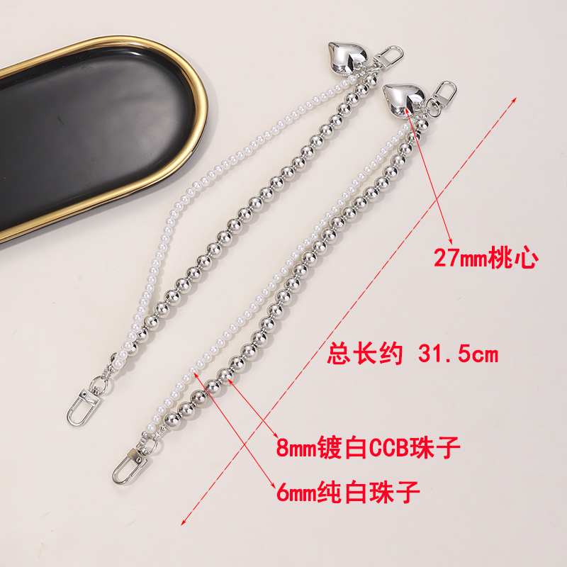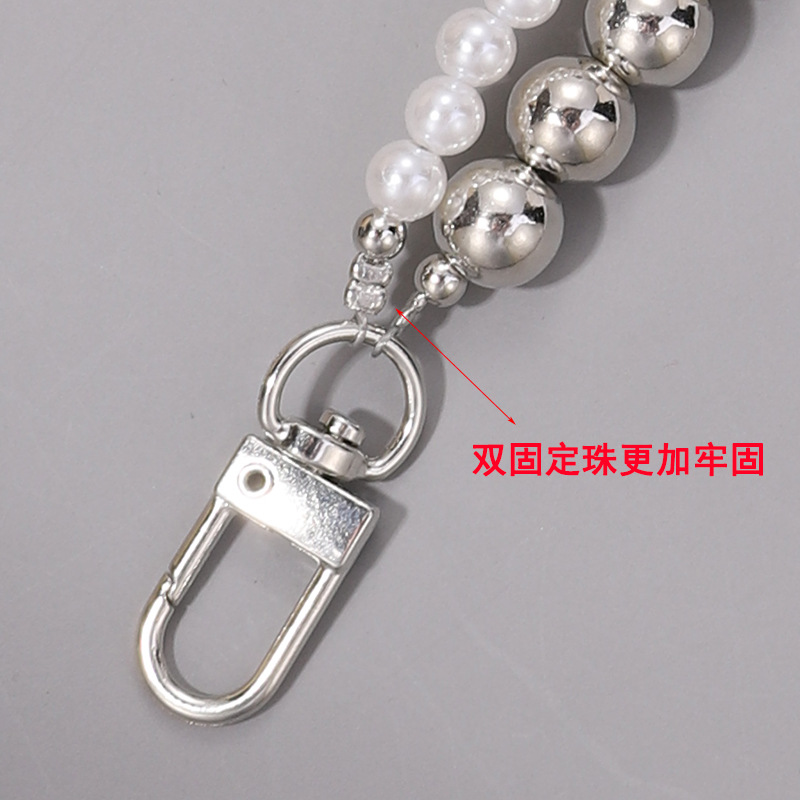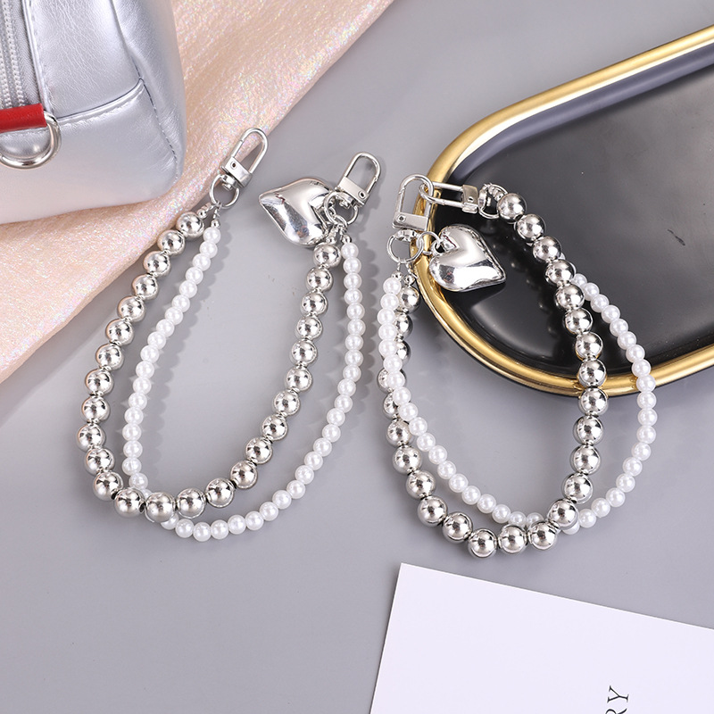 简约双串珠链珍珠链条冷淡风小众爱心手机链短款包包挂件挂链百搭