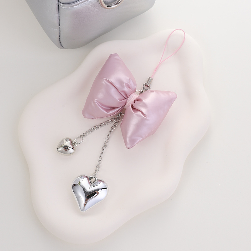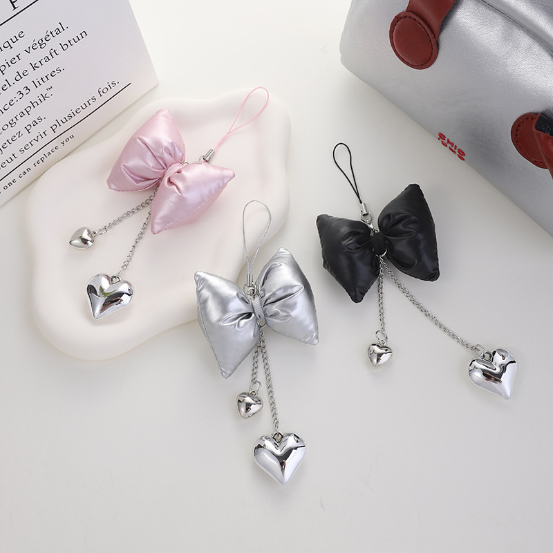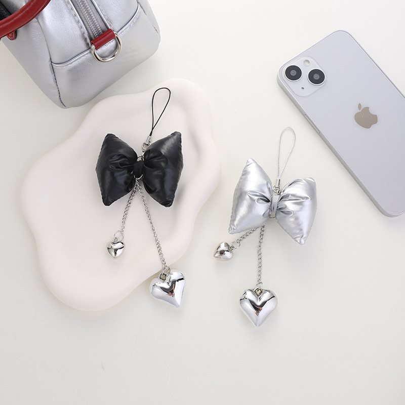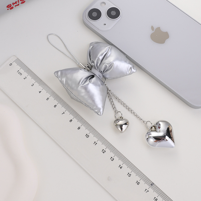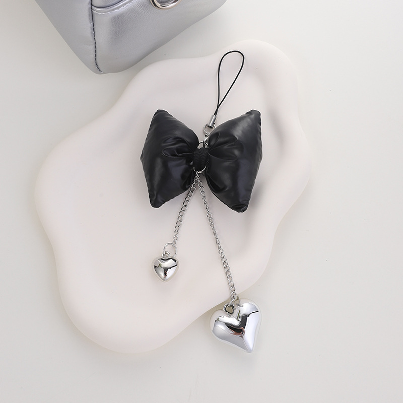 韩系小众ins风皮质爱心蝴蝶结手机链挂件包包挂饰钥匙扣手机挂绳