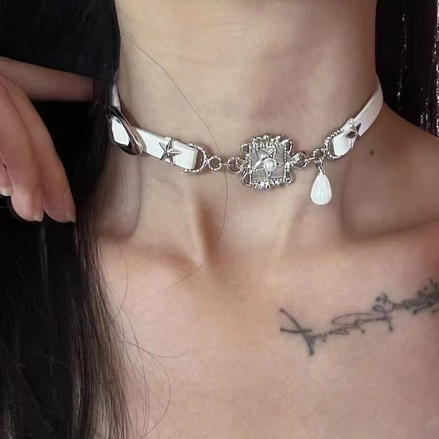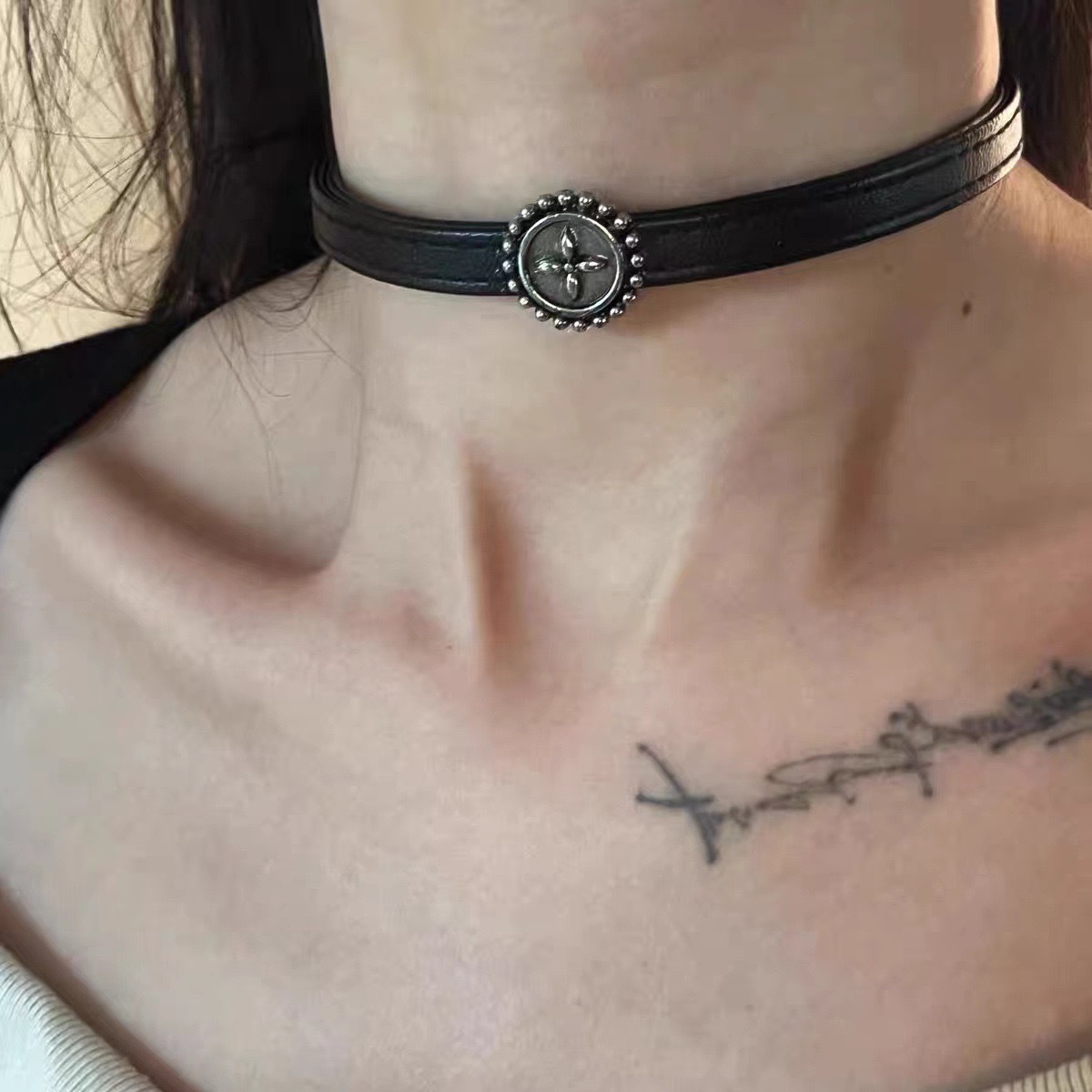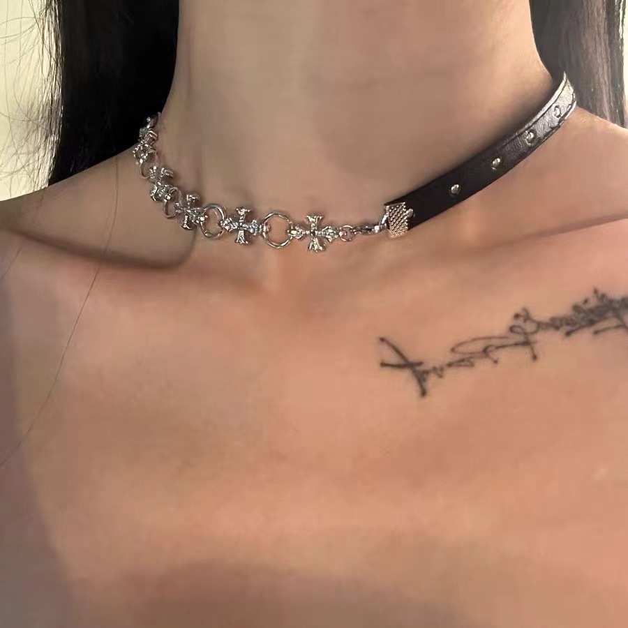 朋克重工y2k辣妹金属风皮革项圈项链小众设计感choker锁骨链配饰