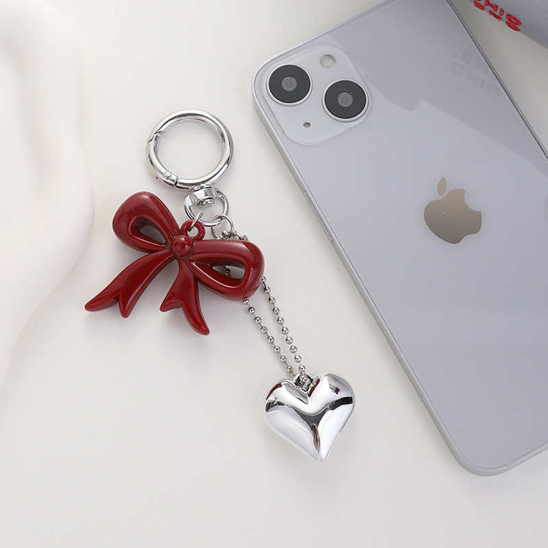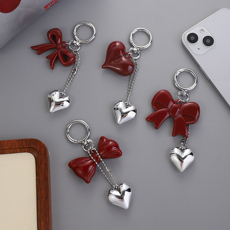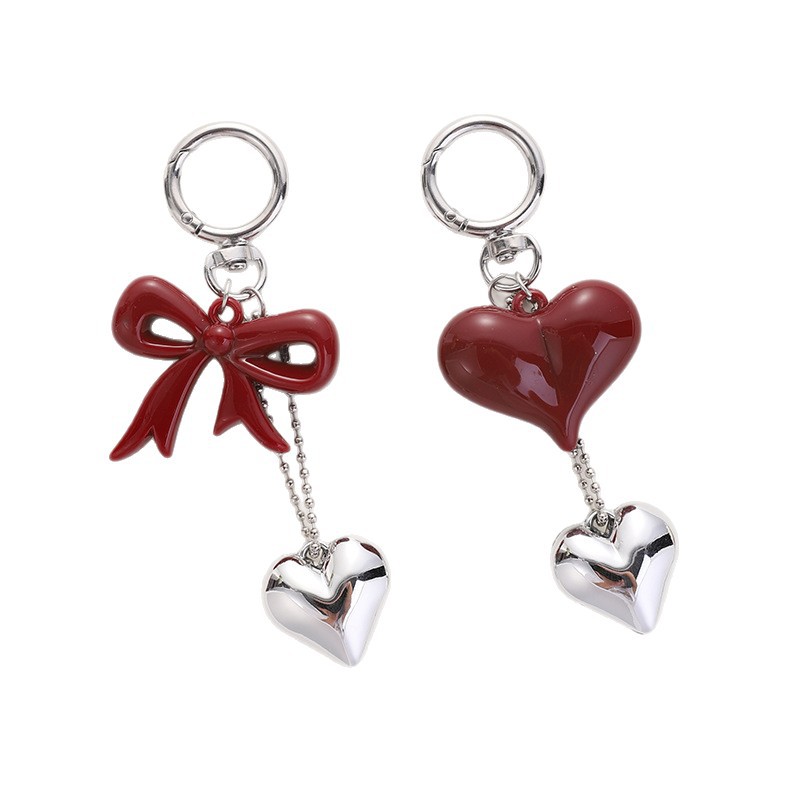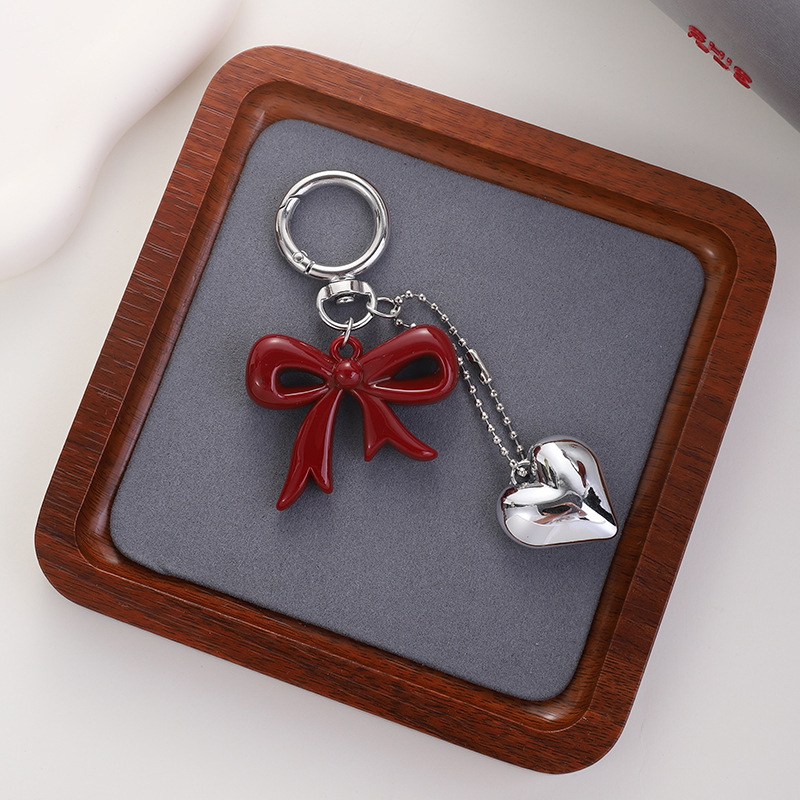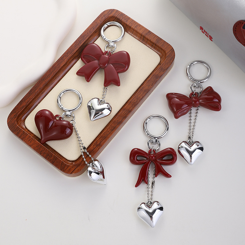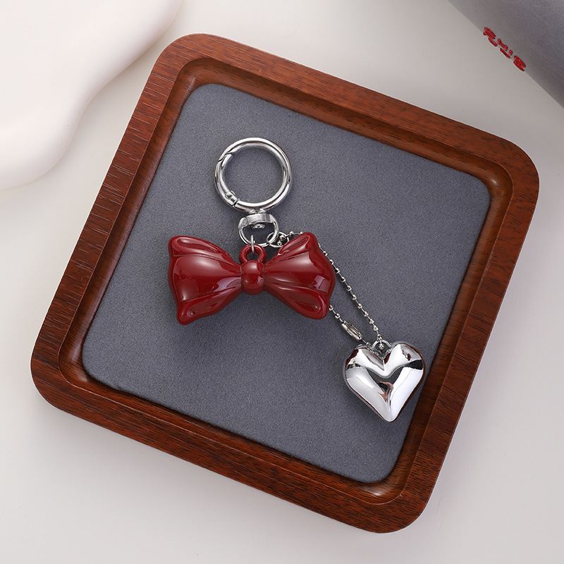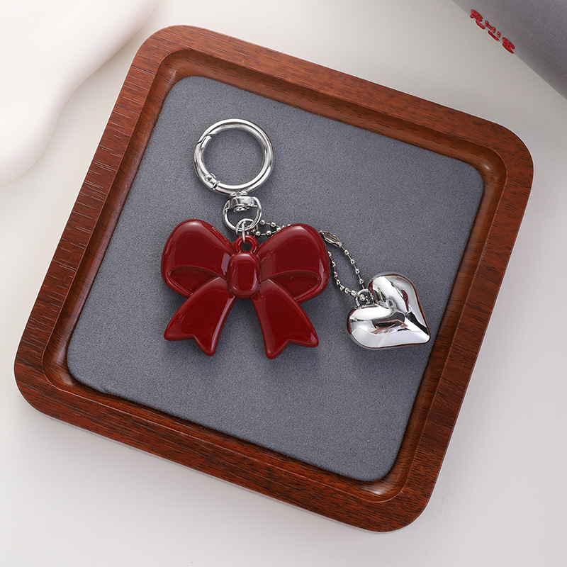 亚克力爱心酒红蝴蝶结钥匙扣桃心吊坠气质少女包包挂饰汽车钥匙扣