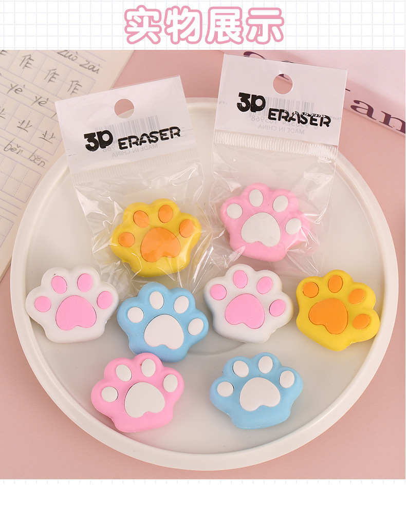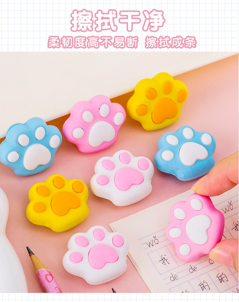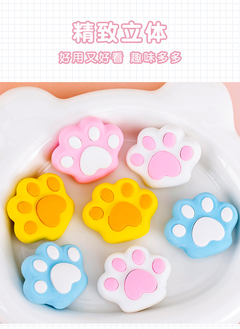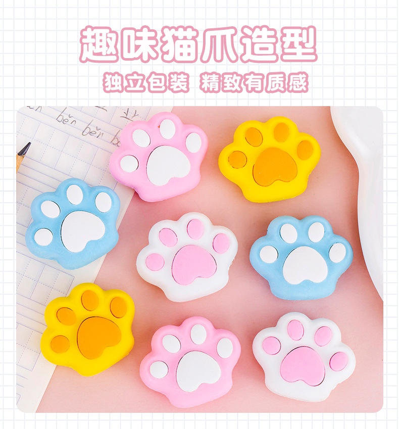 跨境创意彩色猫爪橡皮擦学生文具奖品六一期末圣诞礼物礼品奖励