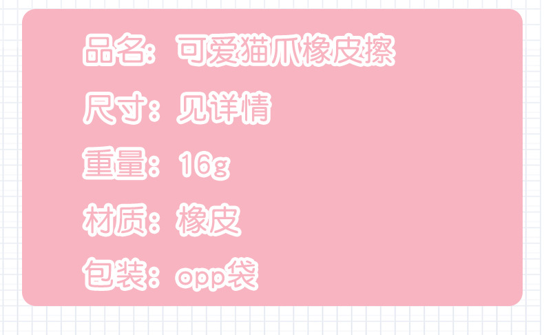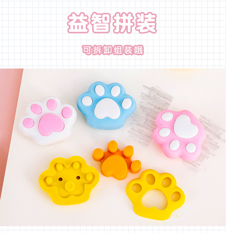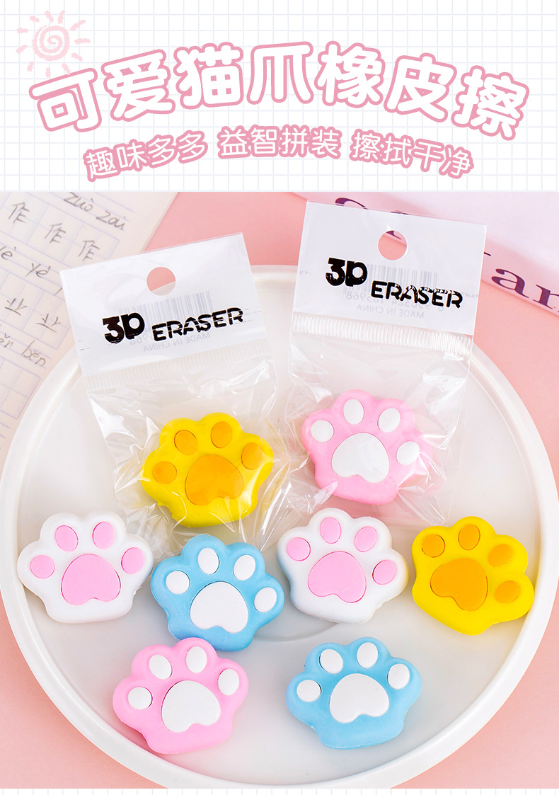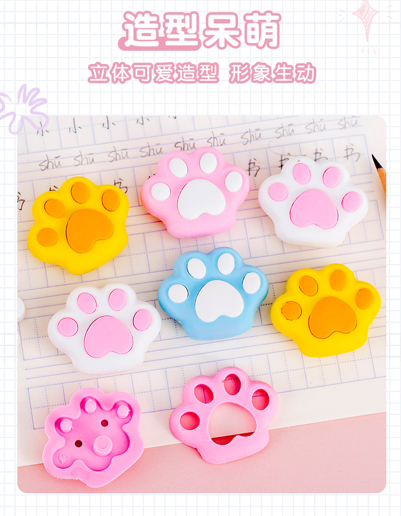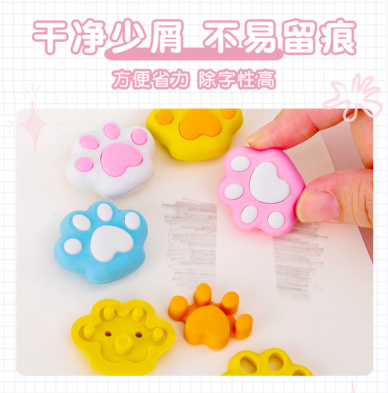 跨境创意彩色猫爪橡皮擦学生文具奖品六一期末圣诞礼物礼品奖励