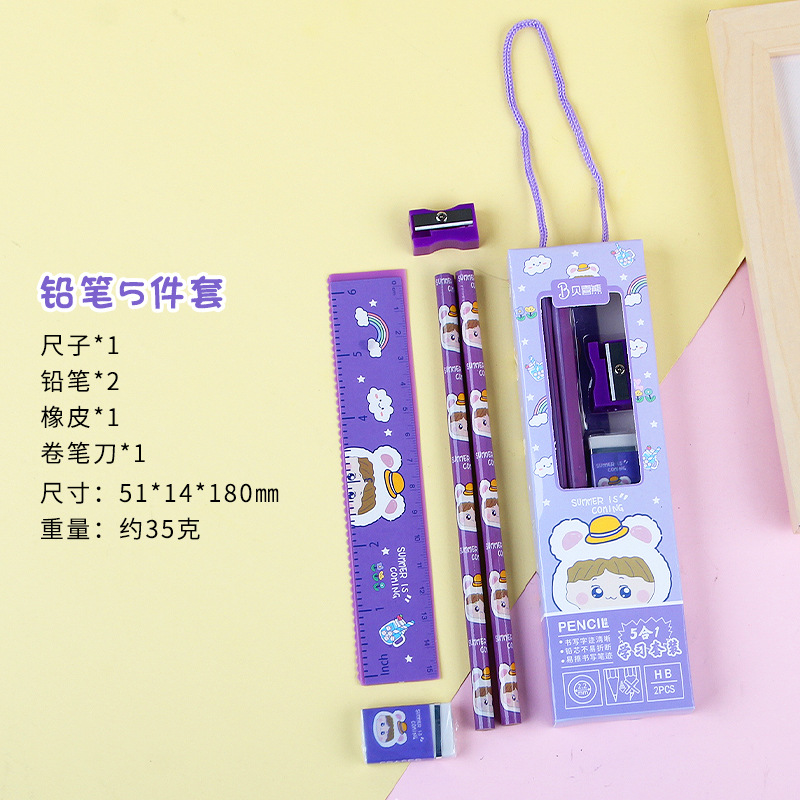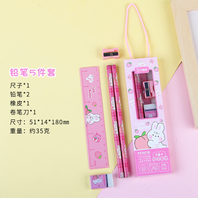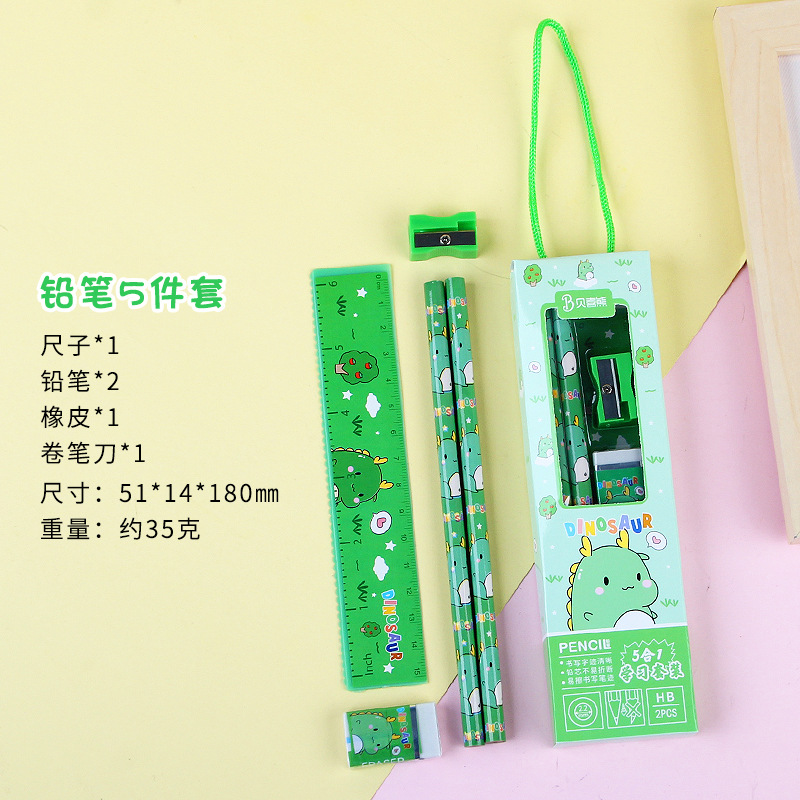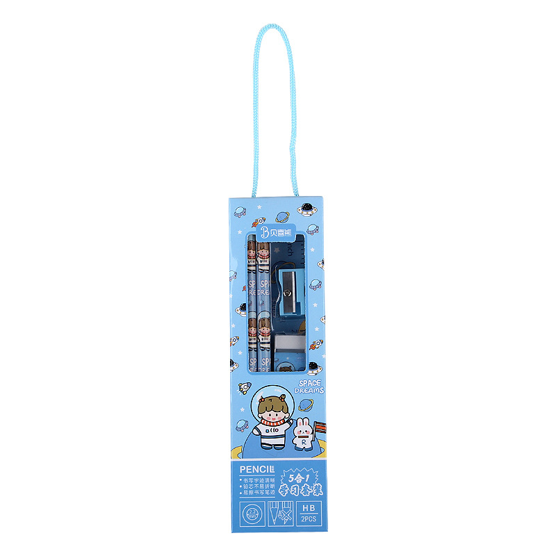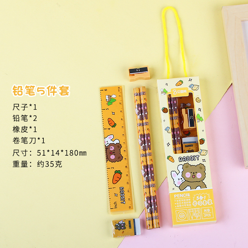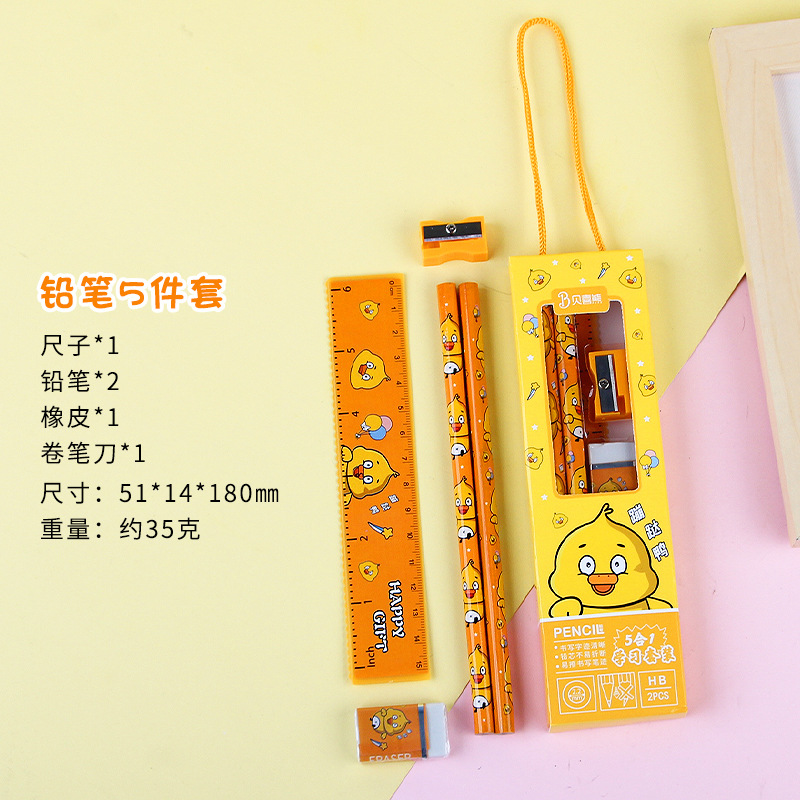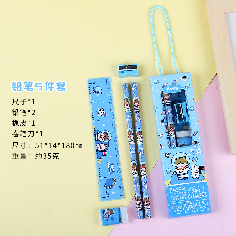 六一圣诞礼物卡通可爱手提铅笔套装5件套学生文具奖品礼品批发