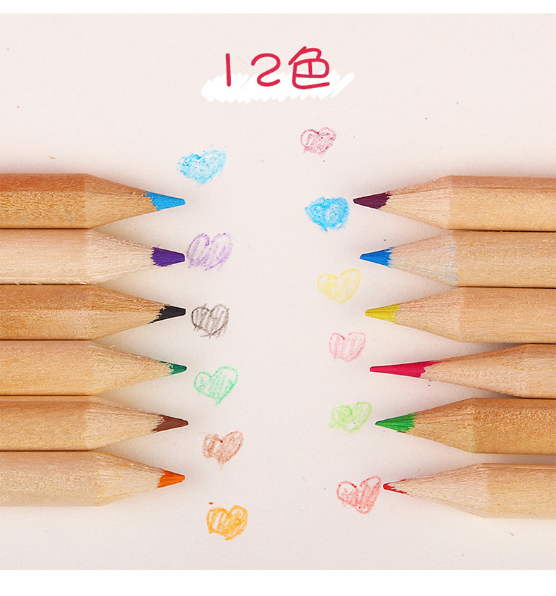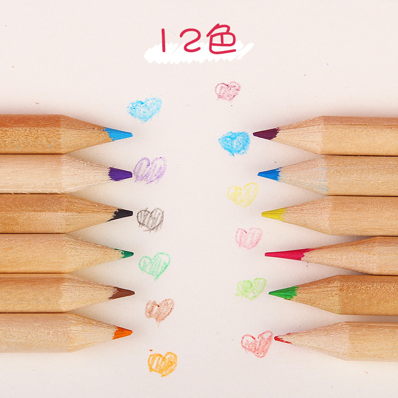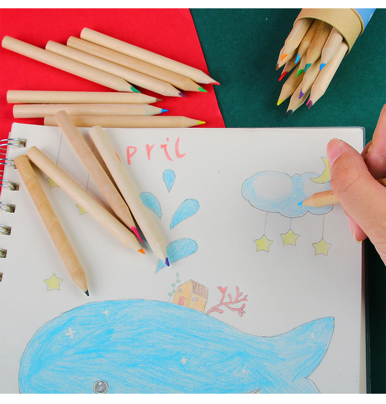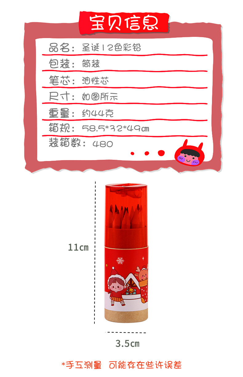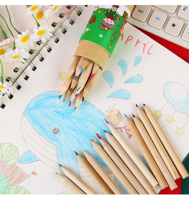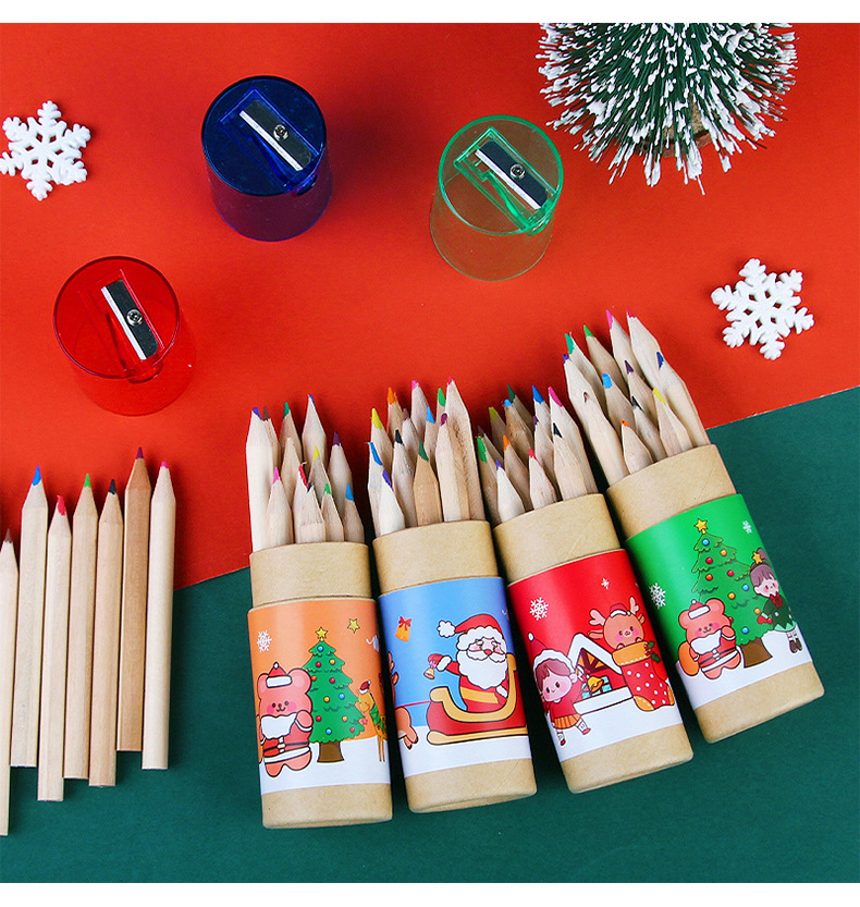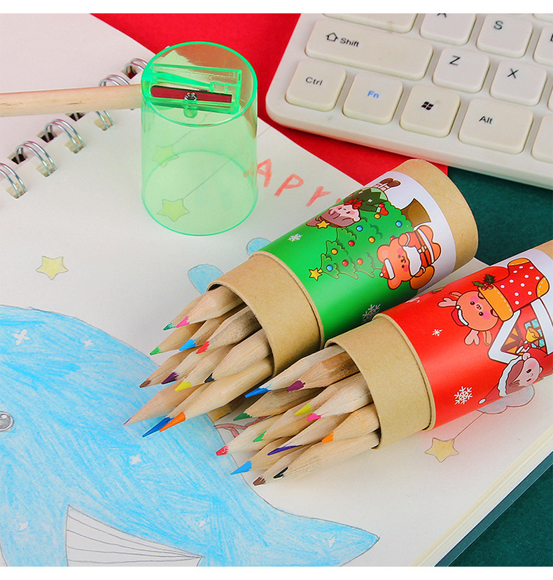 筒装彩色铅笔套装卡通圣诞12色彩铅小学生绘画铅笔圣诞节礼物批发