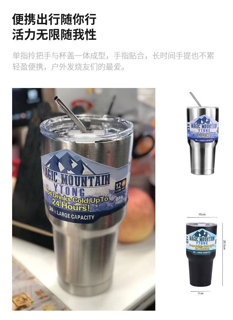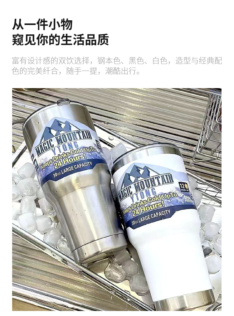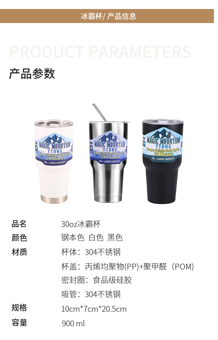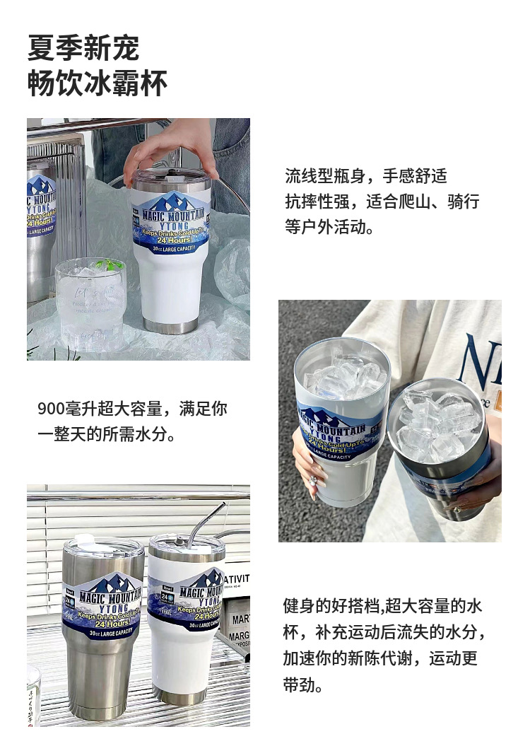 30oz冰霸杯夏季保冰杯304不锈钢大容量保温保冷杯便携车载水杯