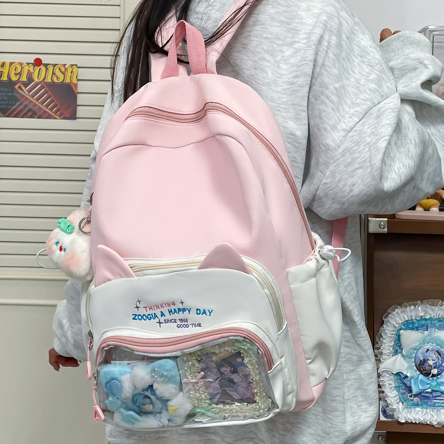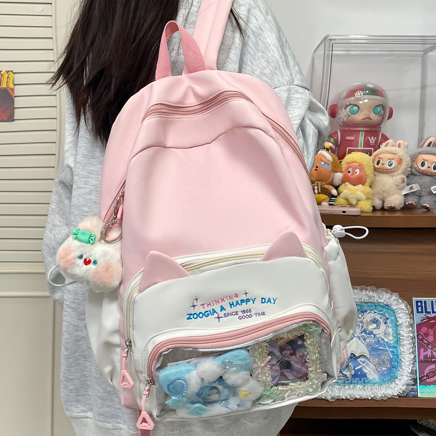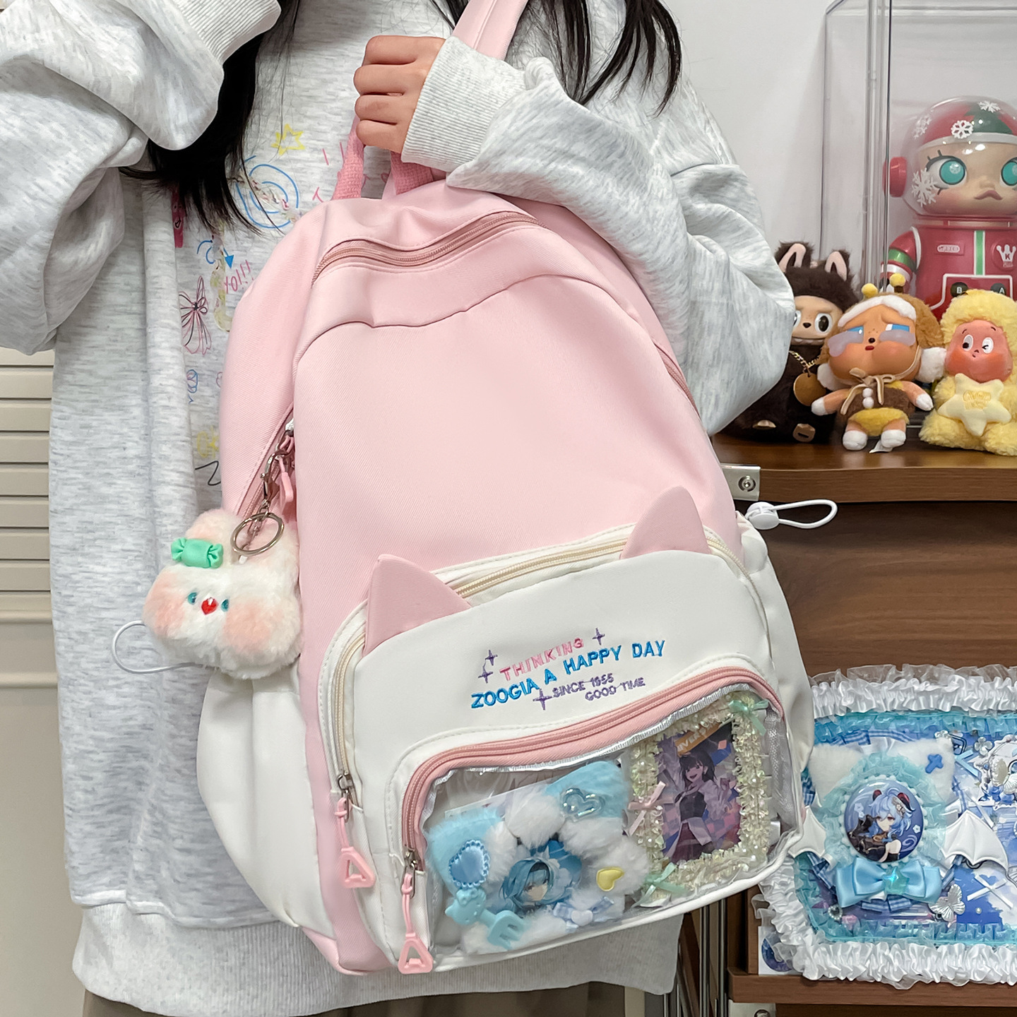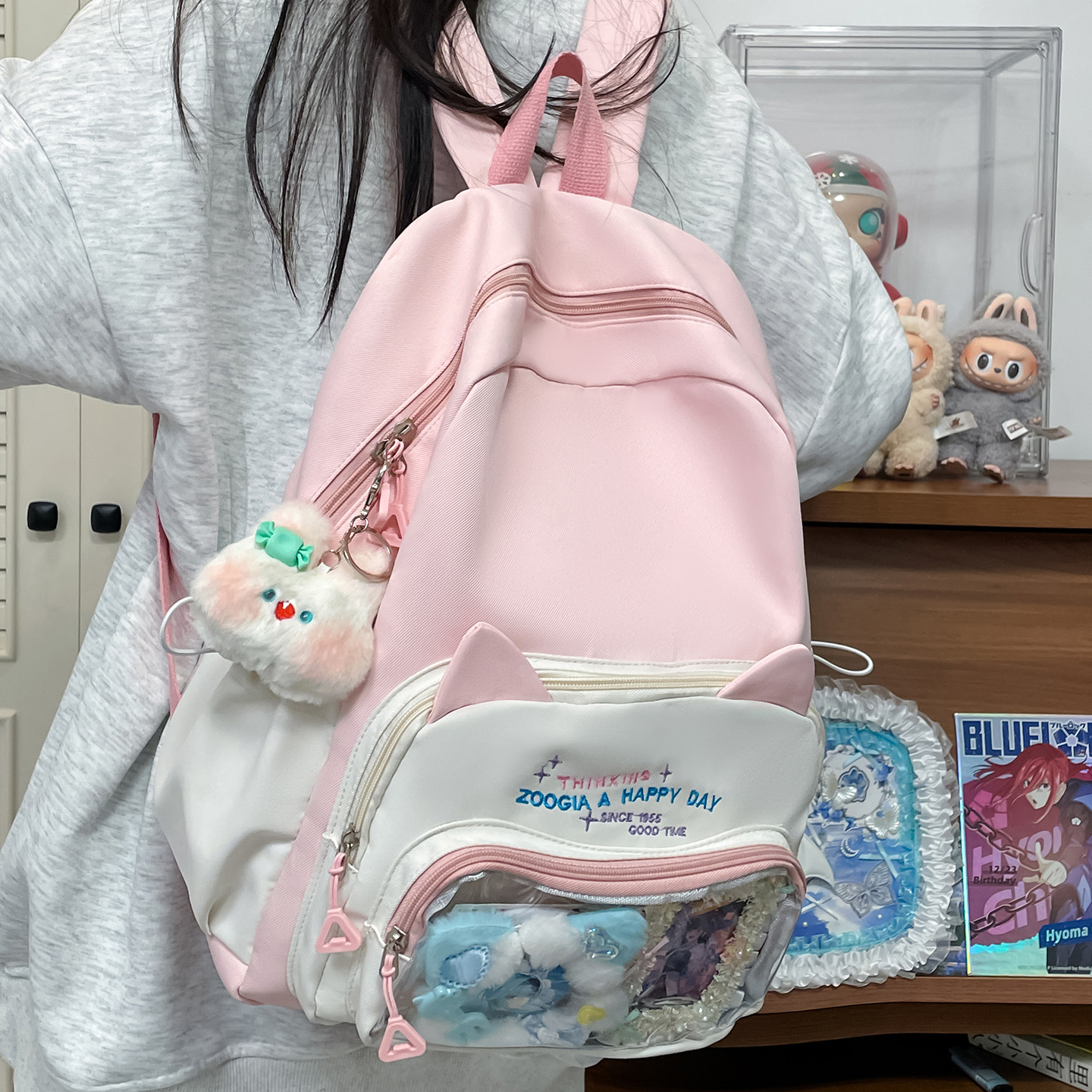 跨境ins风书包初中女生双肩包高中生大容量可爱痛包多巴胺背包女