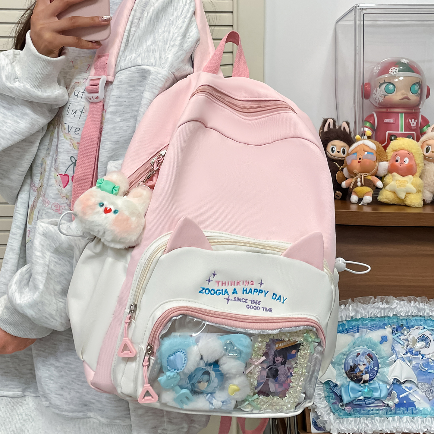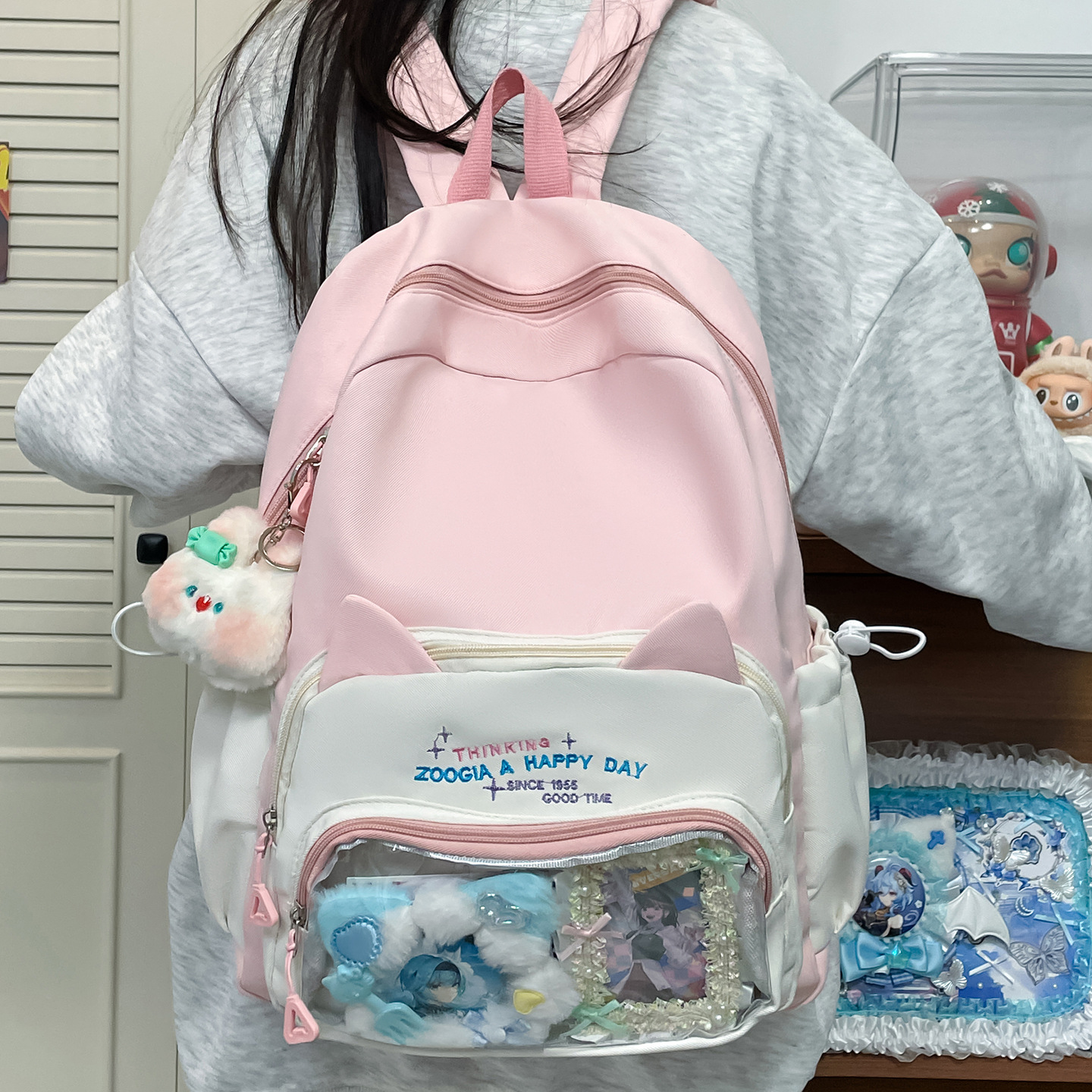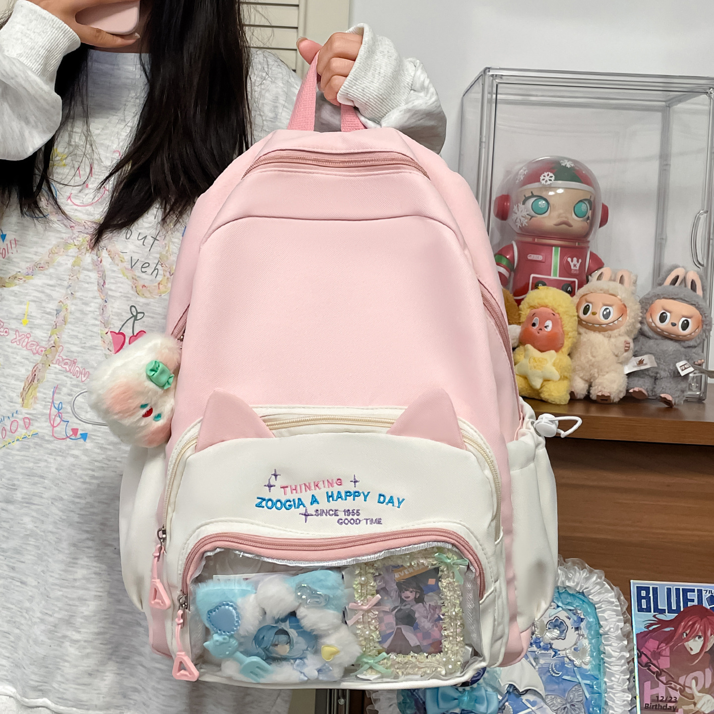 跨境ins风书包初中女生双肩包高中生大容量可爱痛包多巴胺背包女