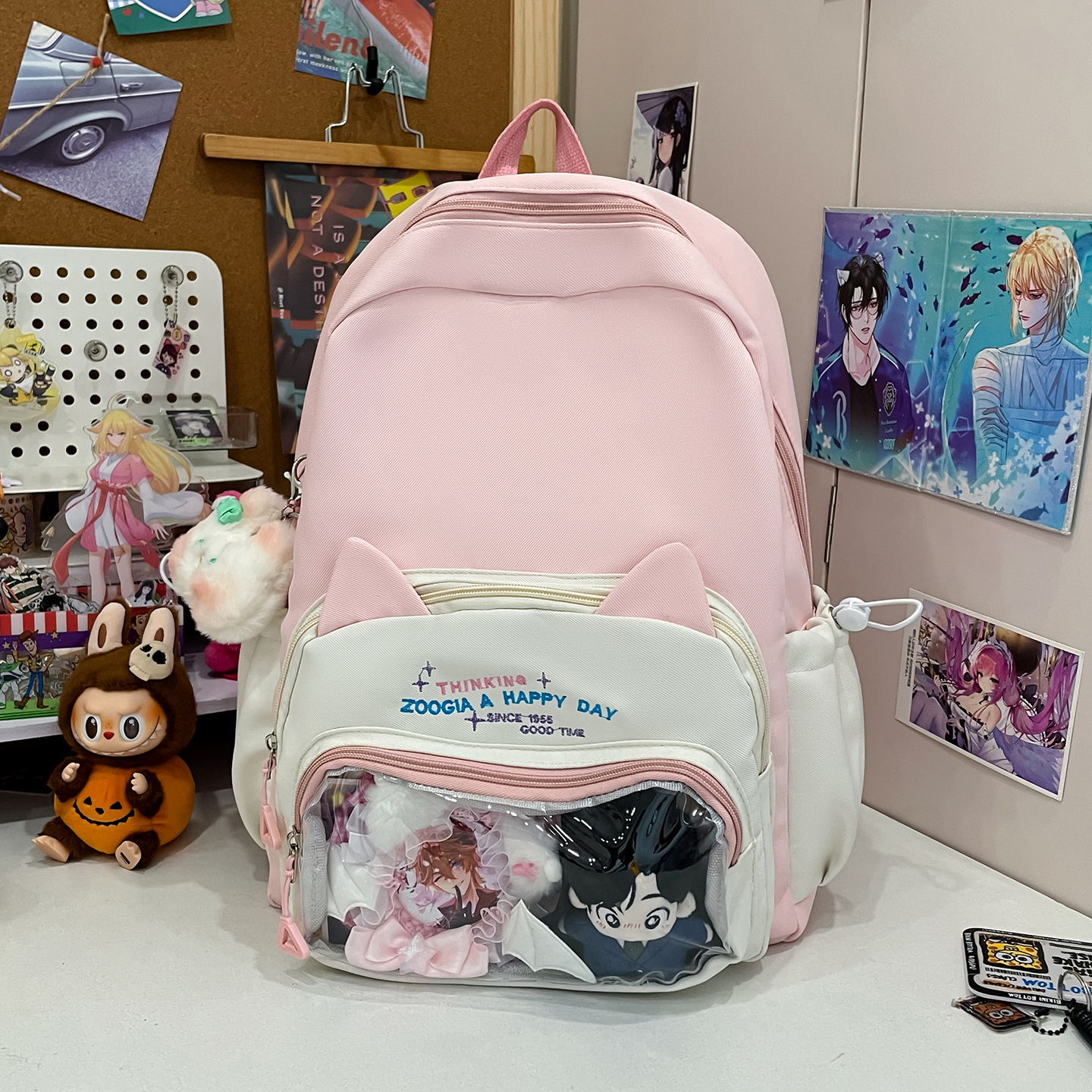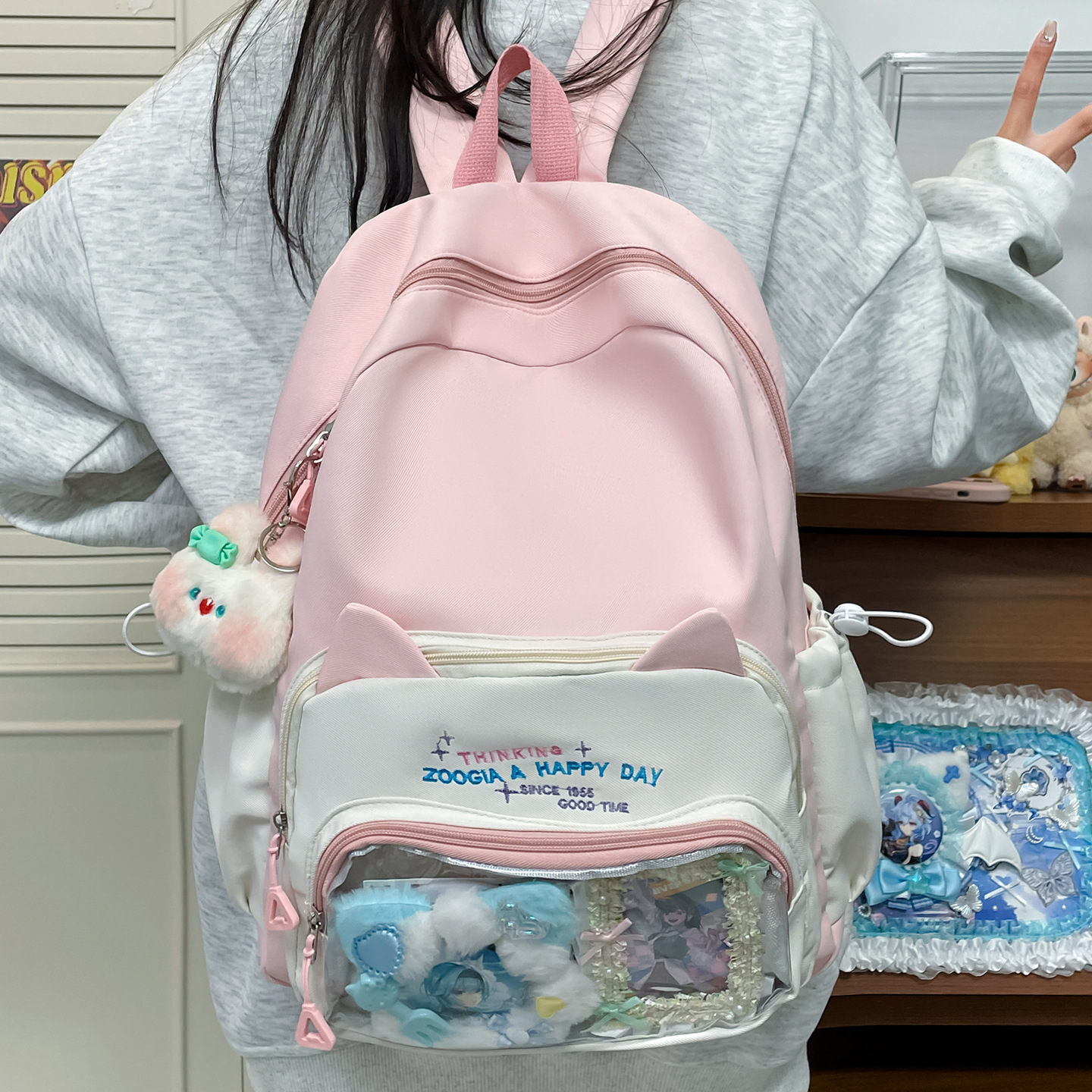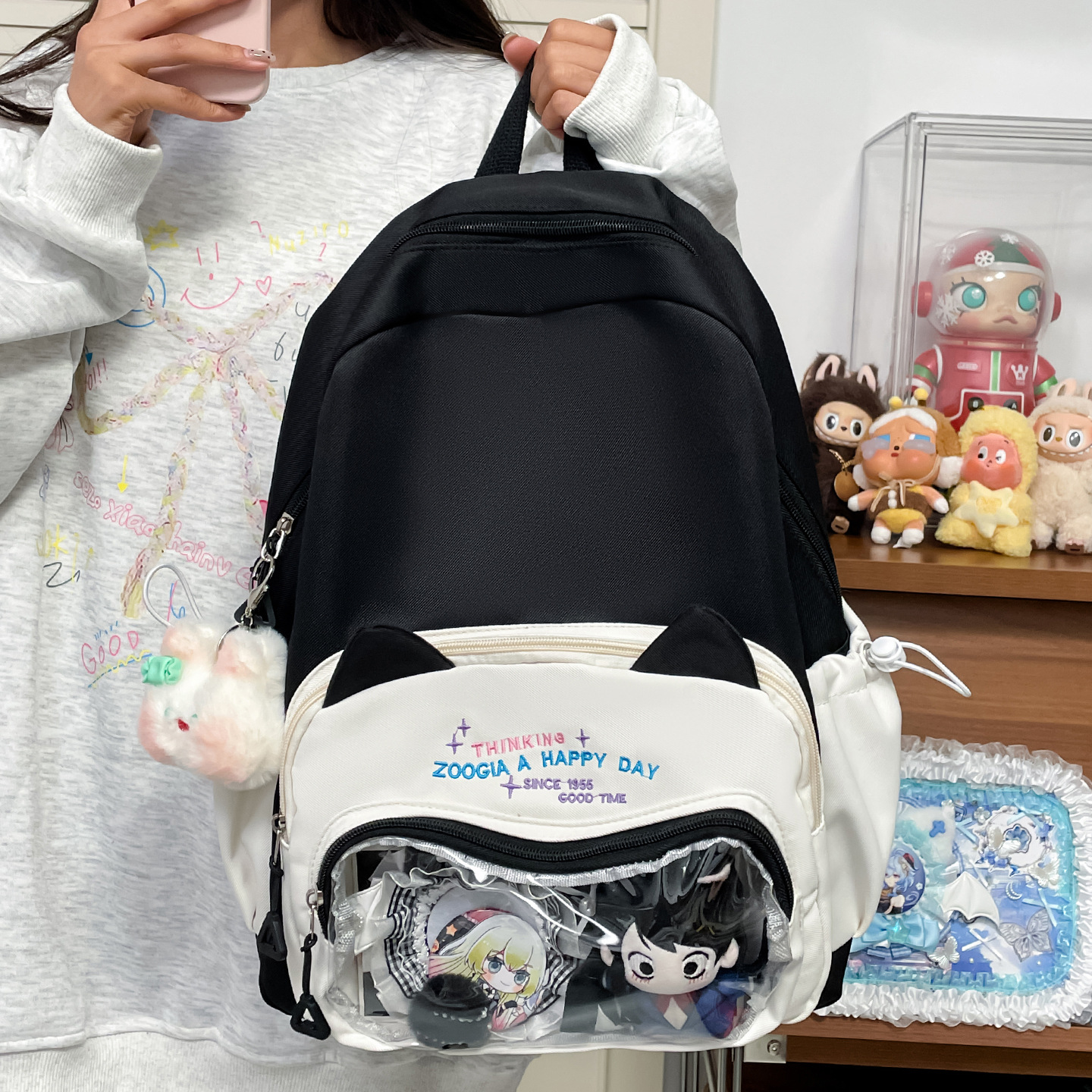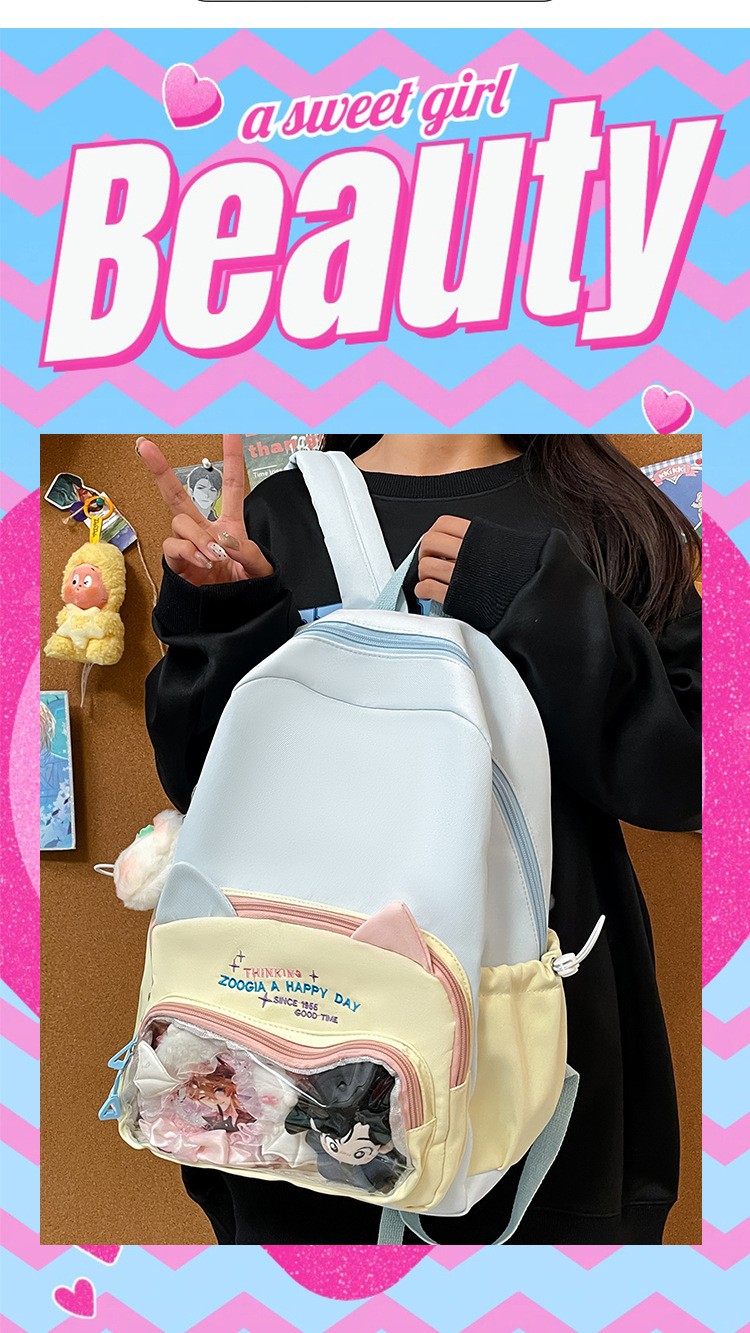 跨境ins风书包初中女生双肩包高中生大容量可爱痛包多巴胺背包女