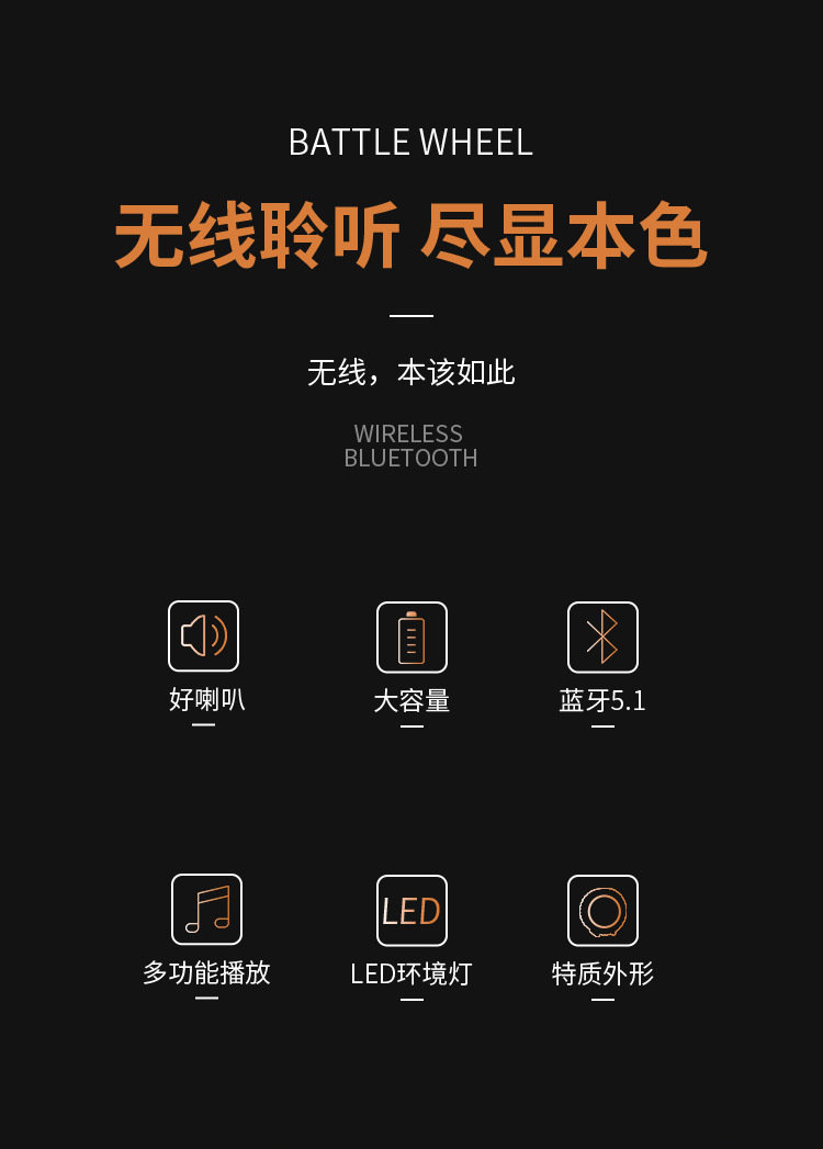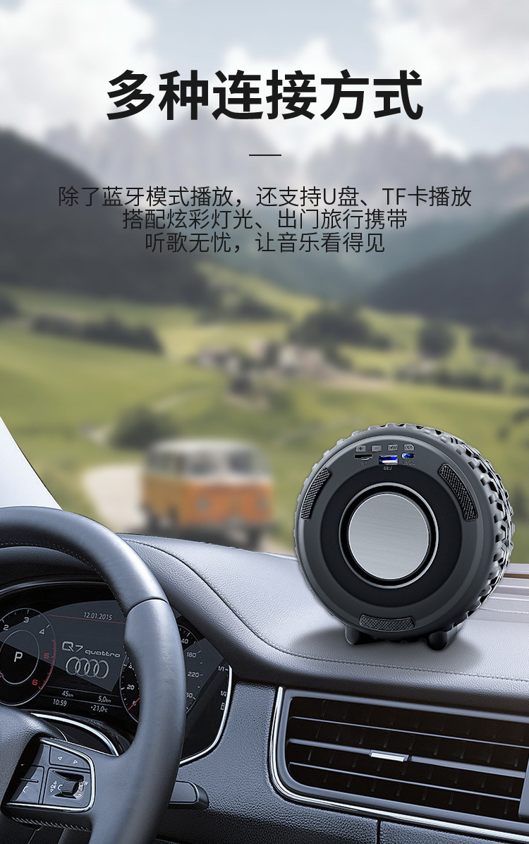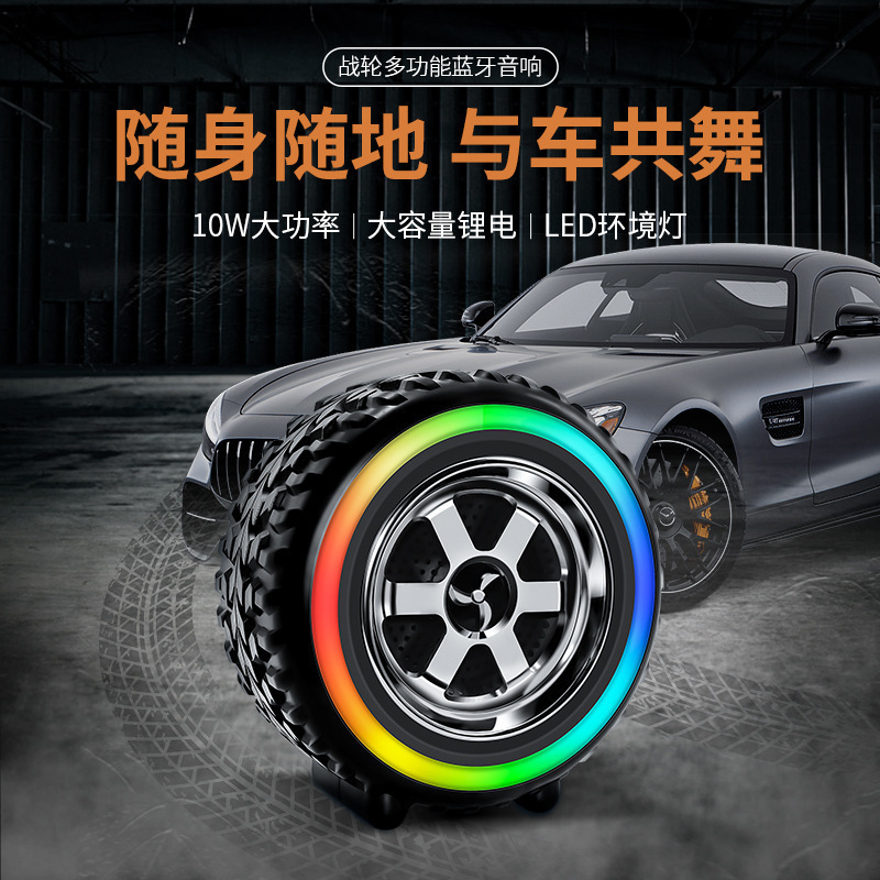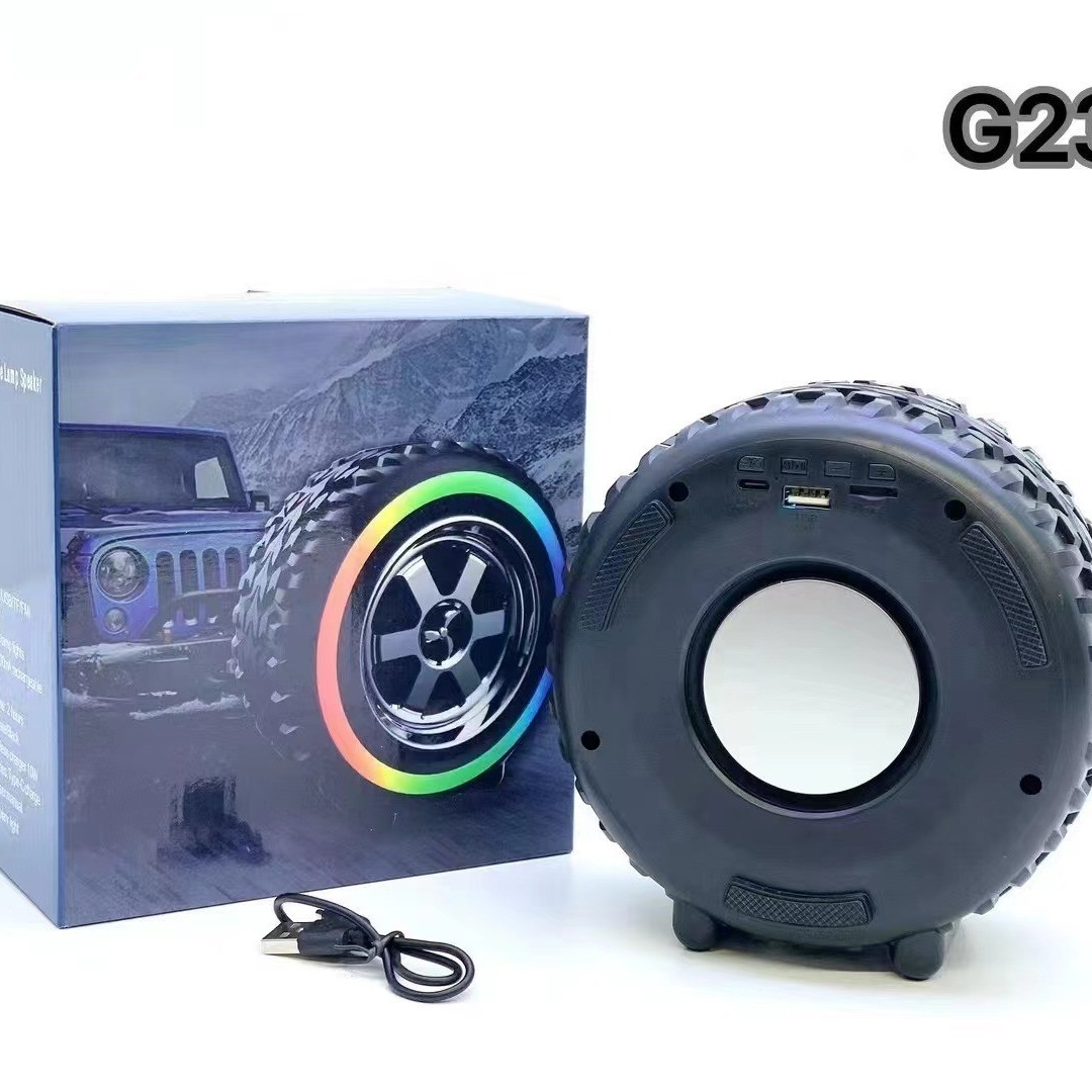 跨境爆款G2389轮胎RGB蓝牙音响便携式多功能重低音炮户外TWS插卡