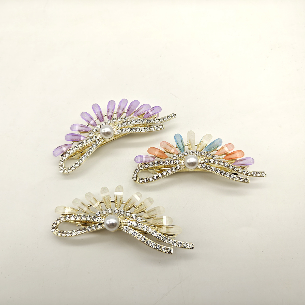 亚马逊弹簧夹气质横夹顶夹女网红发卡马尾夹水钻侧边夹
