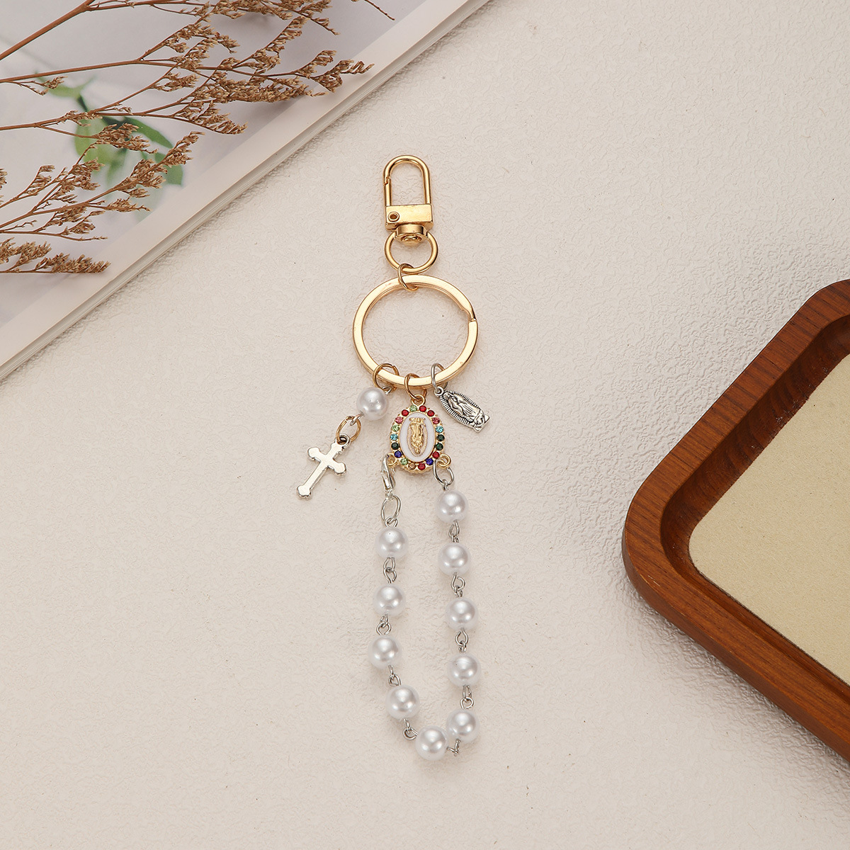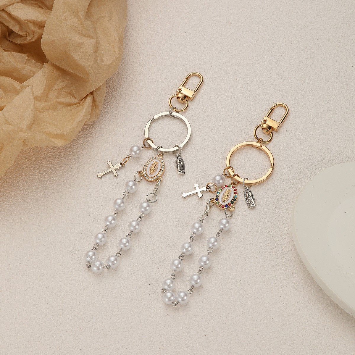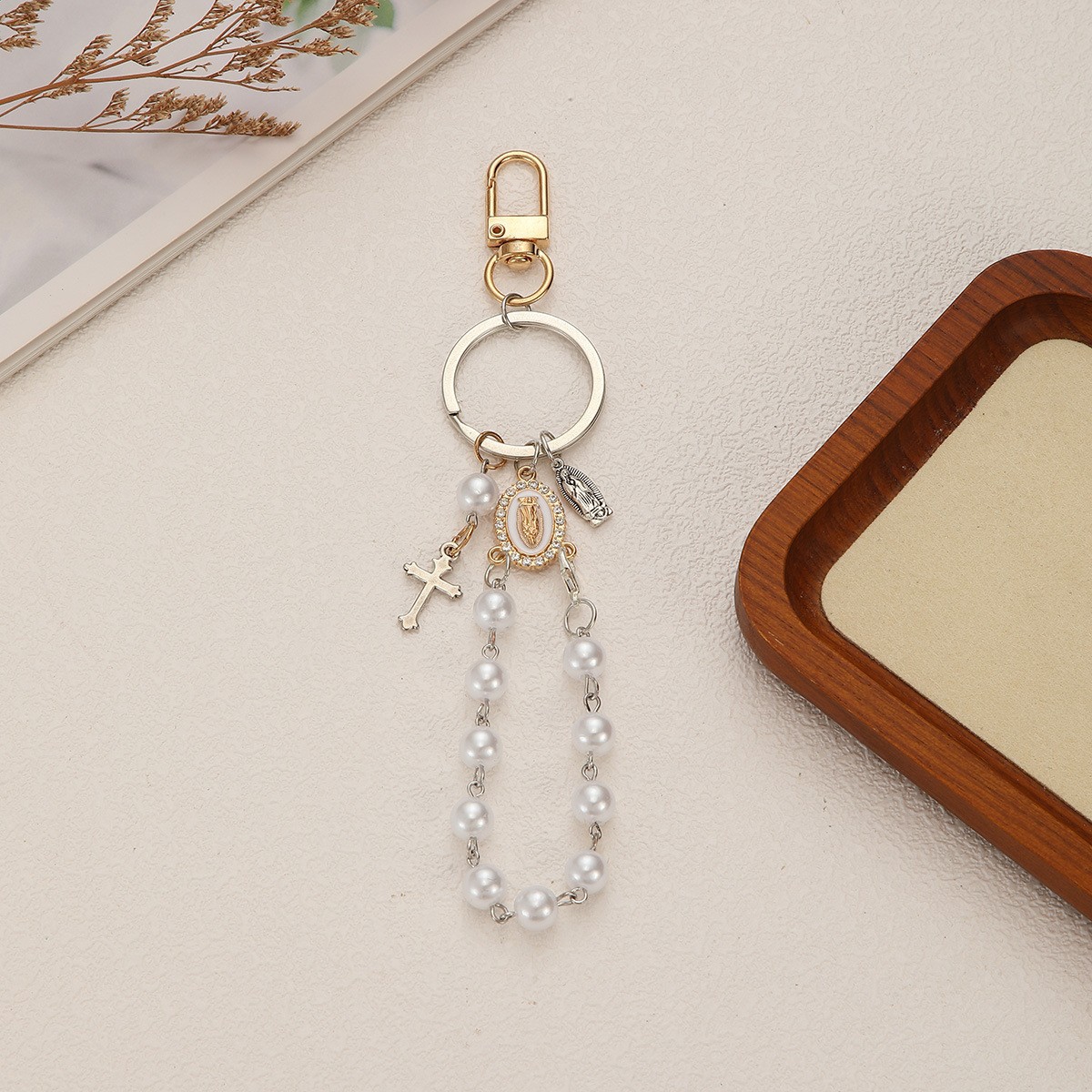 欧美跨境新款简约十字架珍珠串珠吊坠挂件手机链ins风钥匙扣