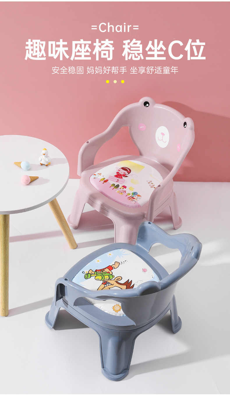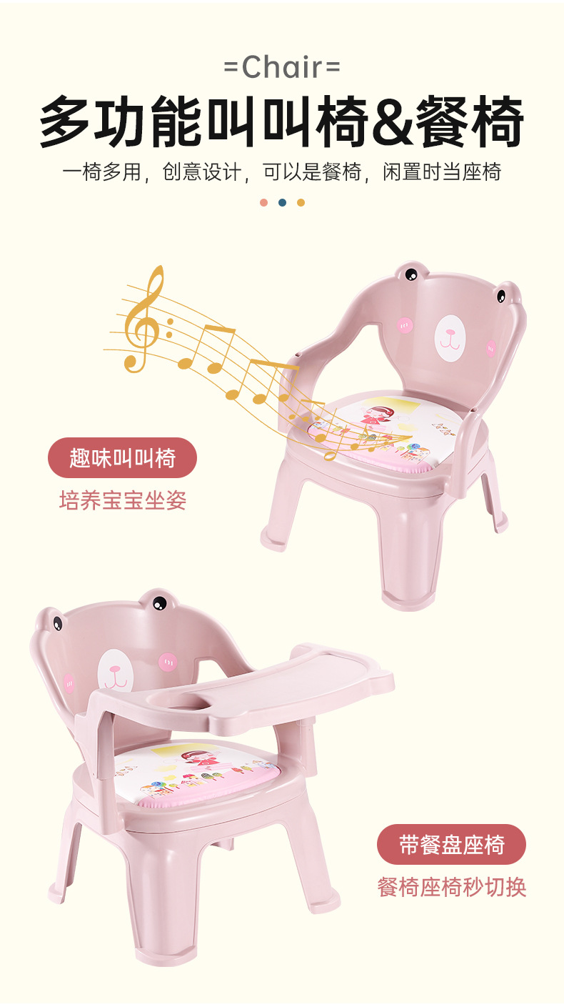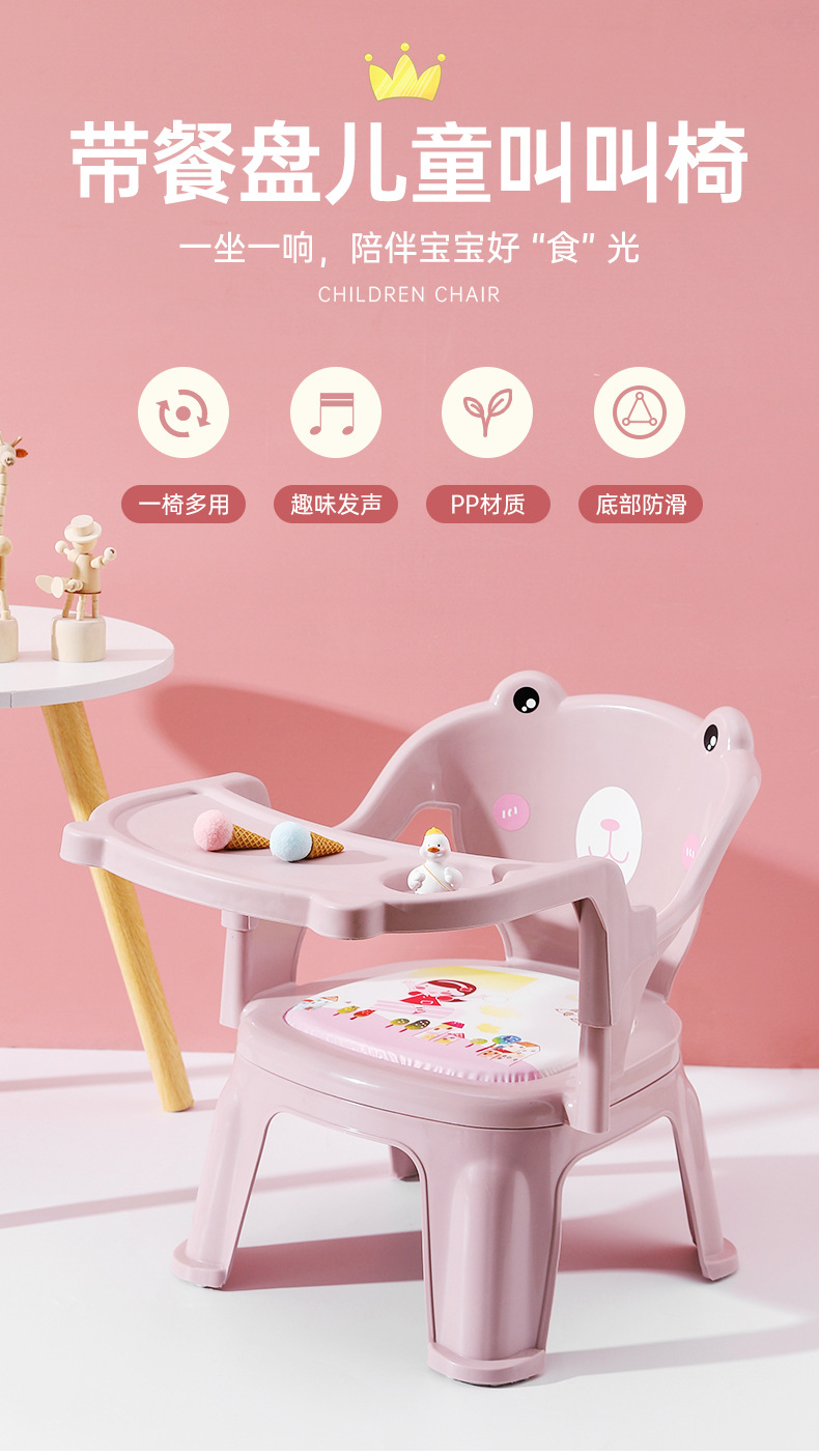新款高颜值加厚塑料儿童桌餐椅宝宝带哨子叫叫椅批发儿童餐椅卡通