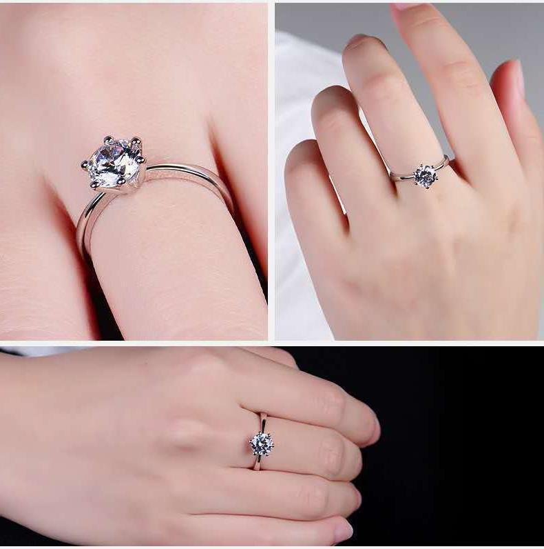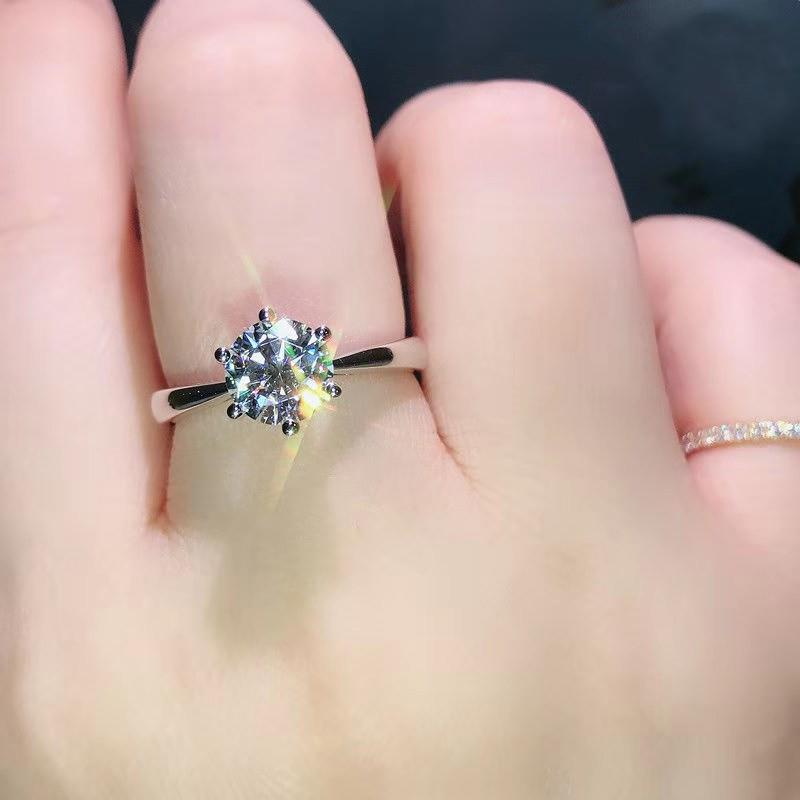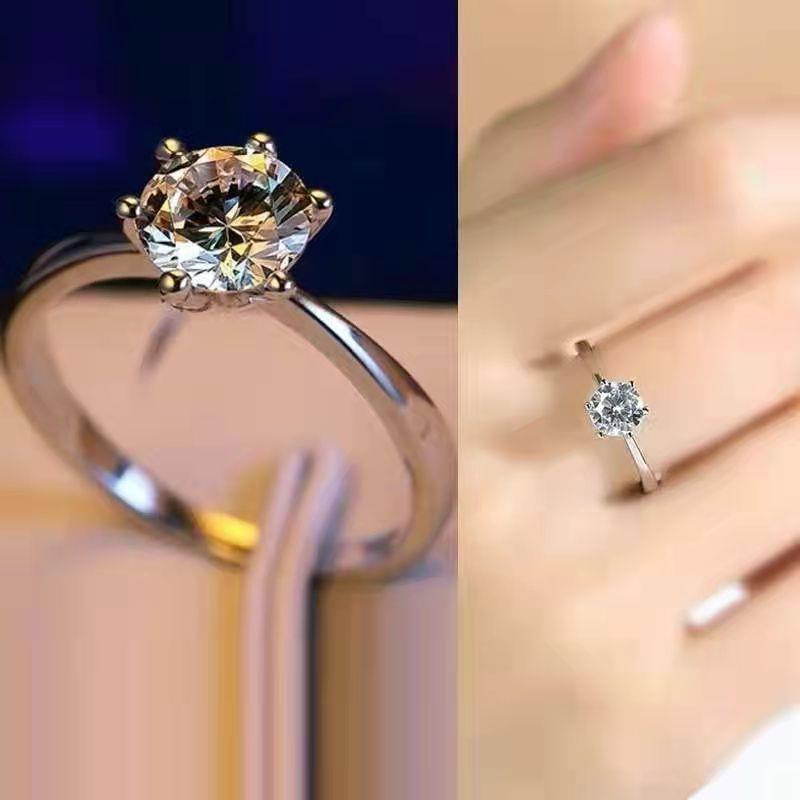 高端六爪仿真钻戒女简约时尚情侣款莫桑石求婚结婚开口戒指批发