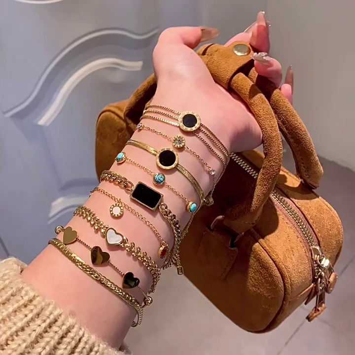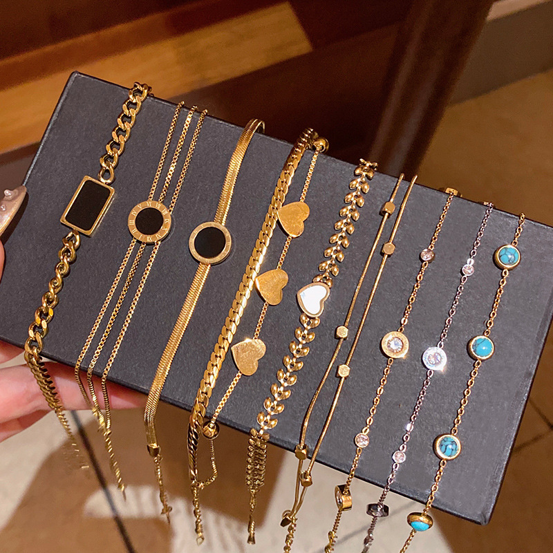 饰品手链小众高级感爱心手环手饰跨境爆款玫瑰金不掉色钛钢手链女