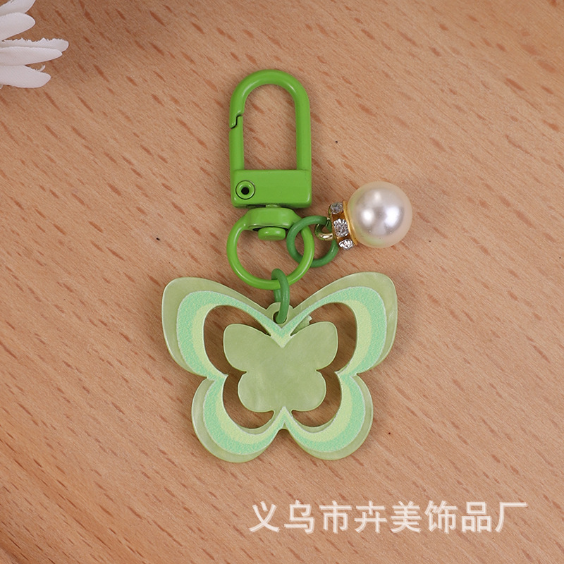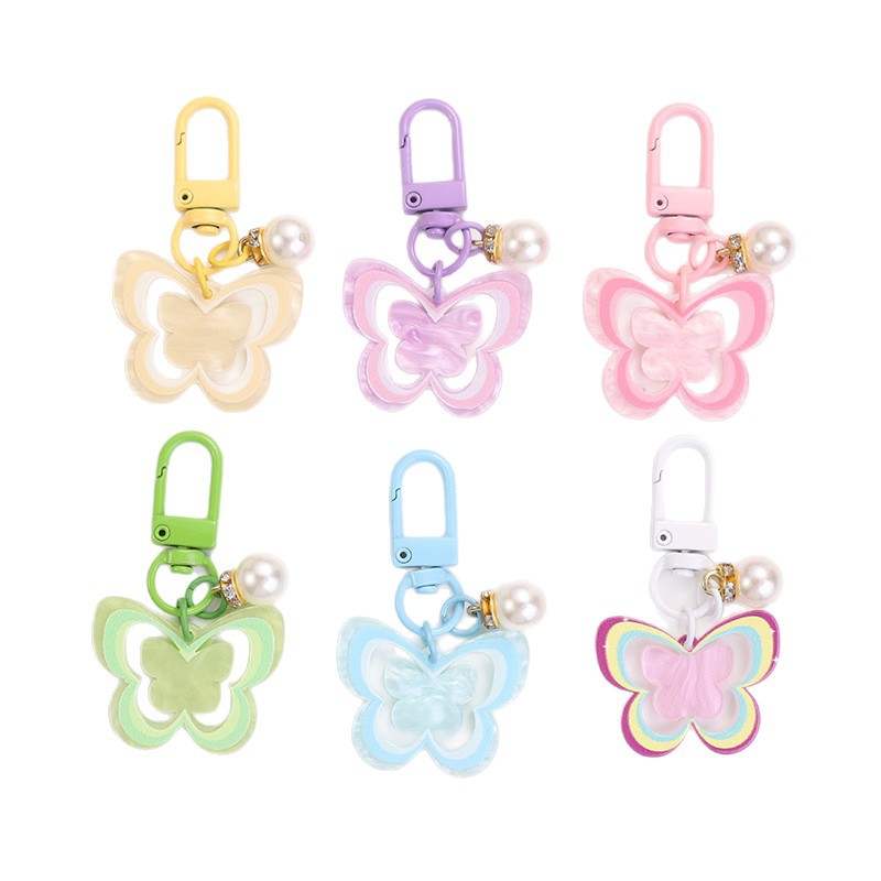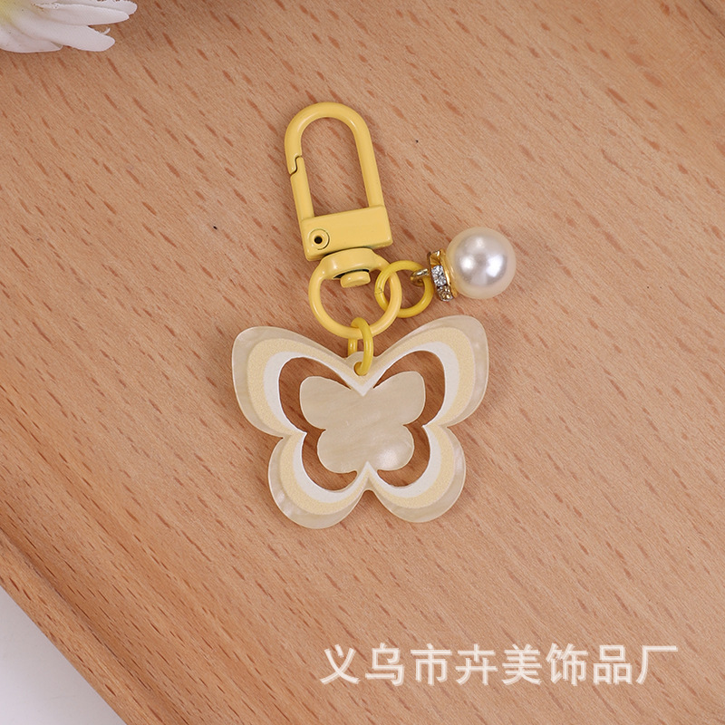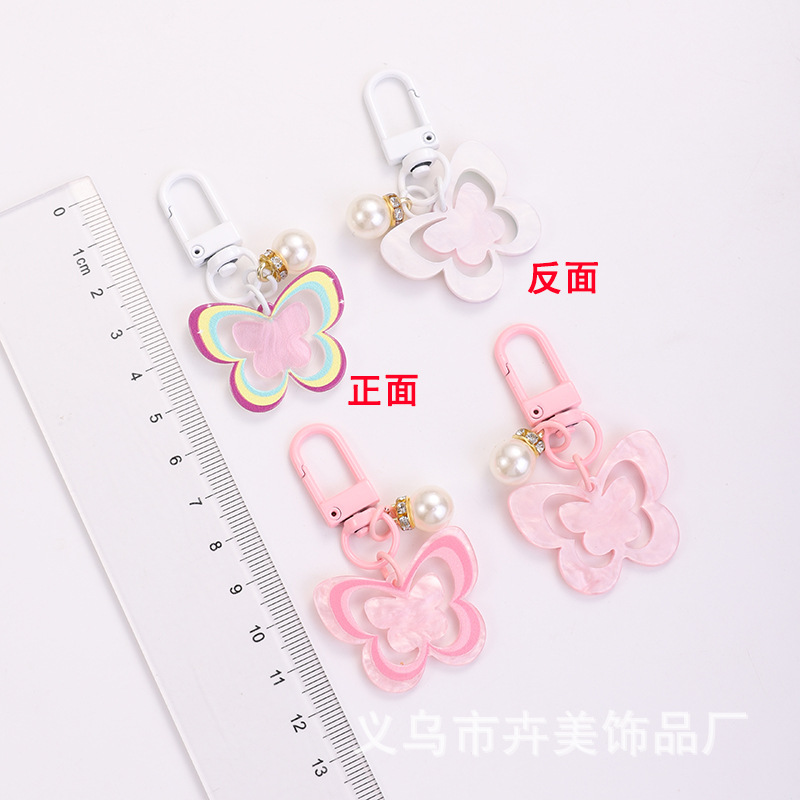 亚克力彩色镂空蝴蝶珍珠挂件钥匙扣简约百搭包包手机壳耳机套挂饰