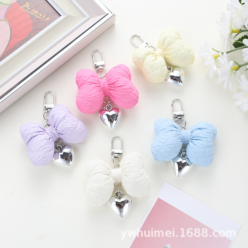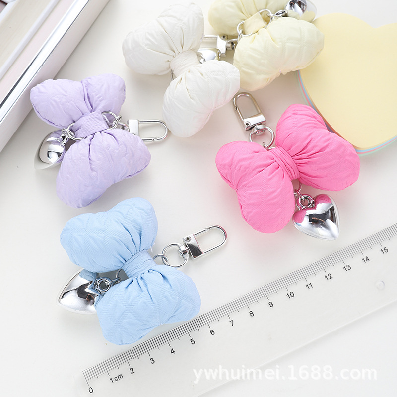 ins创意马卡龙充棉蝴蝶结钥匙扣 时尚可爱多巴胺手机挂件包包挂饰