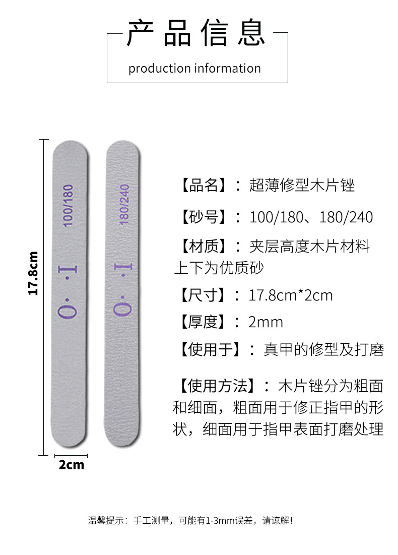 厂家木片锉超薄砂条指甲锉条修甲专用打磨条180/240搓条美甲工具