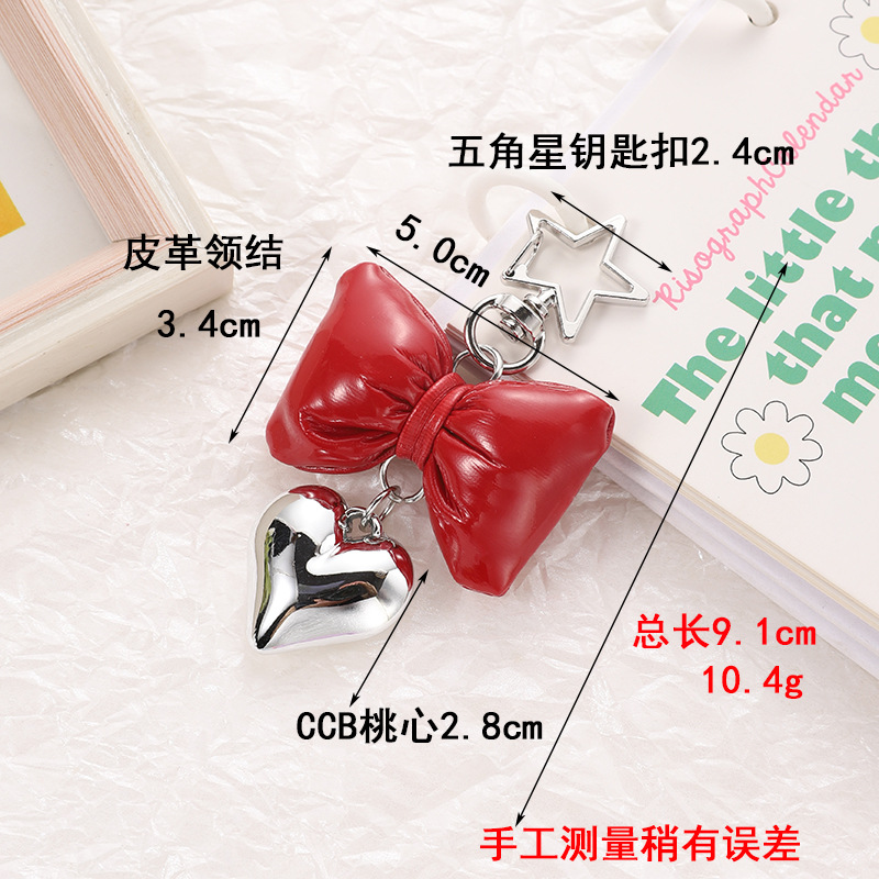 仿皮蝴蝶结领结包包挂件时尚银色爱心五角星百搭车挂钥匙扣小饰品