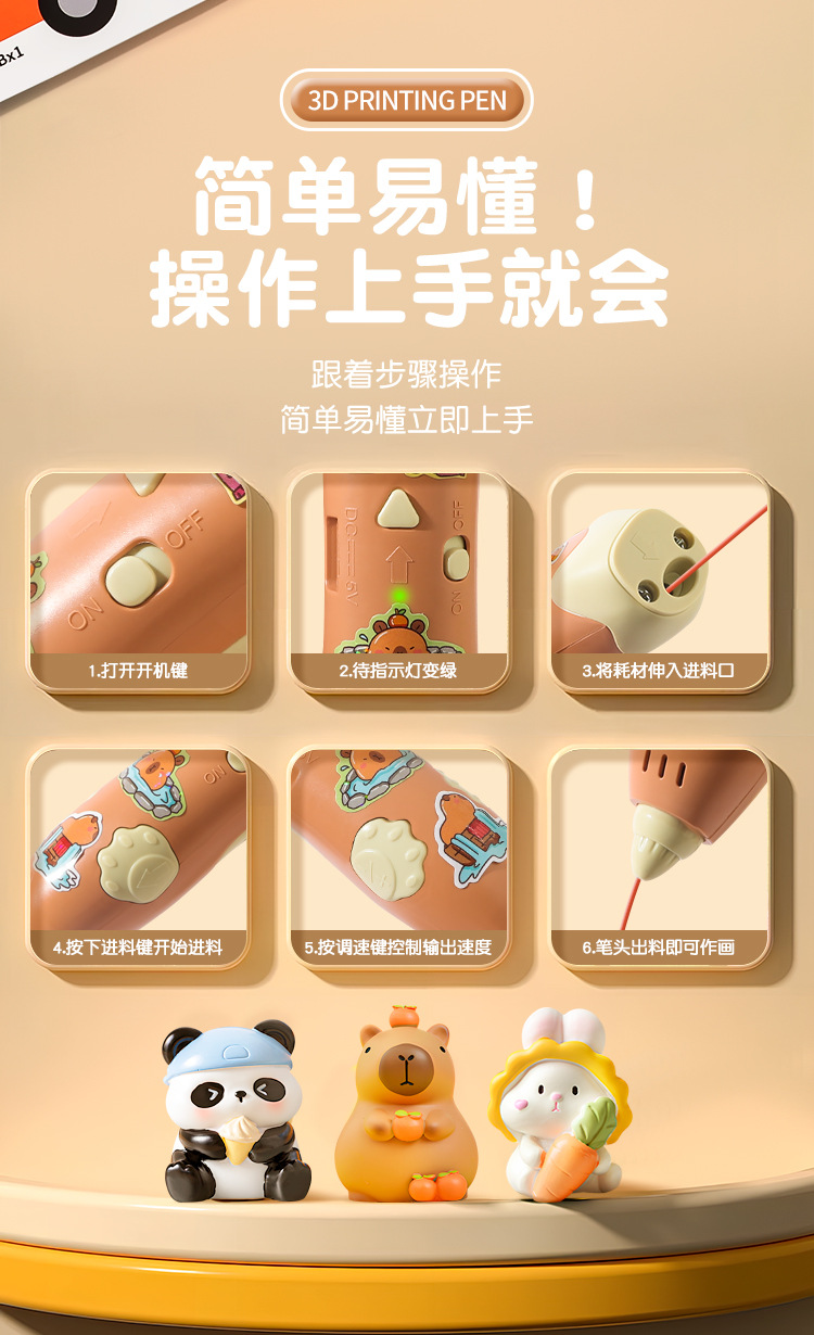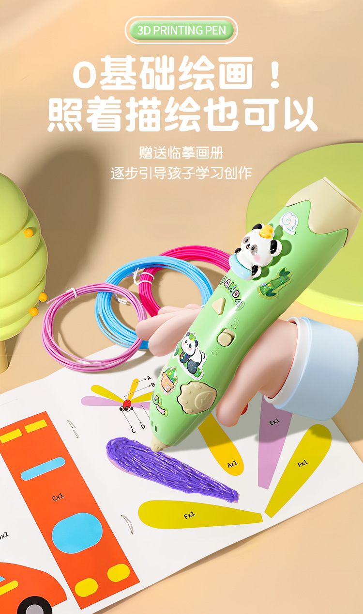 低温熊猫3d打印笔儿童款三d立体打印绘画笔套装小学生女孩子立体