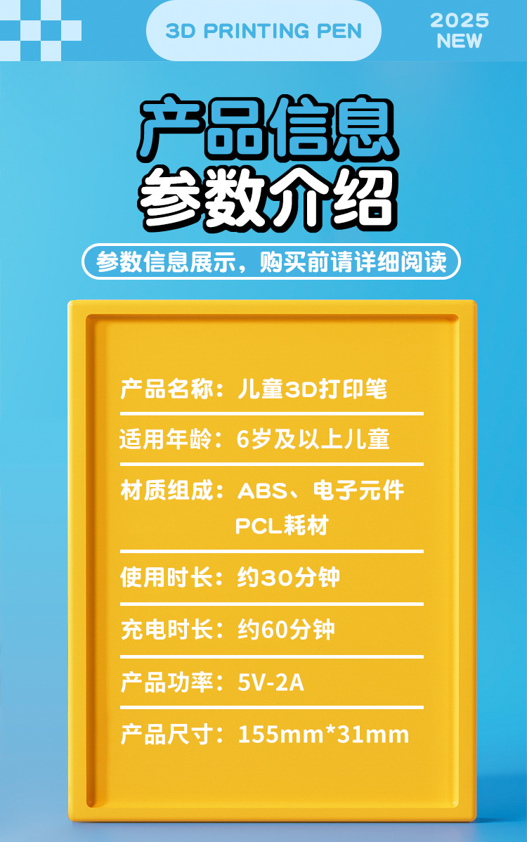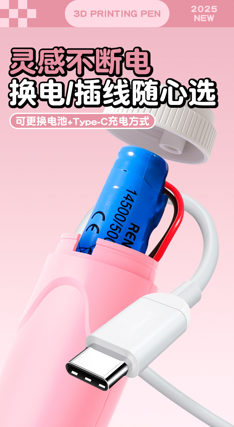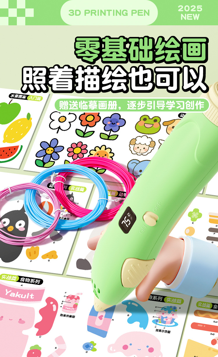 儿童新款3D立体打印笔低温画画笔女孩子玩具多功能绘画立体涂鸦笔