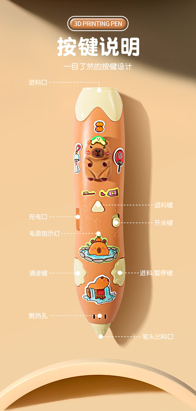 3d打印笔卡皮巴拉儿童女孩子画画低温立体涂鸦绘画多功能神笔马良