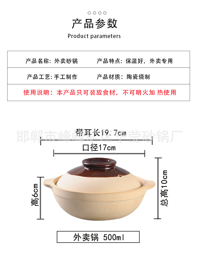 厂家现货一次性外卖小砂锅广州煲仔正同款鲍汁捞饭外卖专用小砂锅