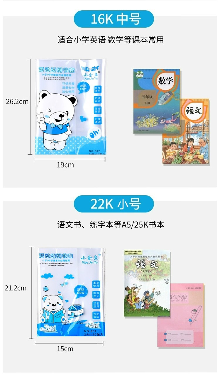 加厚书皮书套透明小学生课本作业本16K/A4防水书套保护膜大号书封