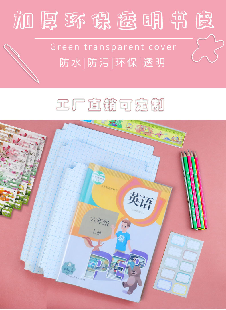 定制封面书皮透明防水磨砂小学生pp自粘pvc书膜来图定制logo广告