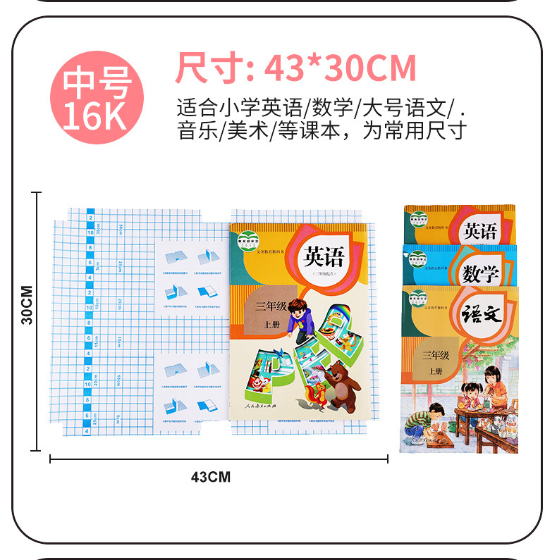 包书皮自粘透明书套保护套小学生二年级上册16k课本书皮钻石纹