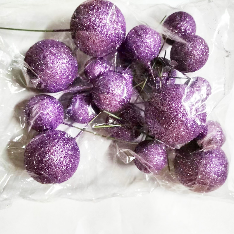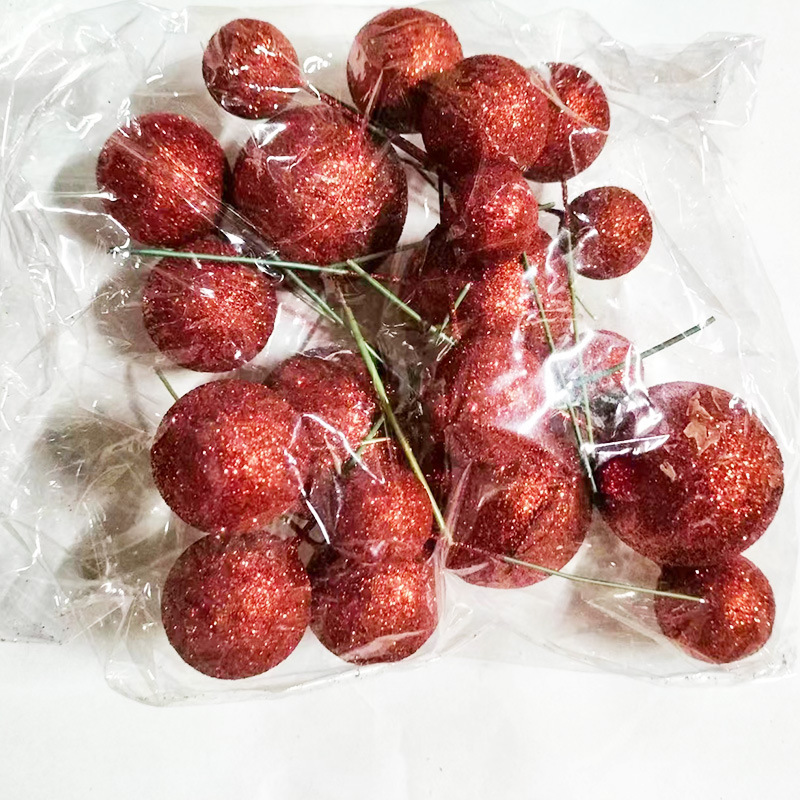 圣诞果子浆果仿真泡沫闪粉球圣诞树装饰配件拍照道具蛋糕装饰插件